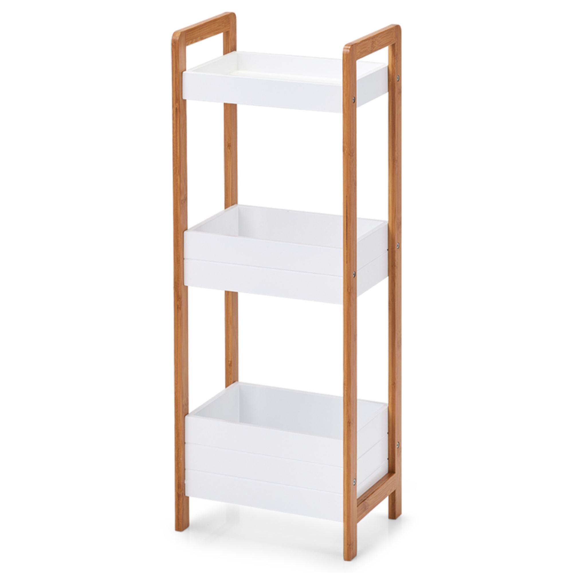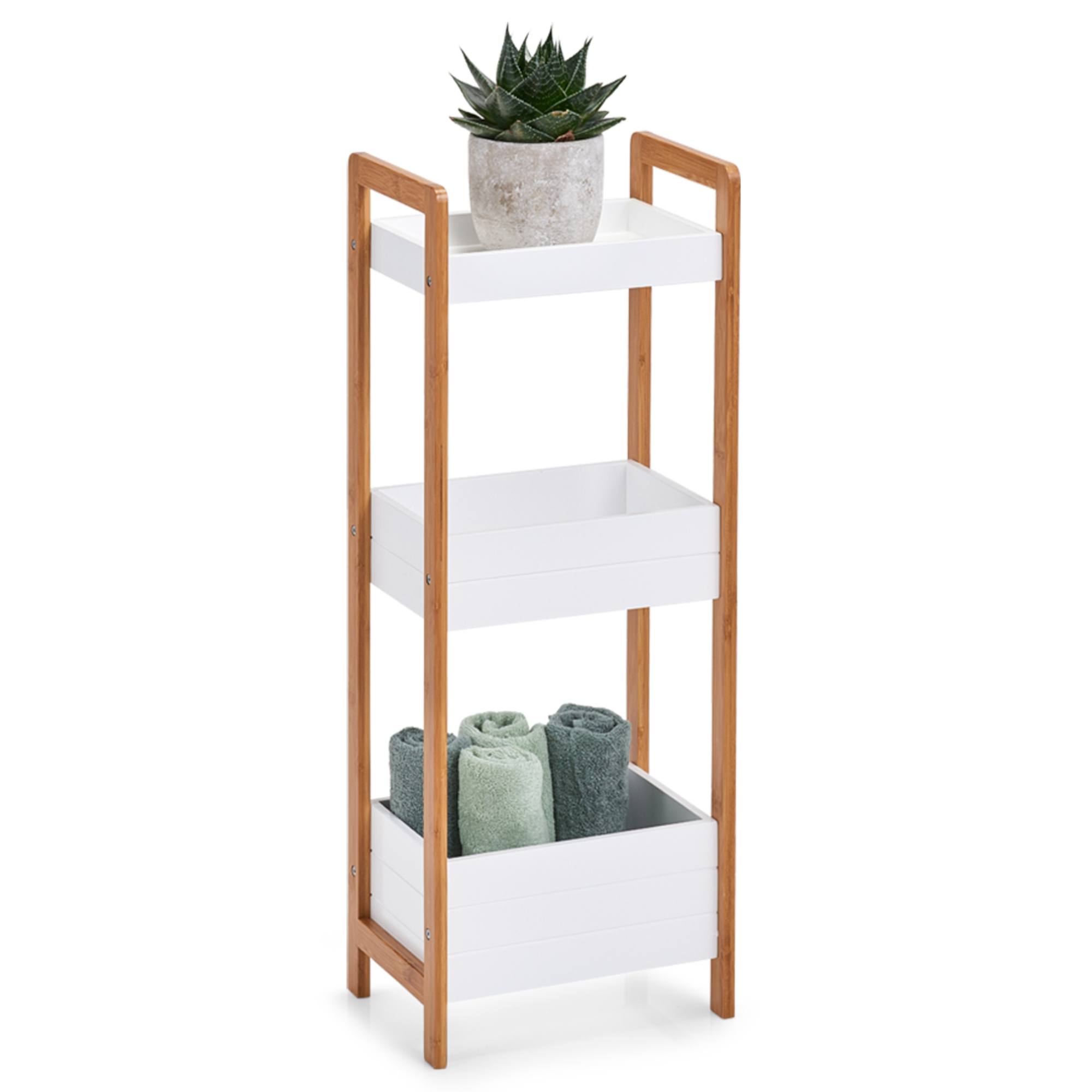 Regál poskytne maximální úložný prostor i v menších interiérech. Konstrukce regálu je vyrobena z odolného bambusu, police jsou z lakovaného MDF materiálu bílé barvy. Díky svým rozměrům najde místo téměř v každé kuchyni, koupelně nebo kanceláři. Ať už jde o ručníky, kořenky nebo kancelářské dokumenty, do tří přihrádek lze uložit nejrůznější předměty.