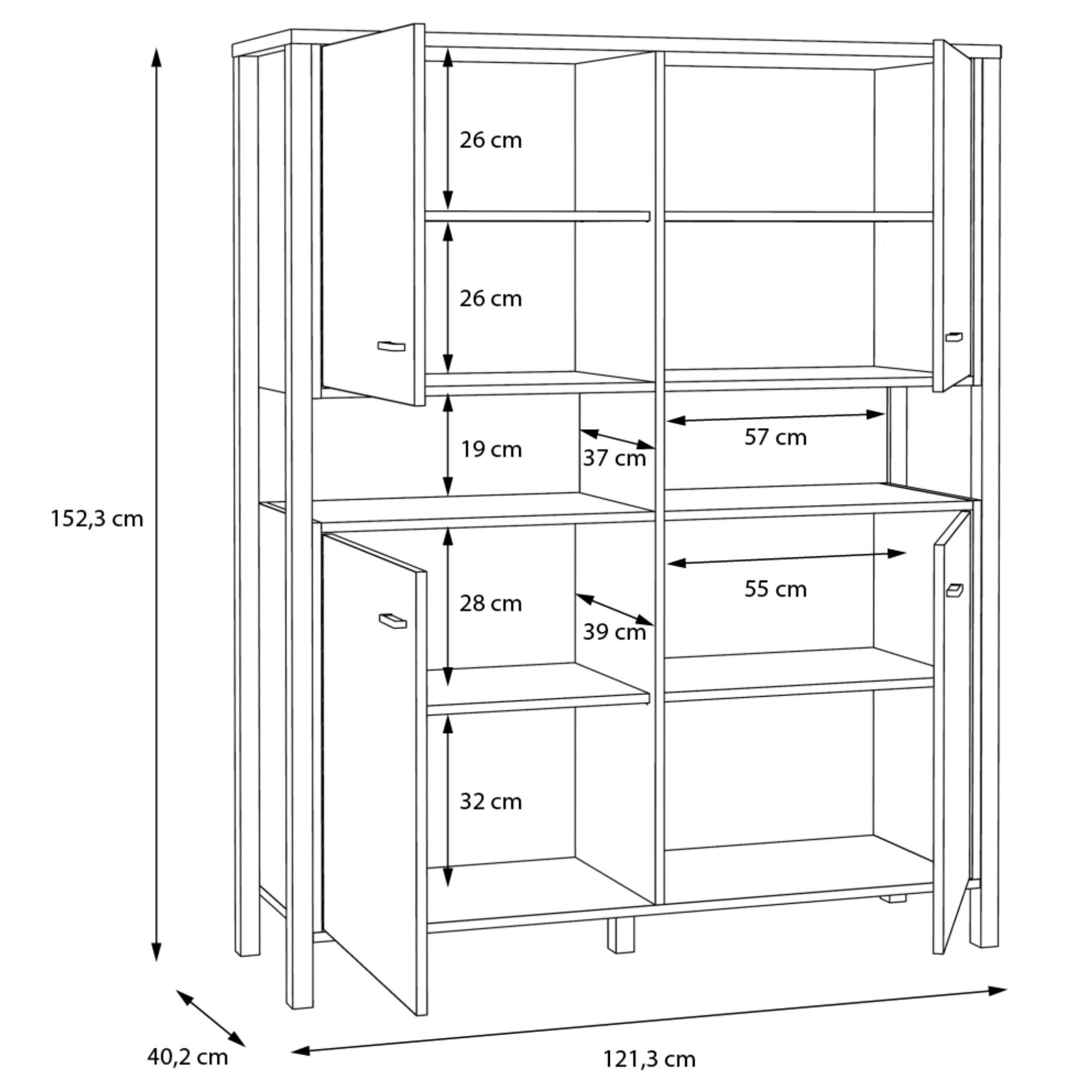 Naleznete zde místo pro vše potřebné, ať už se jedná o vystavení dekorací či odložení předmětů, které nechcete mít na očích. Regál disponuje uzavíratelným úložným prostorem, za každými dvířky se nachází jedna vložená police. Decentní kovové úchytky vám usnadní celkovou manipulaci. ABS hrany navíc zvyšují odolnost celého korpusu, který se vám bude zároveň jednoduše udržovat.