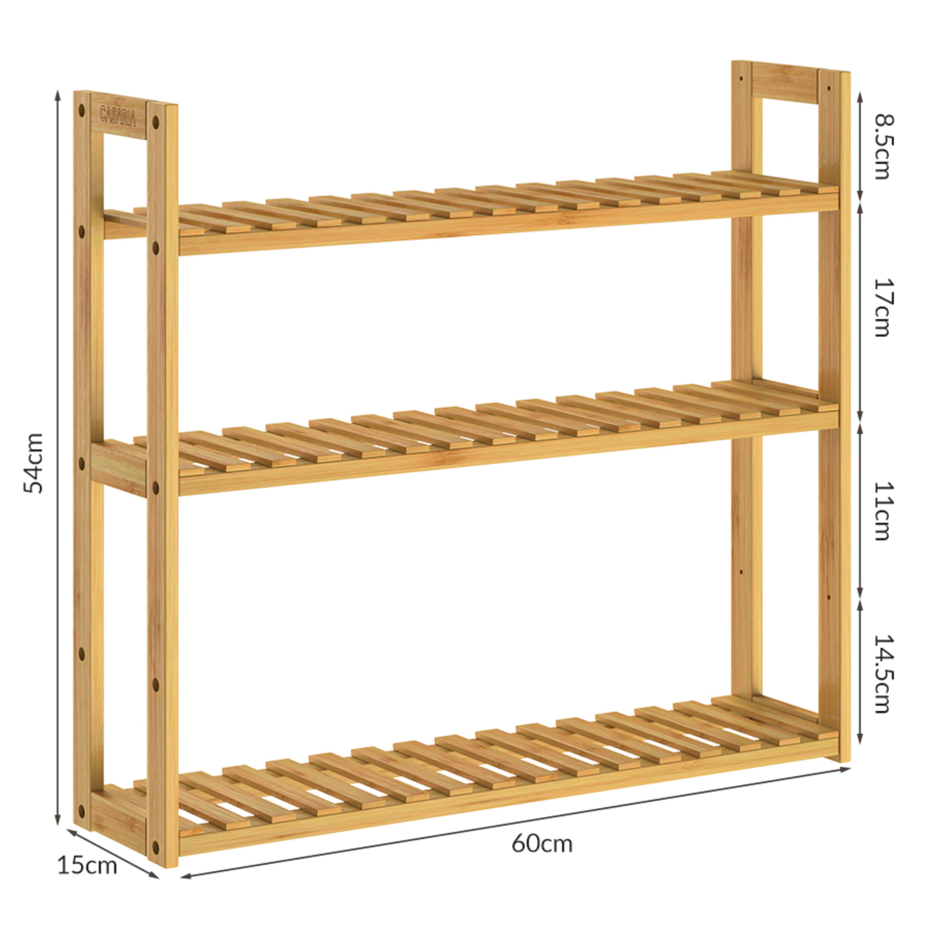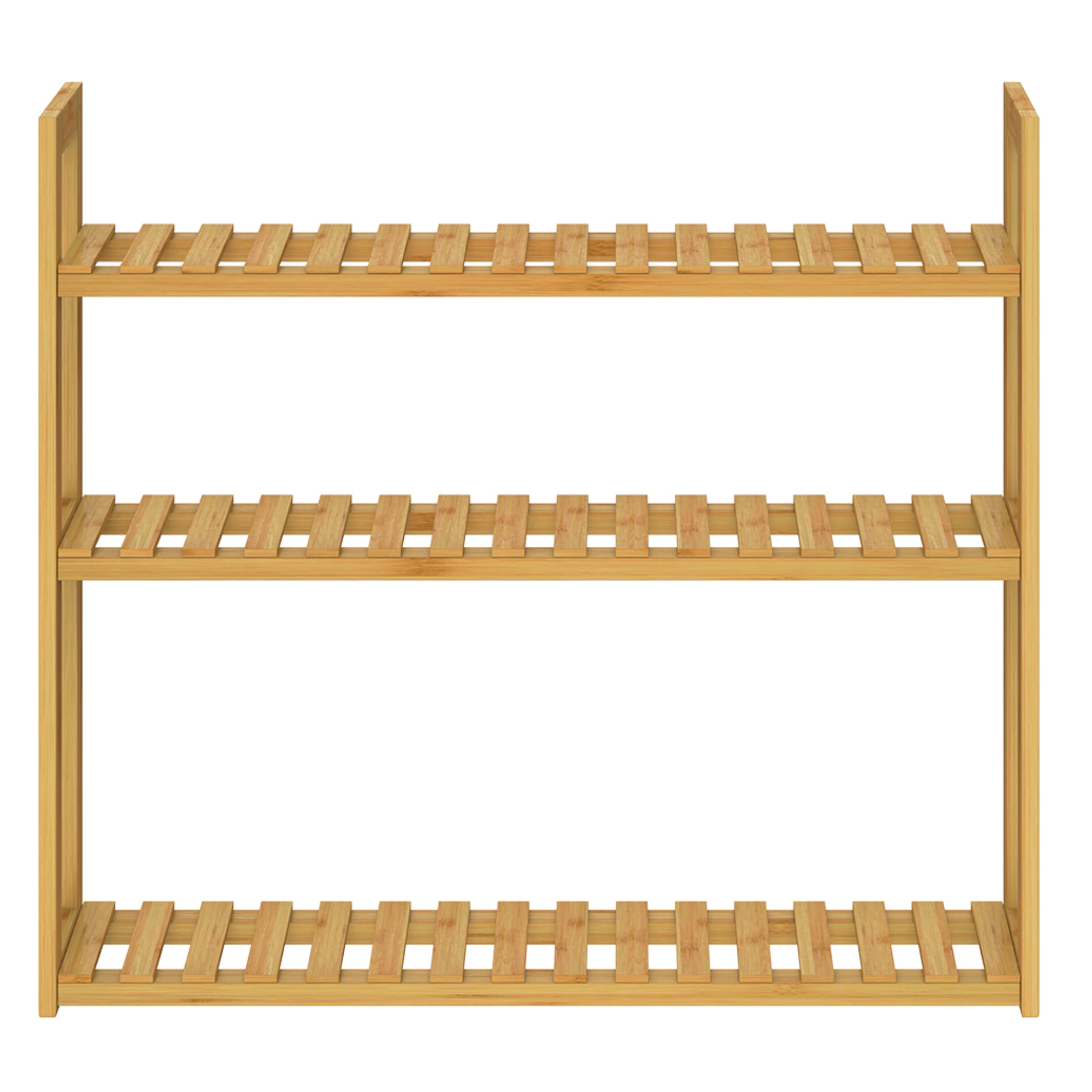 Vybaven je 3 výškově nastavitelnými policemi, které umožňují přizpůsobení vnitřního prostoru podle aktuálních potřeb, takže můžete pohodlně uložit menší i větší předměty. Otevřené police zajišťují snadný přístup k uloženým věcem a přehlednou organizaci, ať už jde o ručníky, kuchyňské potřeby, boty nebo úložné boxy. Regál je vyroben z ekologického bambusu, který je známý svou přirozenou odolností vůči vlhkosti. Konstrukce je robustní a stabilní, přičemž každá police má nosnost až 10 kg. Díky multifunkčnímu využití se regál hodí do různých místností.