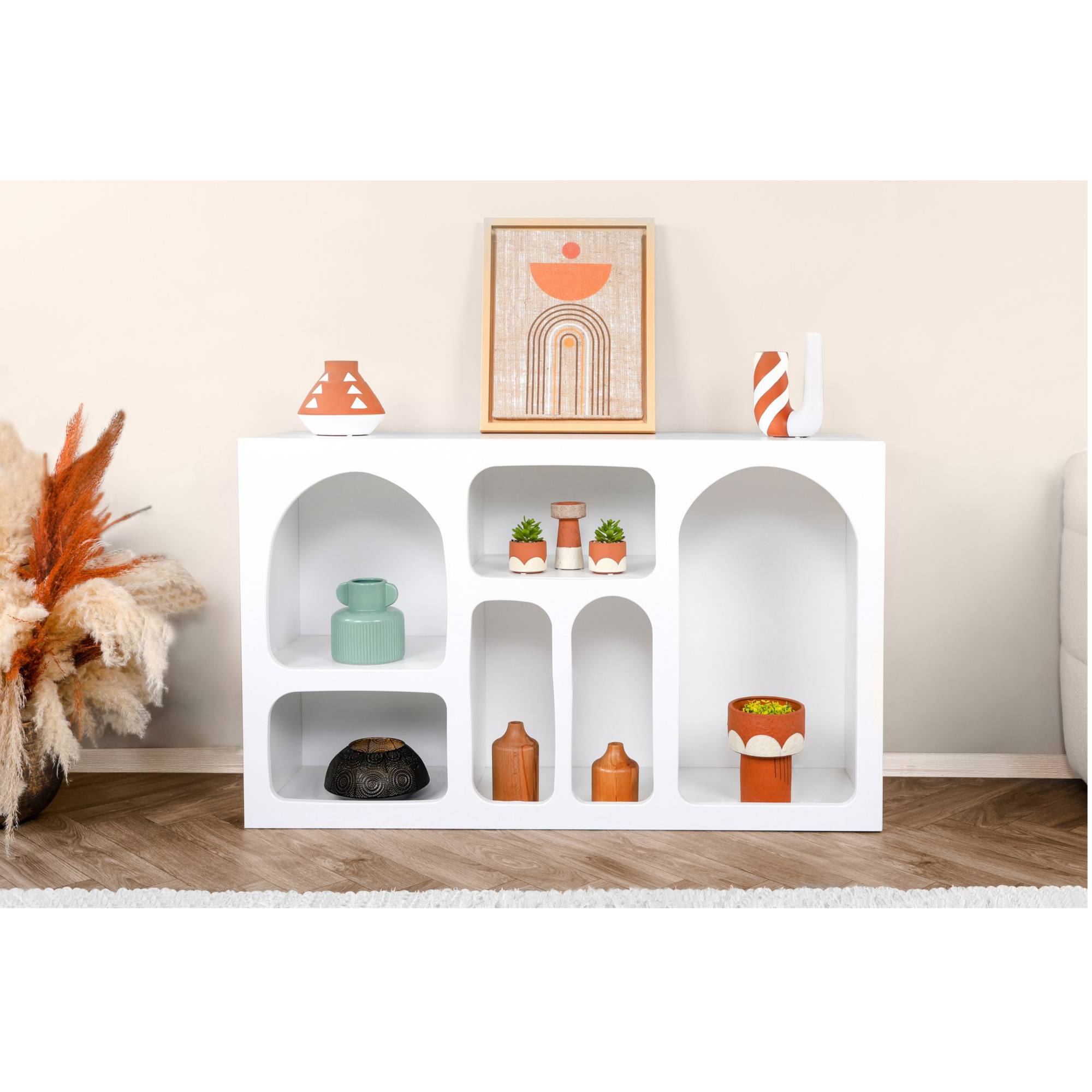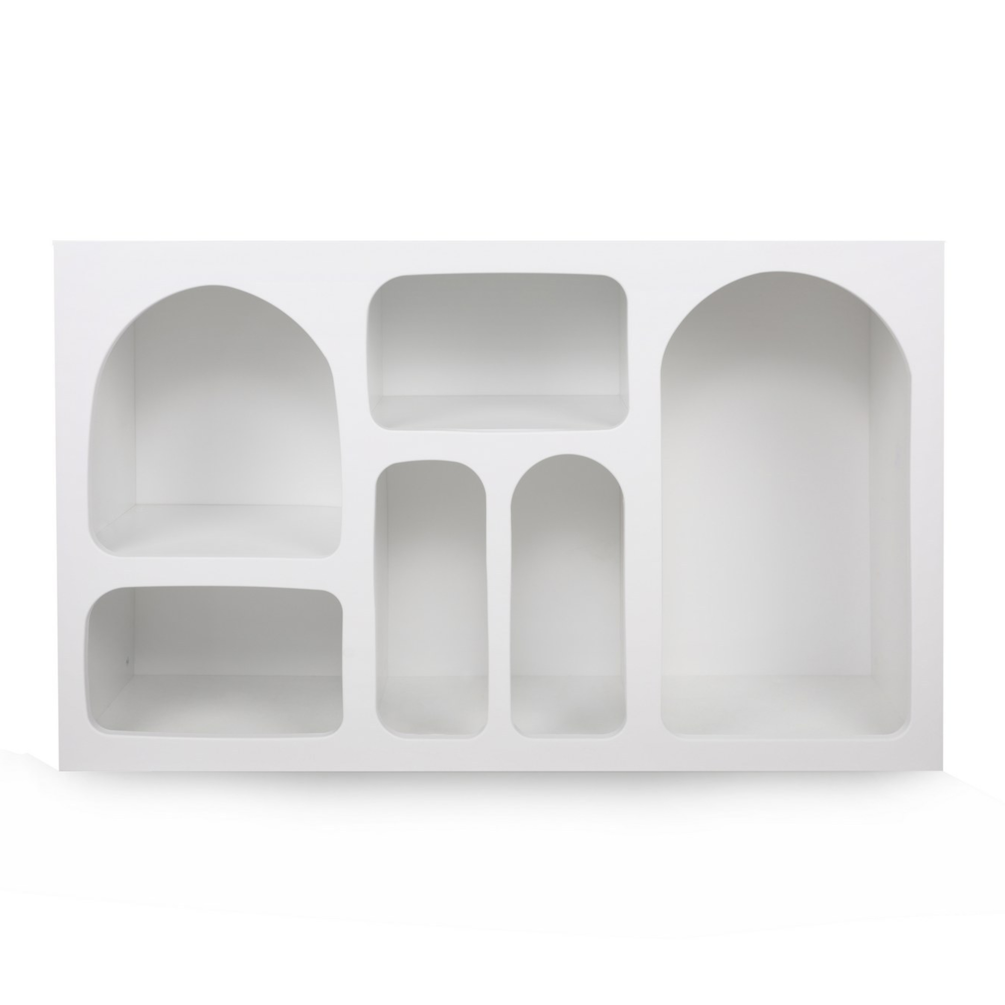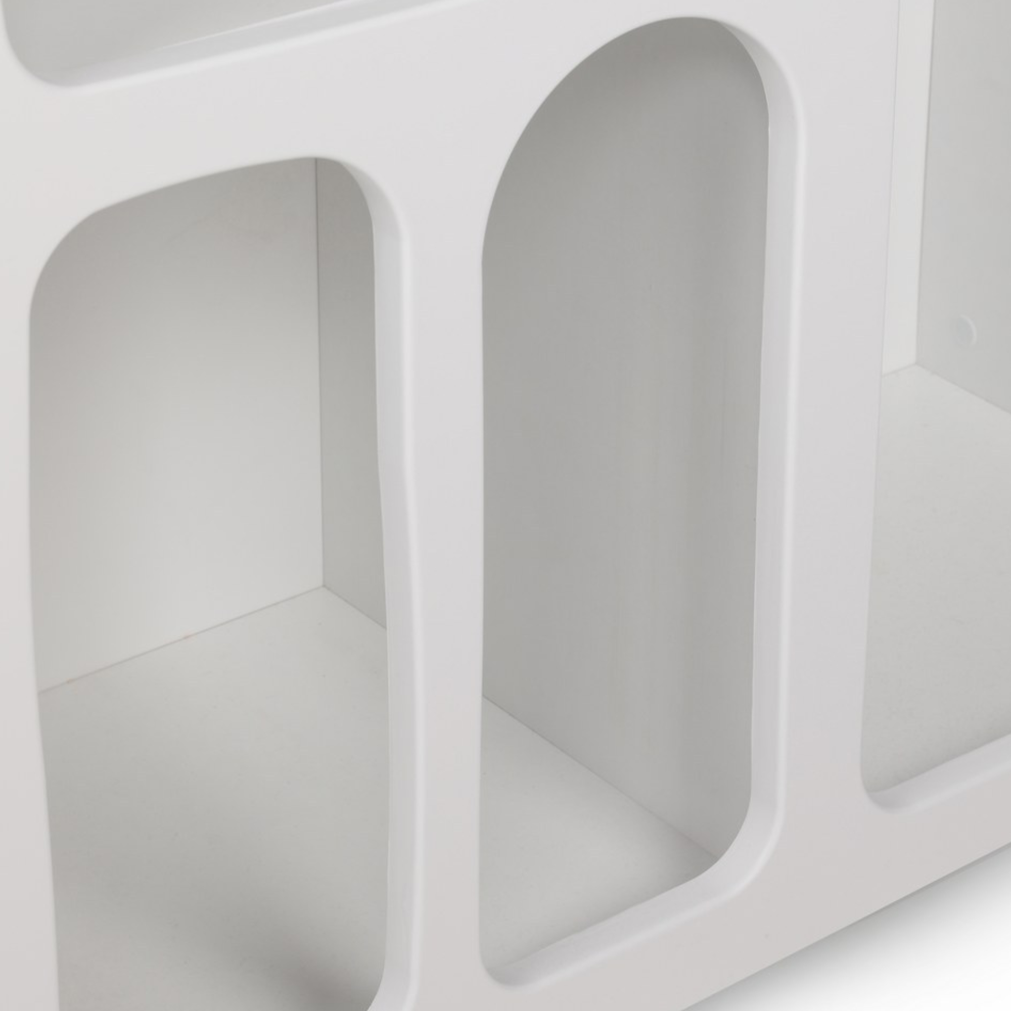 Regál LIVA v sobě spojuje funkčnost s atypickým vzhledem. Pokud se rozhodnete umístit jej do vašeho obývacího pokoje, získáte originální bytový doplněk, který se stane dominantou prostoru. V jeho výklencích skvěle vyniknou nejen dekorace, suvenýry z dovolených či fotografie, ale můžete do nich umístit i knihy nebo květiny.