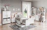 Regál LUNA představuje jednoduchý moderní design s jemnými liniemi a příjemnými neutrálními barvami. Tento styl a vzhled nábytku se hodí do dětského pokojíčku.