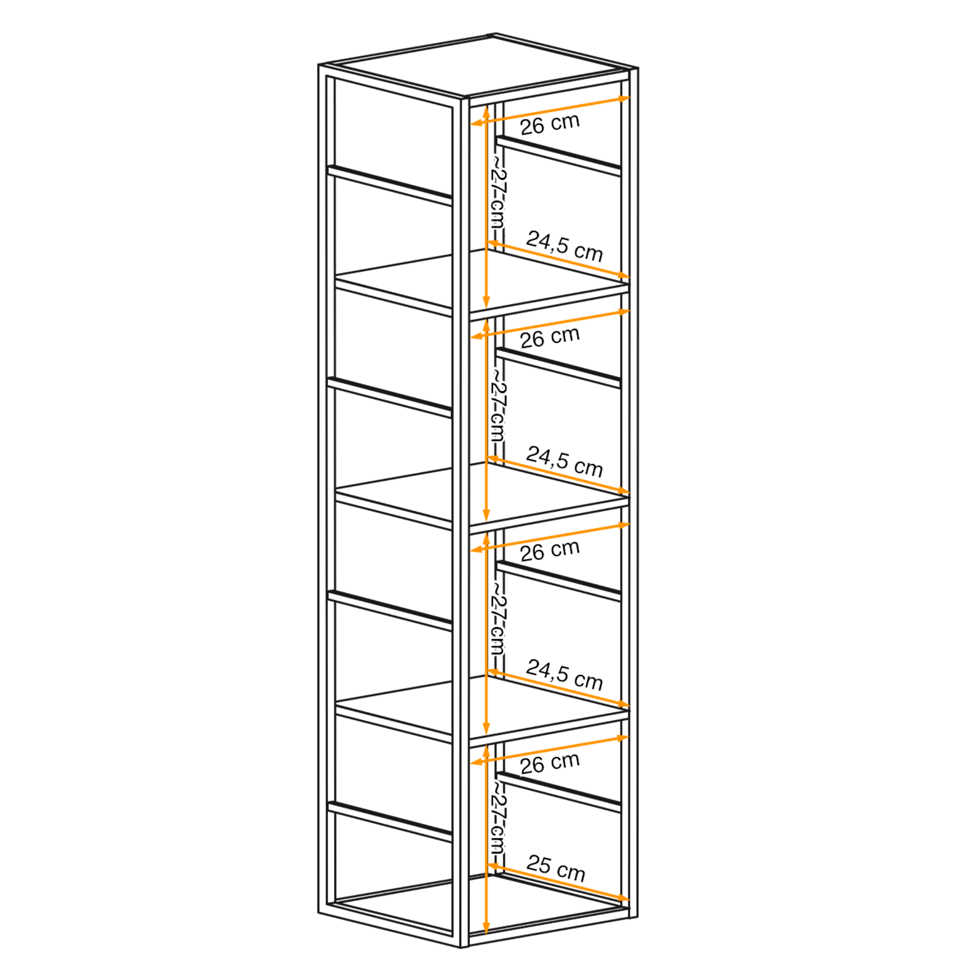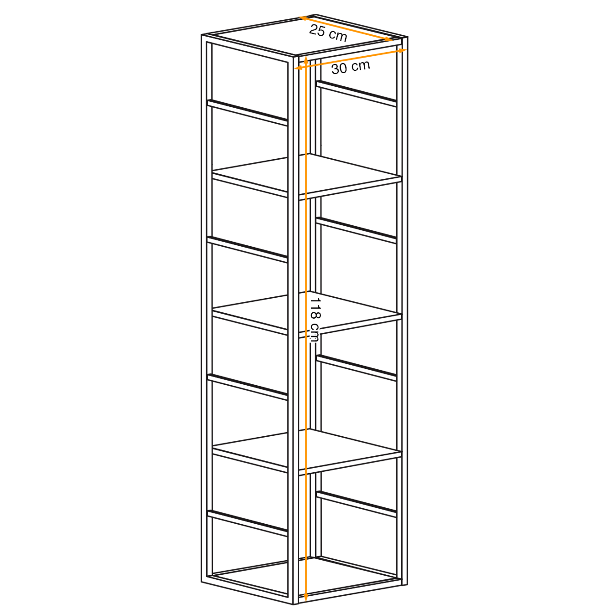 Konstrukce regálu je vyrobena z kovu v černé barvě. Disponuje dostatečným úložným prostorem v podobě pěti úrovní. Tři police včetně dna i vrchní desky jsou z laminovaného dřevěného materiálu. Regál MATCH RM2 dokáže obstát sám za sebe, perfektně ale zastane i funkční prvek obývací stěny z nábytkové série MATCH.