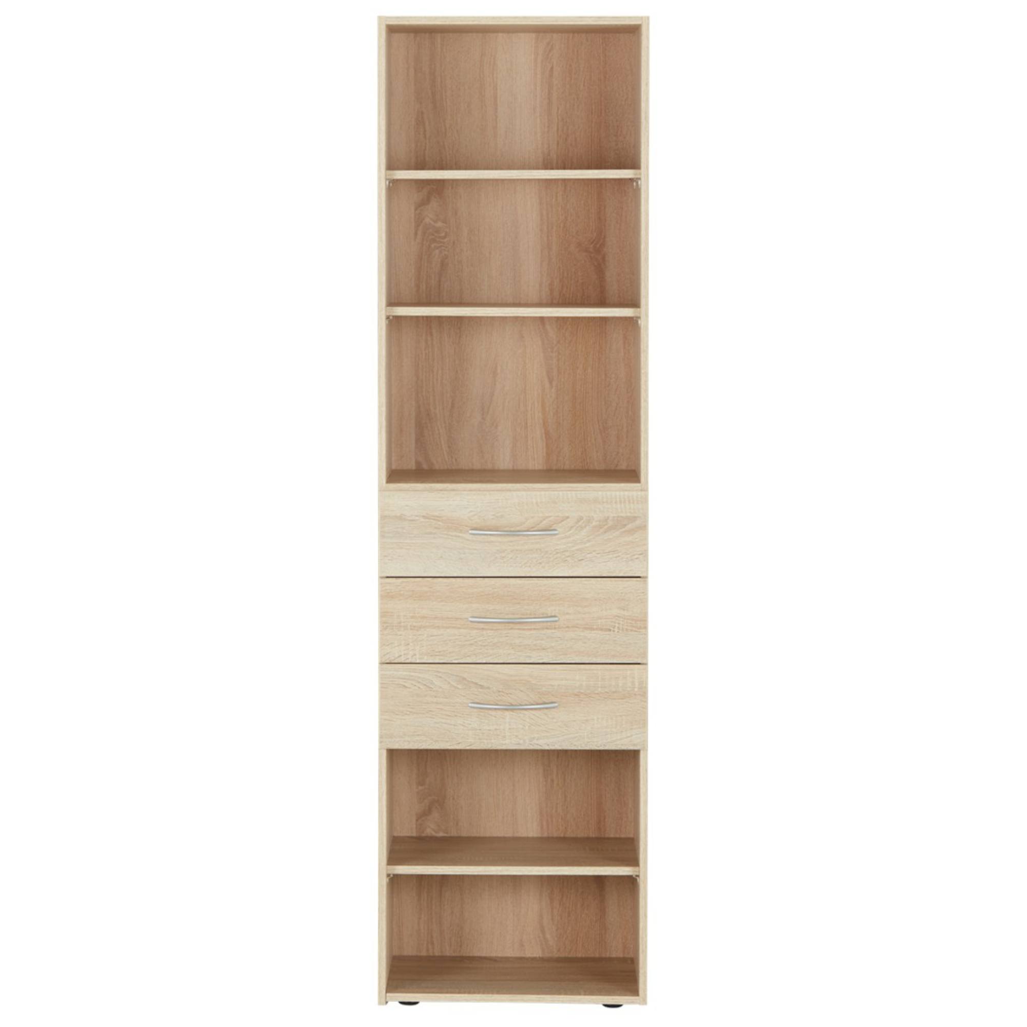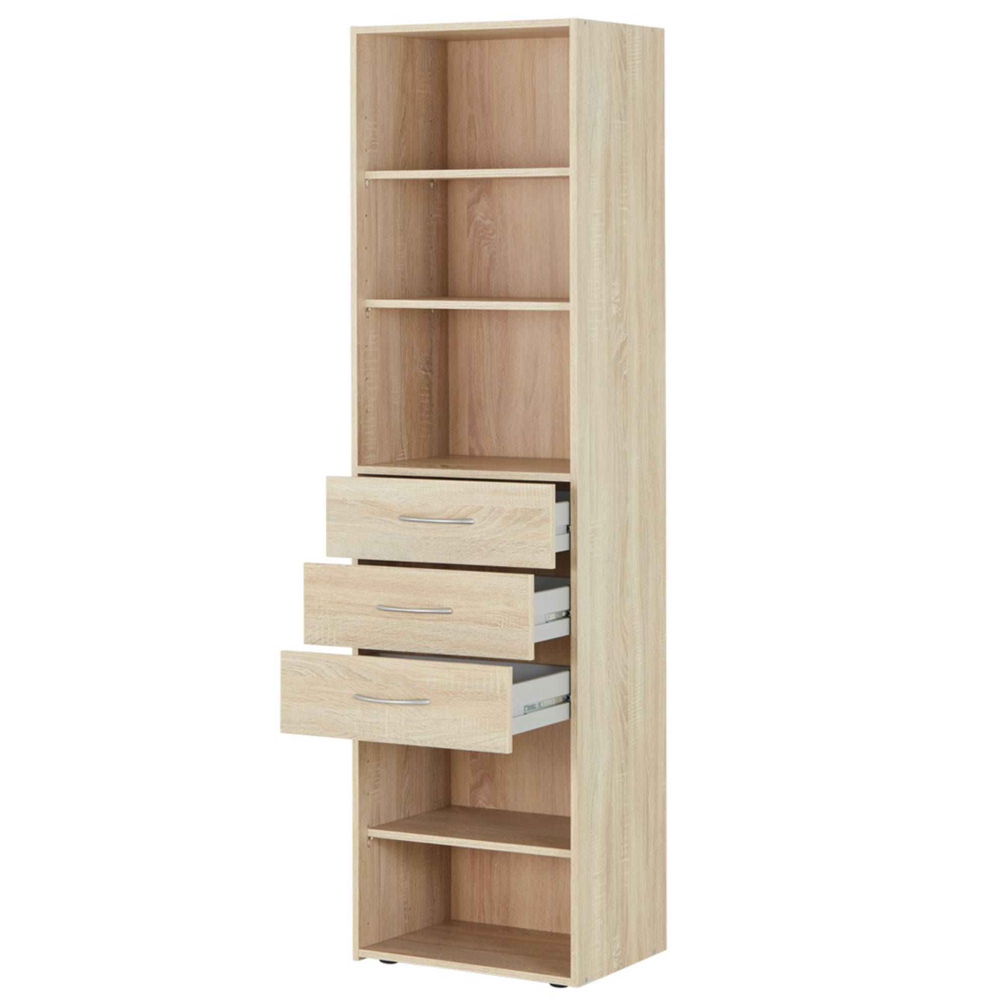 Regál obsahuje 3 vložené police, které poskytují dostatečný odkládací prostor a 3 zásuvky, které nabízí praktický úložný prostor. Regál má korpus vyrobený z laminovaného dřevěného materiálu a zásuvky z fóliovaného dřevěného materiálu. Tyto materiály jsou nenáročné na údržbu. Chcete mít interiér sjednocený do jednoho stylu? Podívejte se na další nábytek ze stejnojmenného nábytkového programu MULTIRAUMKONZEPT.