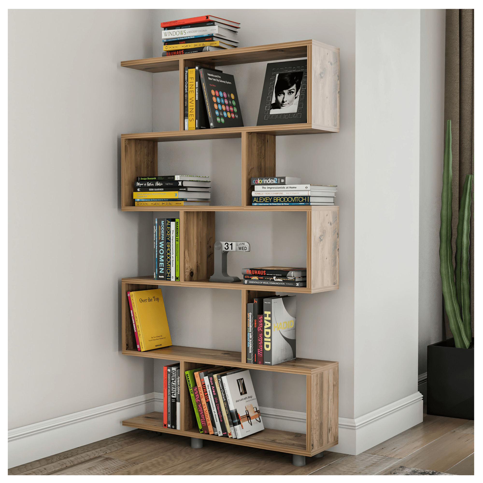 Nadčasový a multifunkční regál ELIF je vysoce praktickým doplňkem, který skvěle zapadne do každé domácnosti, pracovny nebo kanceláře. Provedení v dekoru borovice místnosti hravě dodá přírodní nádech. Kombinace zajímavého, atypického vzhledu a funkčnosti potěší i ty nejnáročnější. 5 propojených, regálových oken nabízí rozsáhlý, otevřený odkládací prostor. Využijete ho především jako prostor pro uložení knih, rostlin, dekorací a dalších drobností. Policový regál můžete také postavit do prostoru, jednotlivé police zaplnit a zajímavě tak přepůlit místnost.