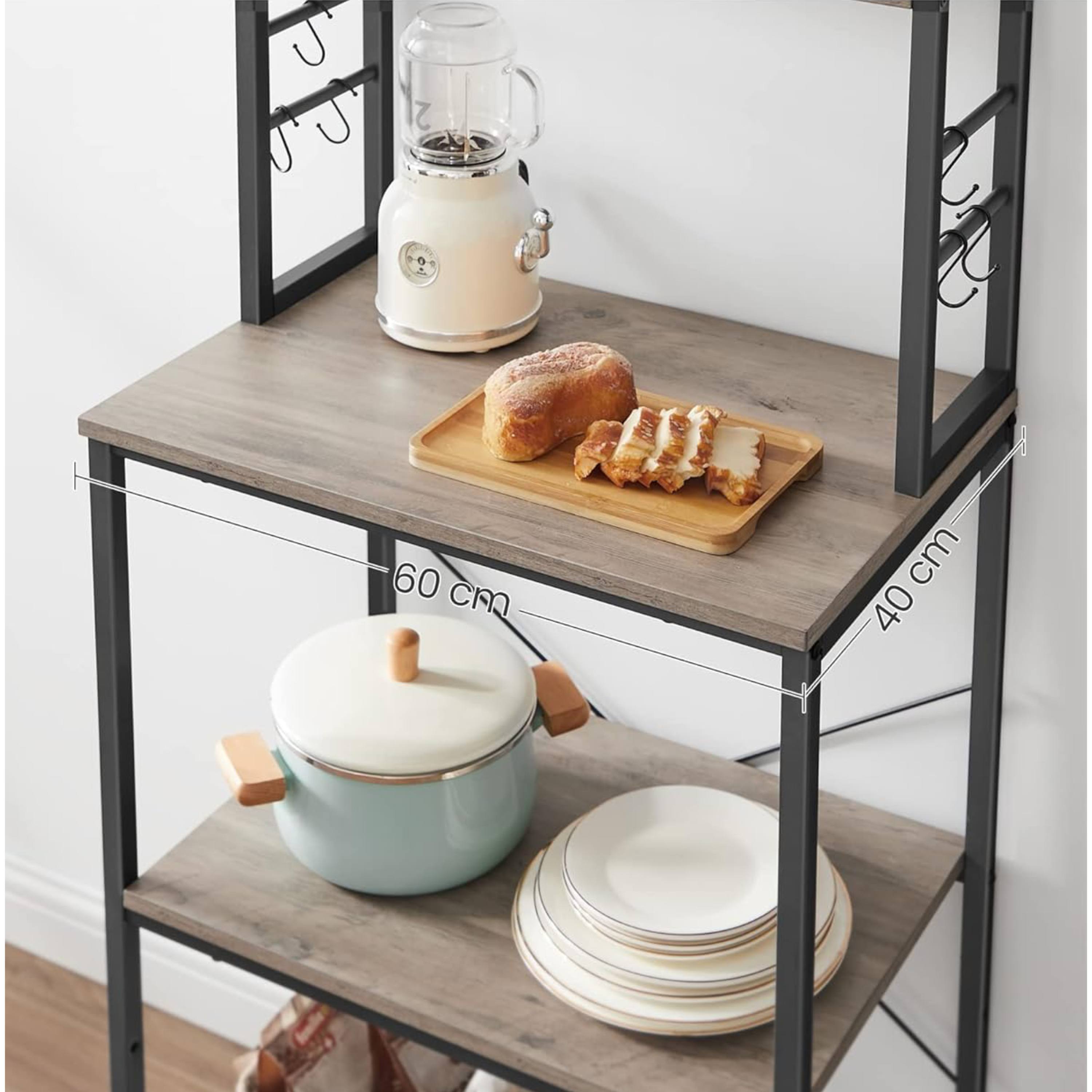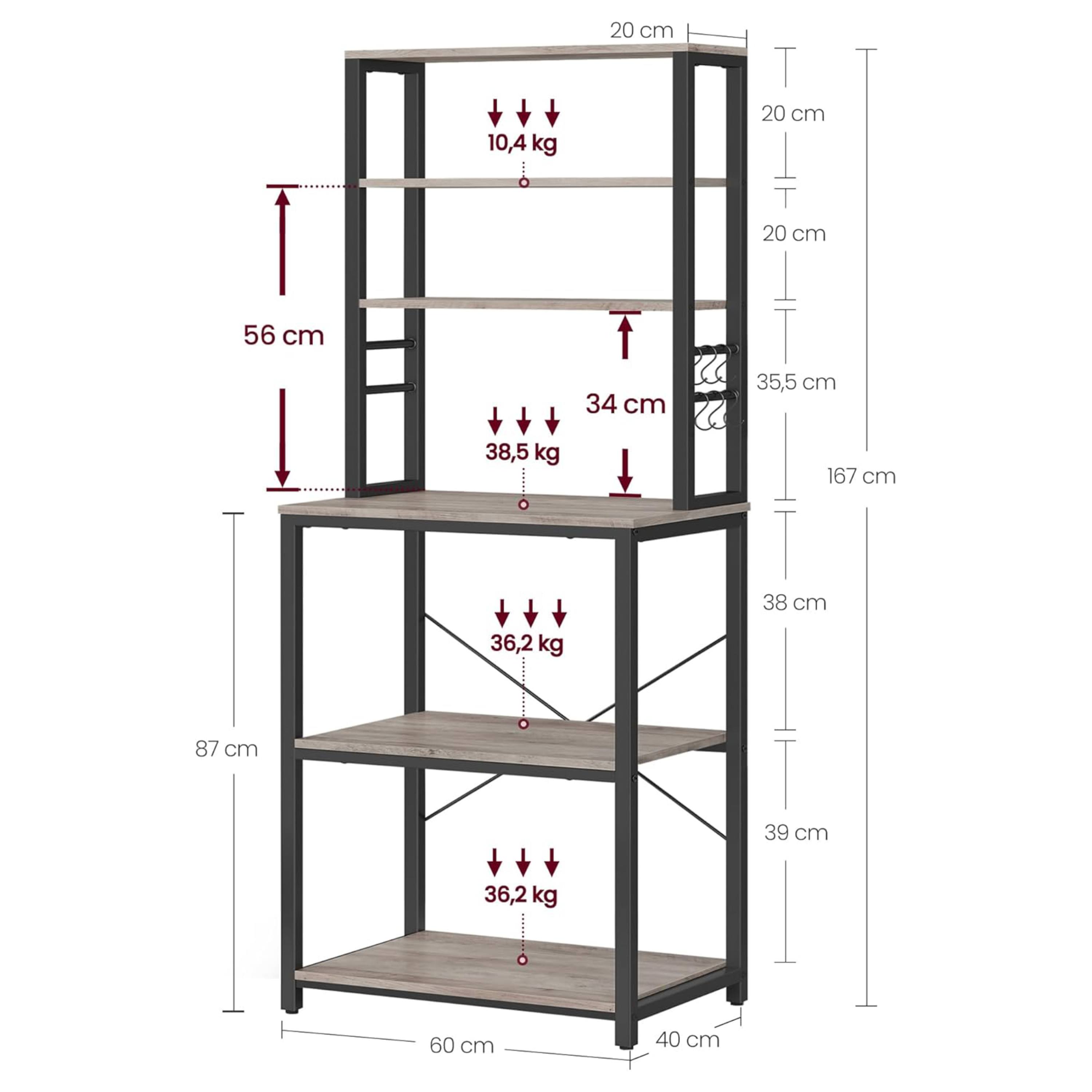 Tvořena je 6 policemi ze snadno čistitelné dřevotřísky, které jsou zasazeny do robustní kovové konstrukce. 3 z nich jsou prostornější a umožňují uložení větších předmětů. Ve vrchní polovině se na bocích nachází prostory pro zavěšení 6 háčků ve tvaru S. Díky nim se už nebudete muset zdlouhavě přehrabovat v zásuvkách a hledat tu správnou pomůcku, ale to nejpoužívanější náčiní si budete moci pohodlně zavěsit. Kovové nožky pomohou vyrovnat nerovnosti v podlaze.