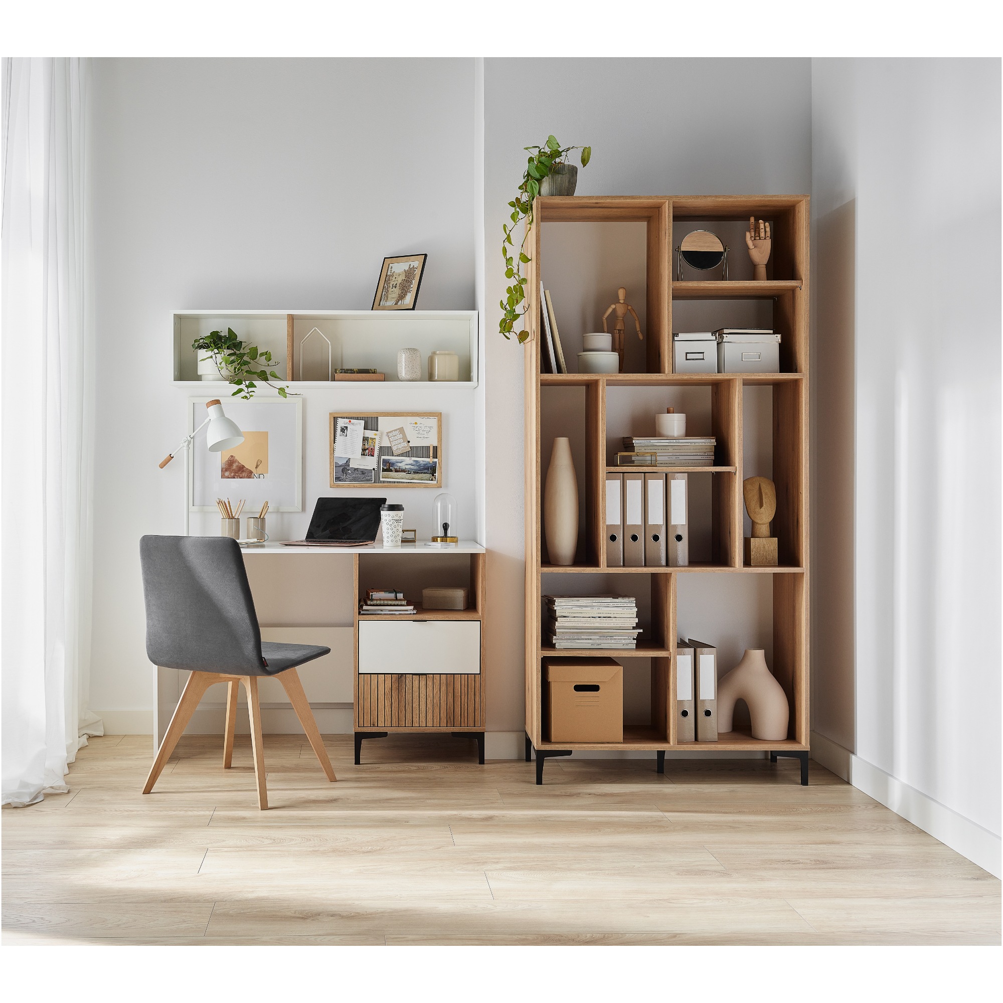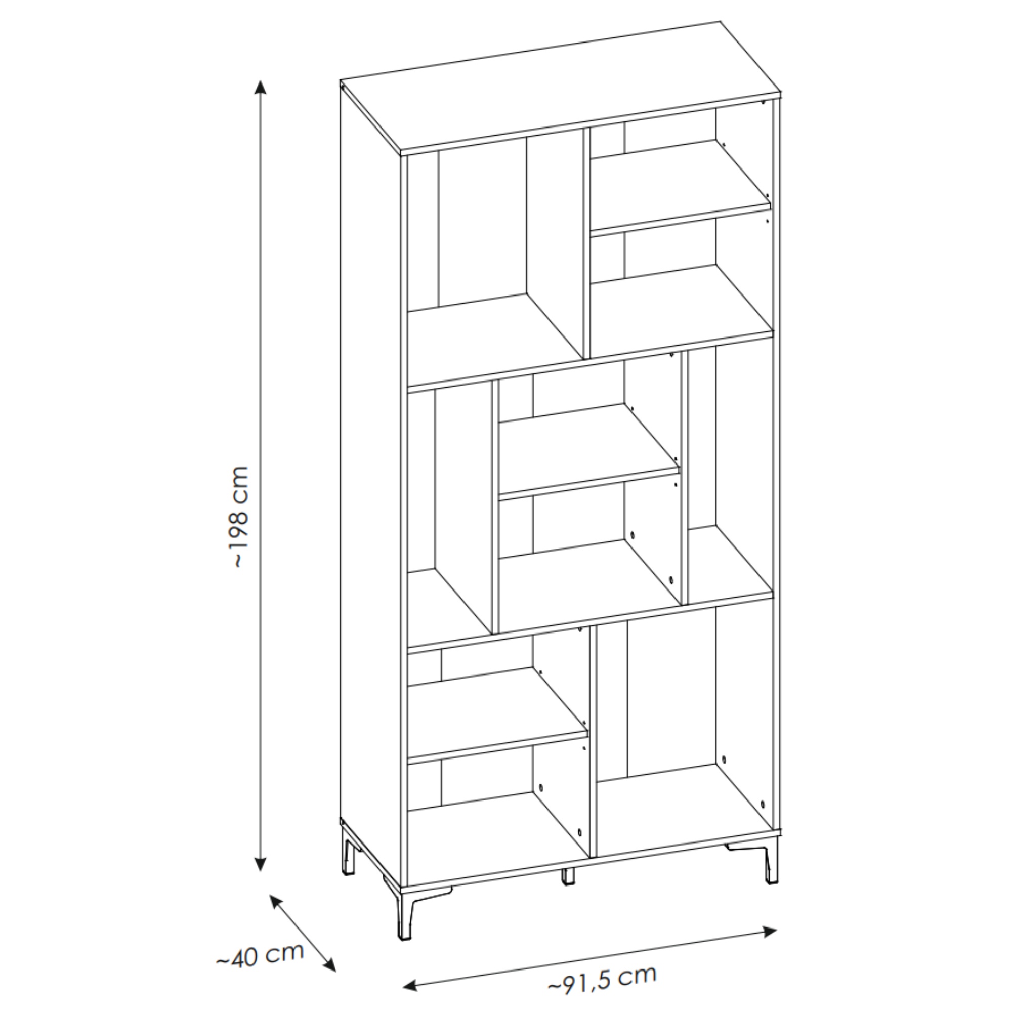 Úložný prostor obsahuje otevřené přihrádky různých velikostí, kde všechno potřebné budete mít vždy po ruce. Stane se tak ideální součástí vašeho obývacího pokoje, ložnice, ale hodí se i do pracovny. Povrch regálu se vyznačuje snadnou údržbou.