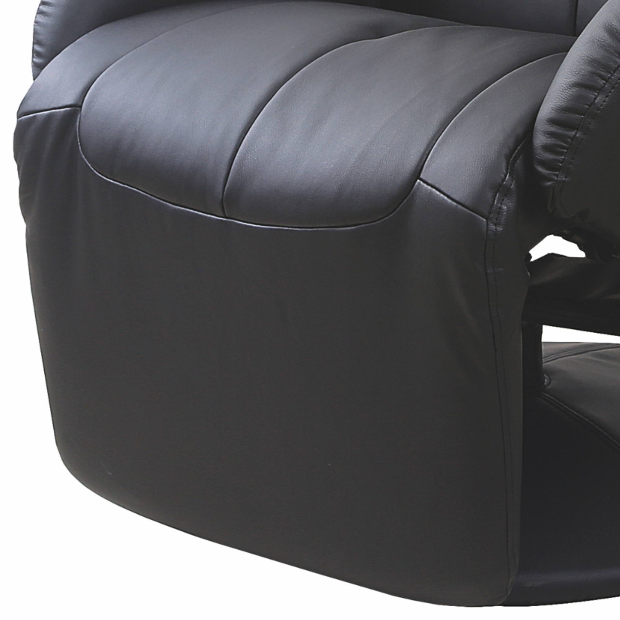Pohodlné polstrování s potahem se syntetickou kůží vám dopřeje maximální pohodlí i po dlouhém lenošení. Zádová opěrka je široká a pohodlná a dobře se přizpůsobí zádům uživatele. Díky praktickému ovládání můžete křeslo polohovat do relaxační pozice. Křeslo je navíc otočné o 360° v obou módech (klasickém i relaxačním).