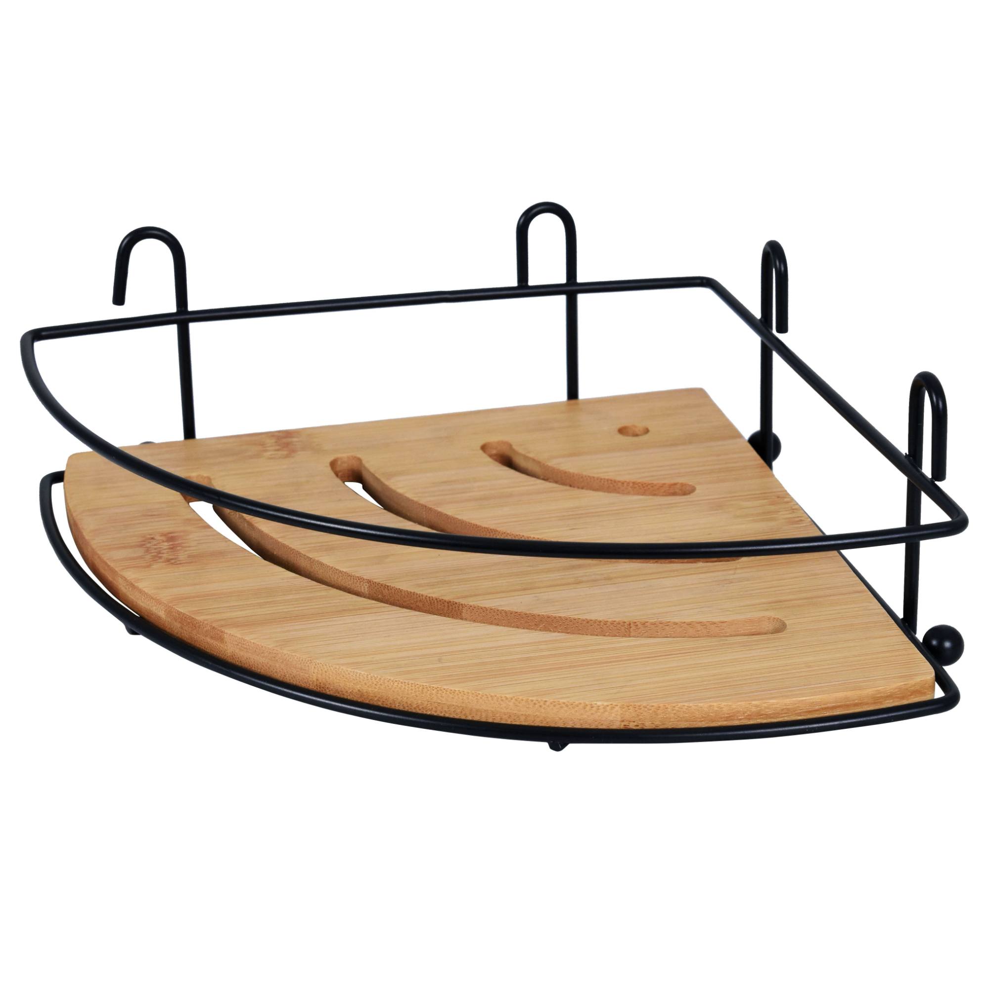 Rohová koupelnová polička UMBRA 2 - ocel/bambus