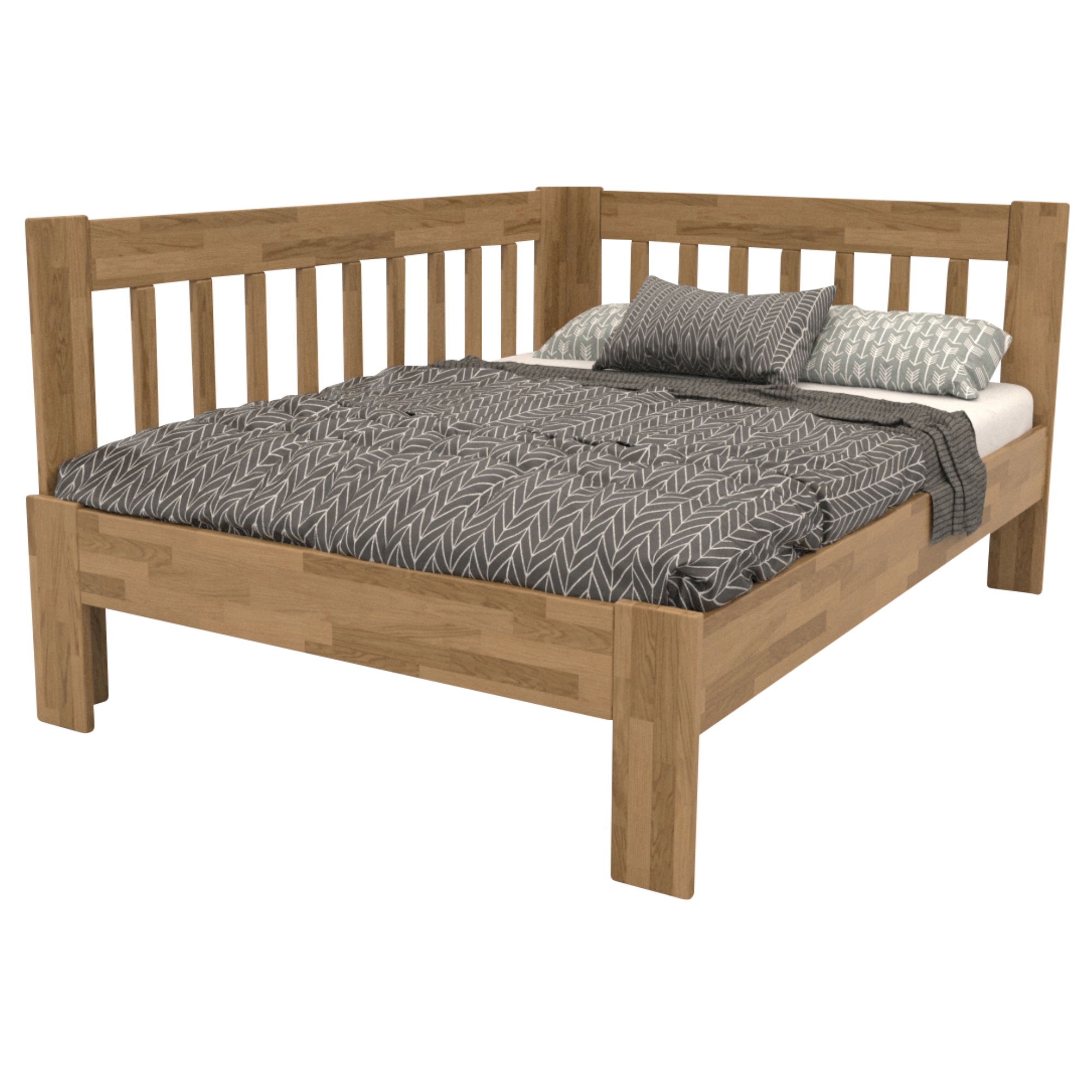 Rohové provedení umožňuje postel umístit kamkoliv, dle dispozic vašeho interiéru. Čela postele mají praktické využití, pokud umístíte postel do dětského pokoje, děti si laťky mohou obložit hračkami, nebo na ně zavěsit menší lampičku. Dospělí naopak ocení vystlání bočnic polštáři pro pohodlné opírání během čtení jejich oblíbené knihy. Matraci a rošt si můžete vybrat z naší široké nabídky, aby byla vaše postel kompletní.