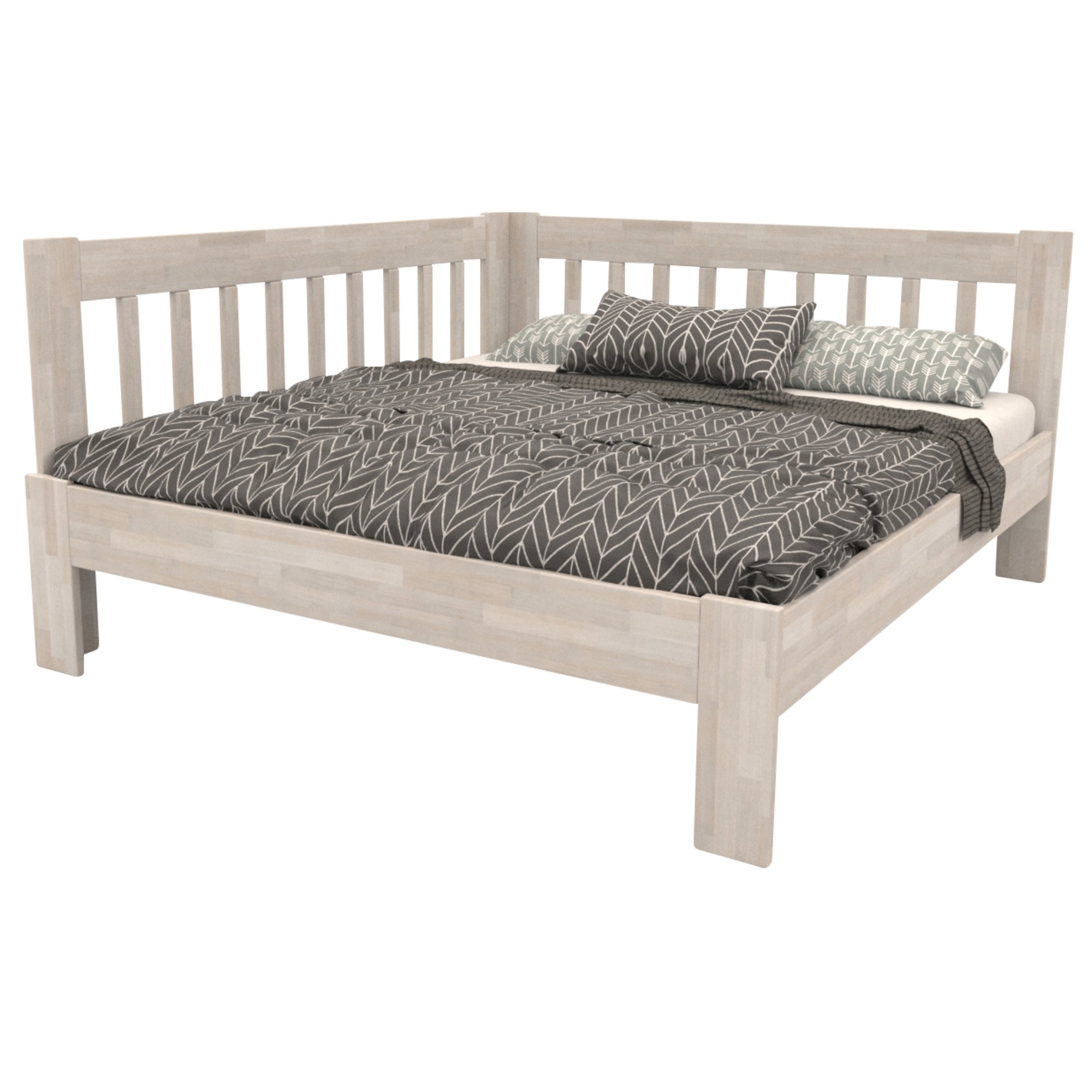Rohové provedení umožňuje postel umístit kamkoliv, dle dispozic vašeho interiéru. Čela postele mají praktické využití, pokud umístíte postel do dětského pokoje, děti si laťky mohou obložit hračkami, nebo na ně zavěsit menší lampičku. Dospělí naopak ocení vystlání bočnic polštáři pro pohodlné opírání během čtení jejich oblíbené knihy. Matraci a rošt si můžete vybrat z naší široké nabídky, aby byla vaše postel kompletní.