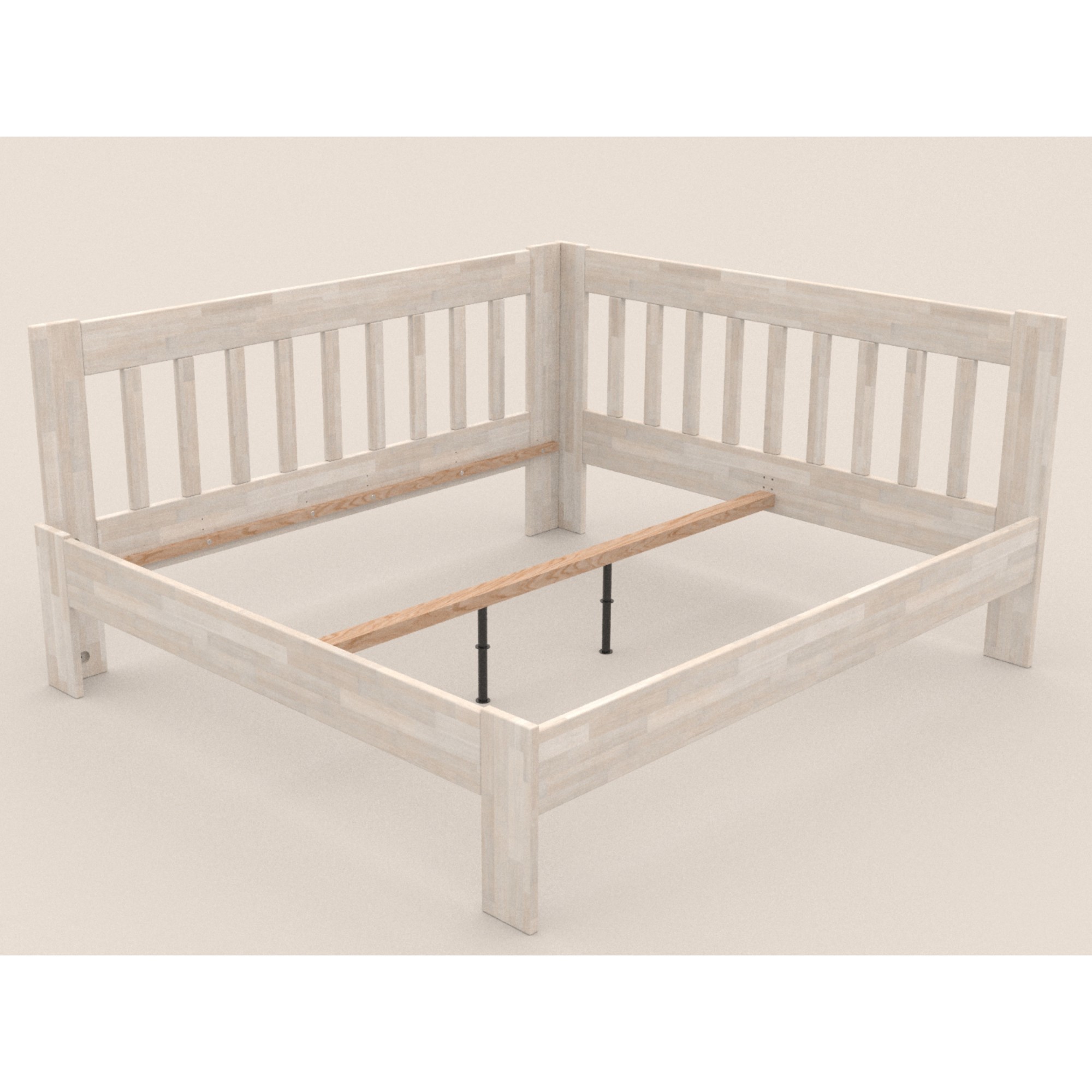 - Doplňující poznámka: Postel z bukového masivního dřeva je mořená do bílého odstínu. Nosnost 130 kg pro jednu ložnou plochu.