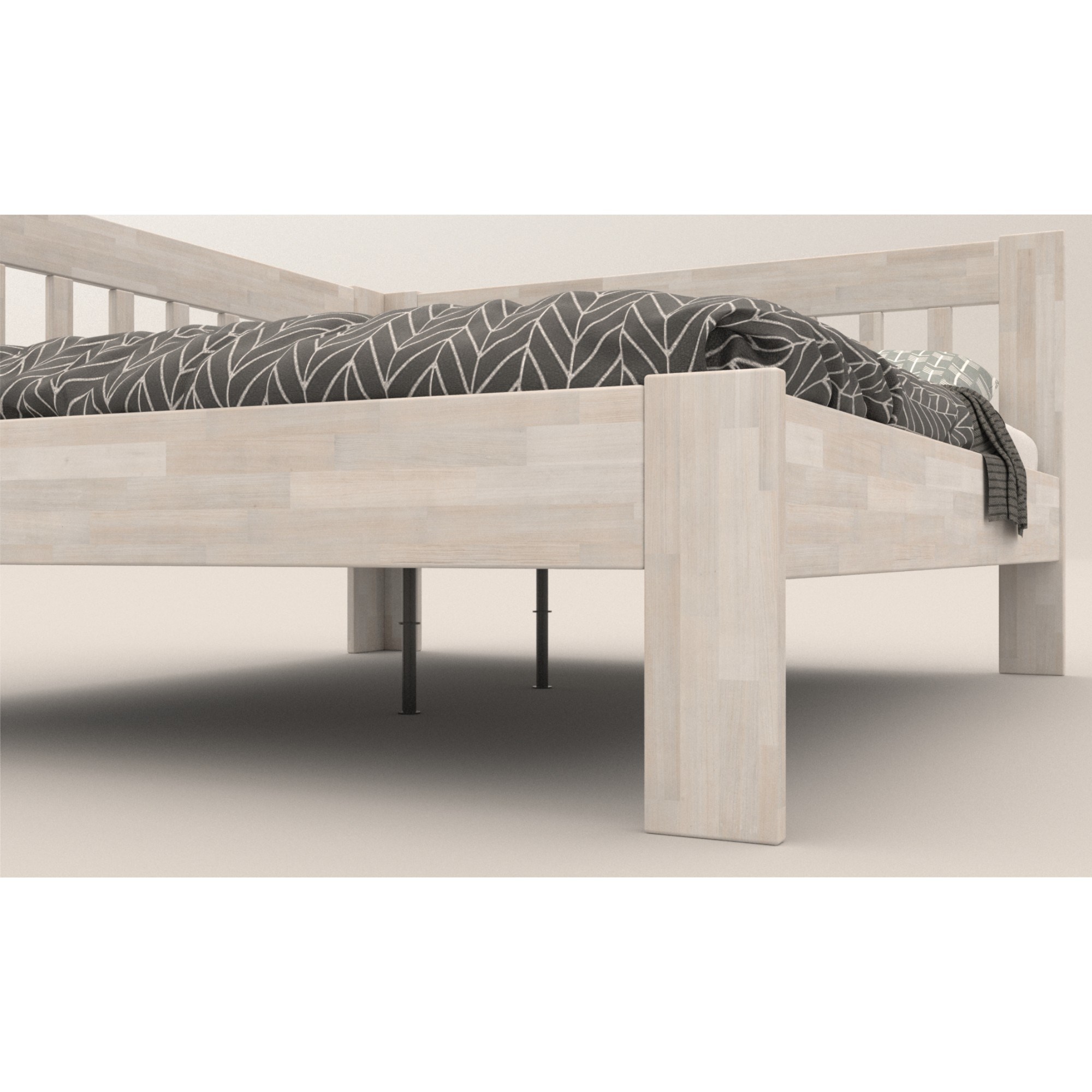 Postel je z masivního dřeva, které má vysokou nosnost, odolnost a je nenáročné na údržbu. Povrchová olejová úprava dřevo napouští a takto ošetřená postel poskytuje odolnost proti oděru. Důvod, proč je tato úprava oblíbená spočívá ve skutečnosti, že škrábance nejsou viditelné a hlubší stopy se dají odstranit čištěním a místní opravou. Tloušťka materiálu, ze kterého je postel vyrobena je 27 mm.