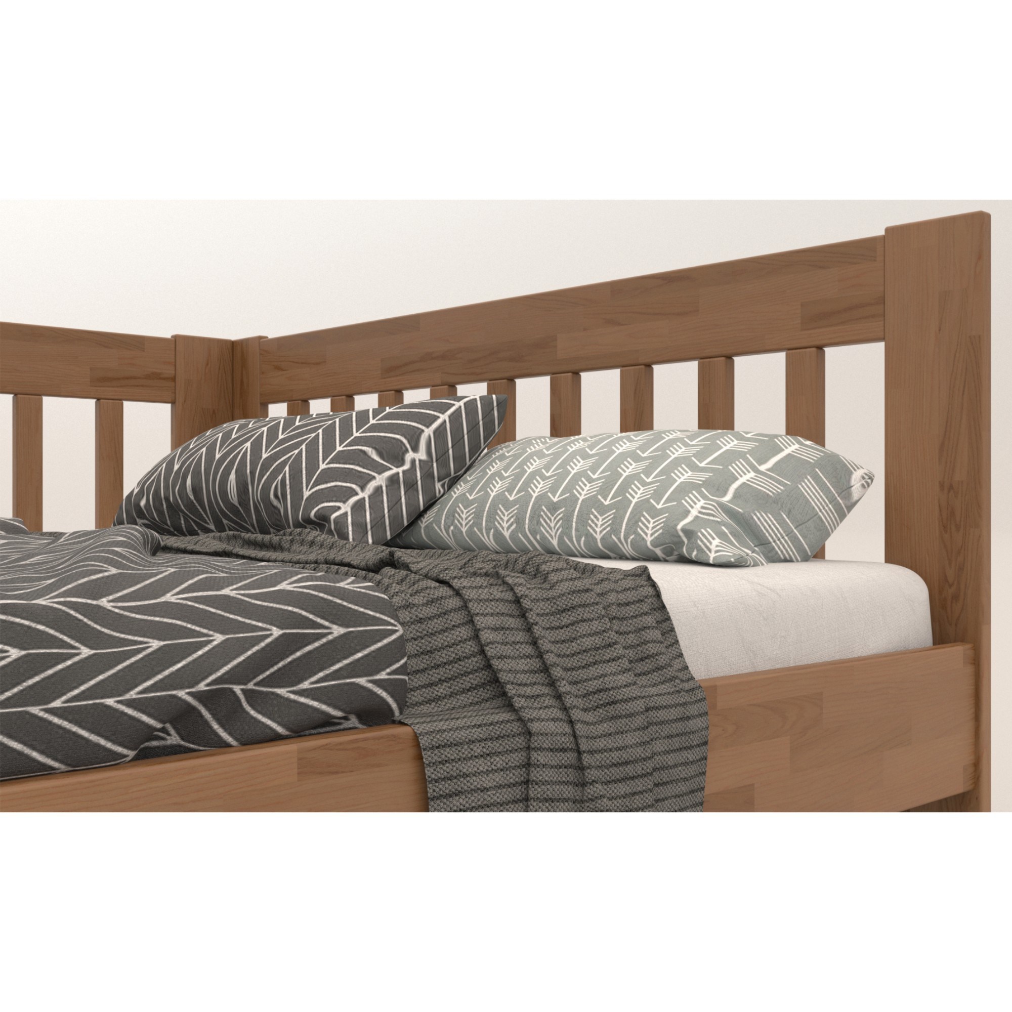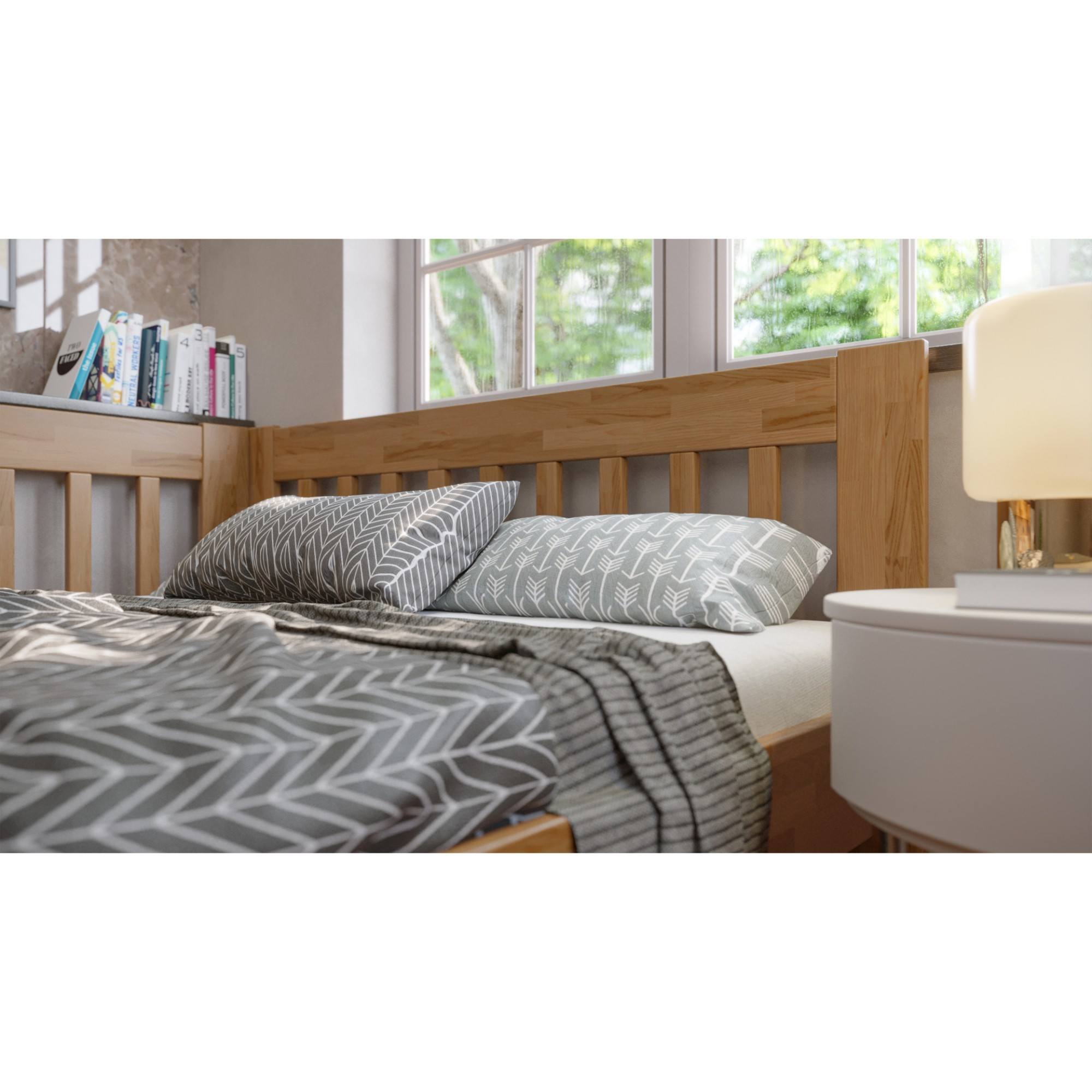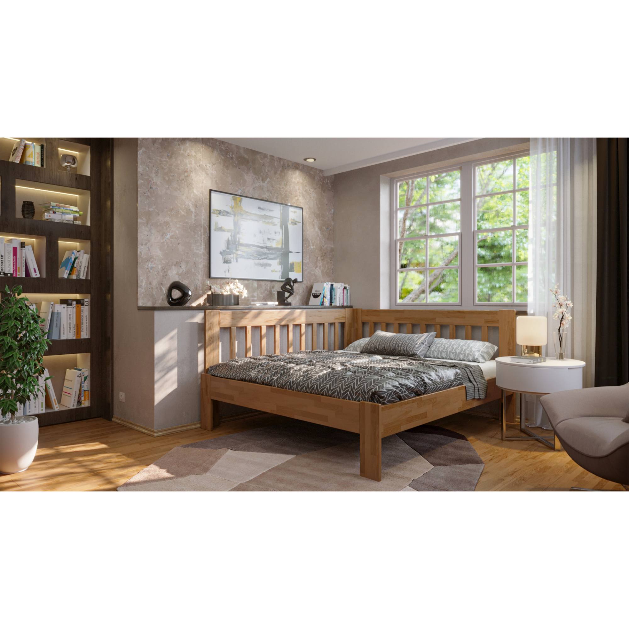 - Doplňující poznámka: Postel z dubového masivního dřeva je mořená do odstínu světlý ořech. Nosnost 130 kg pro jednu ložnou plochu.