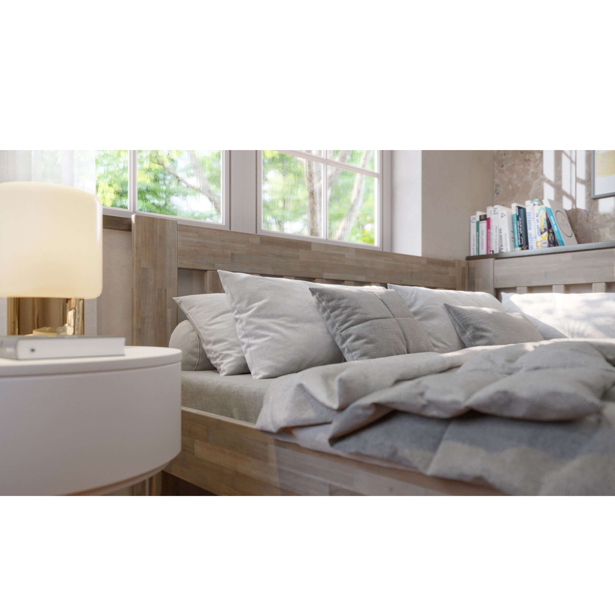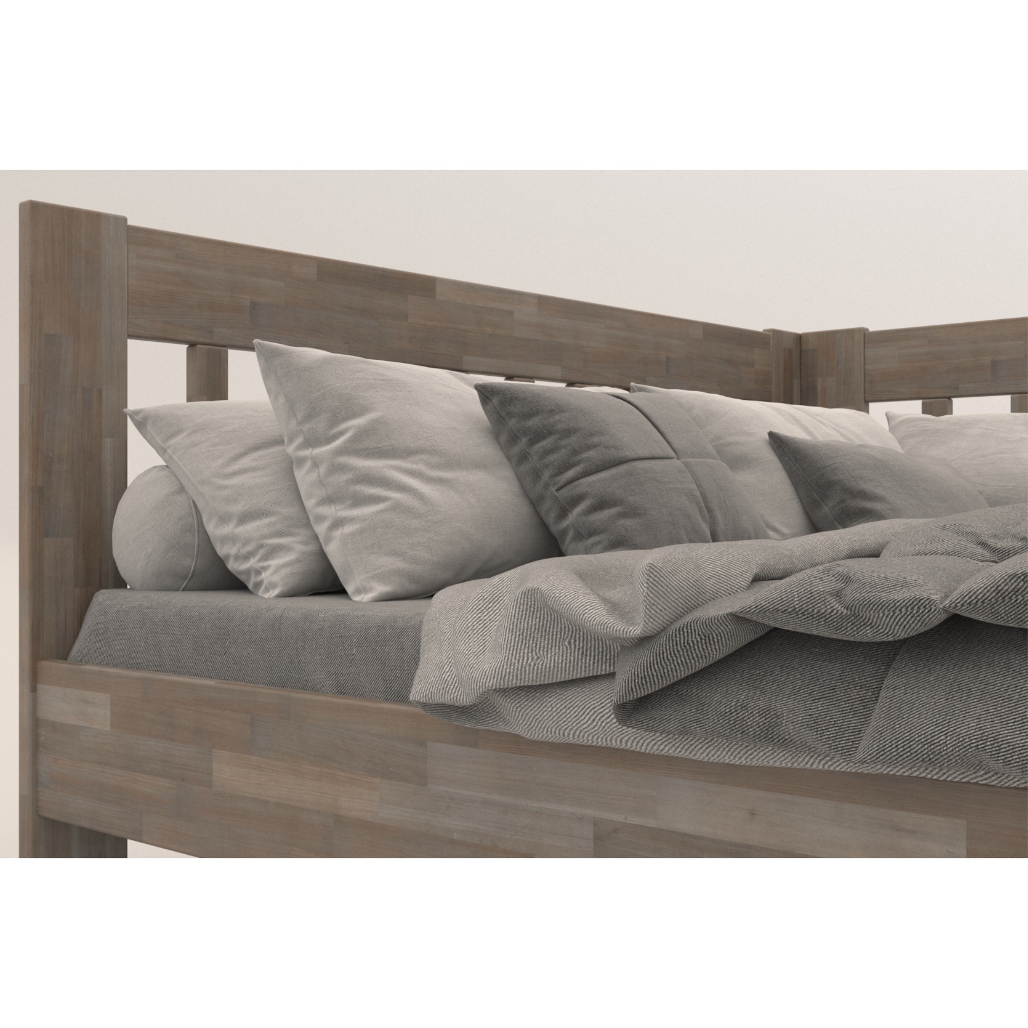 - Doplňující poznámka: Postel z bukového masivního dřeva je mořená do šedého odstínu. Nosnost 130 kg pro jednu ložnou plochu