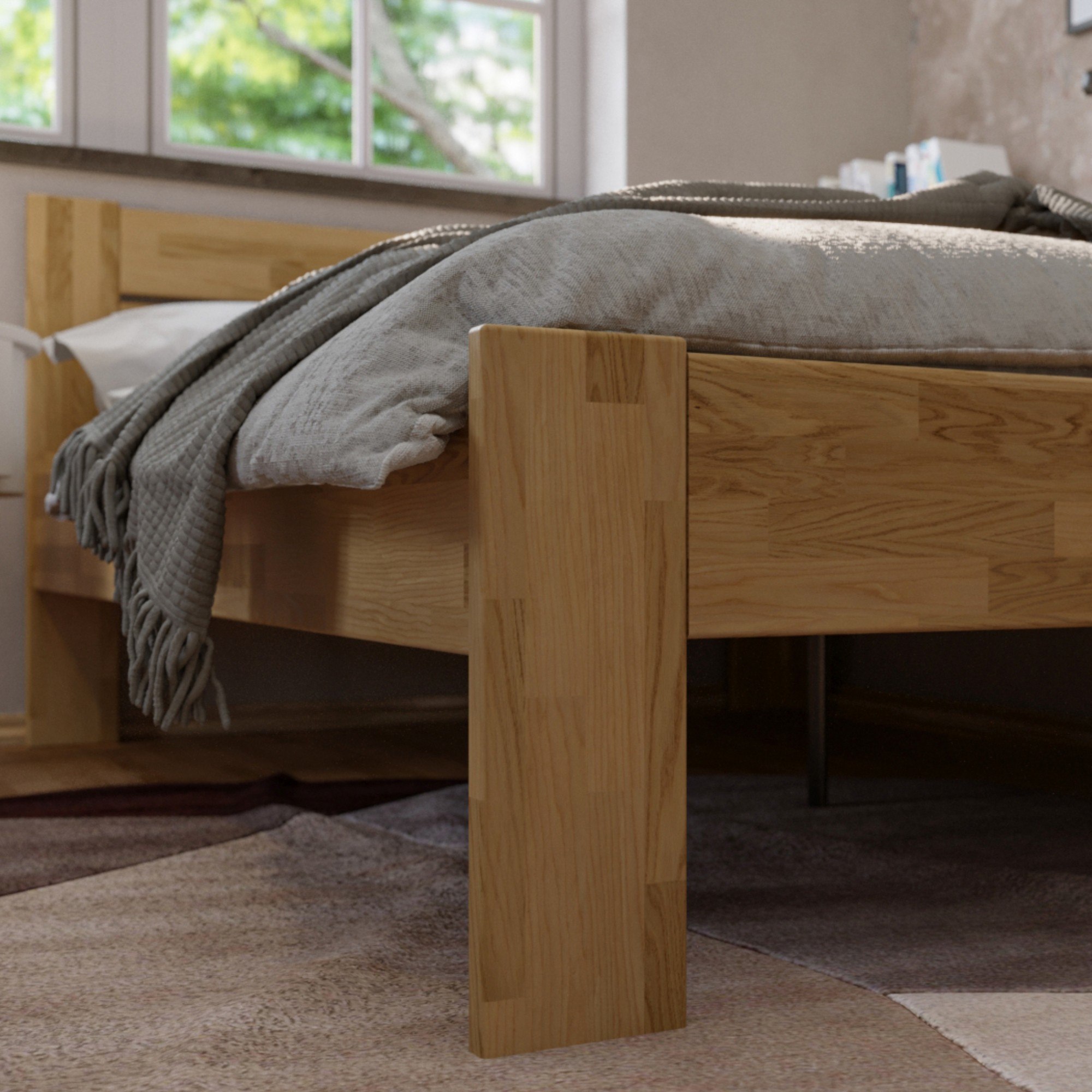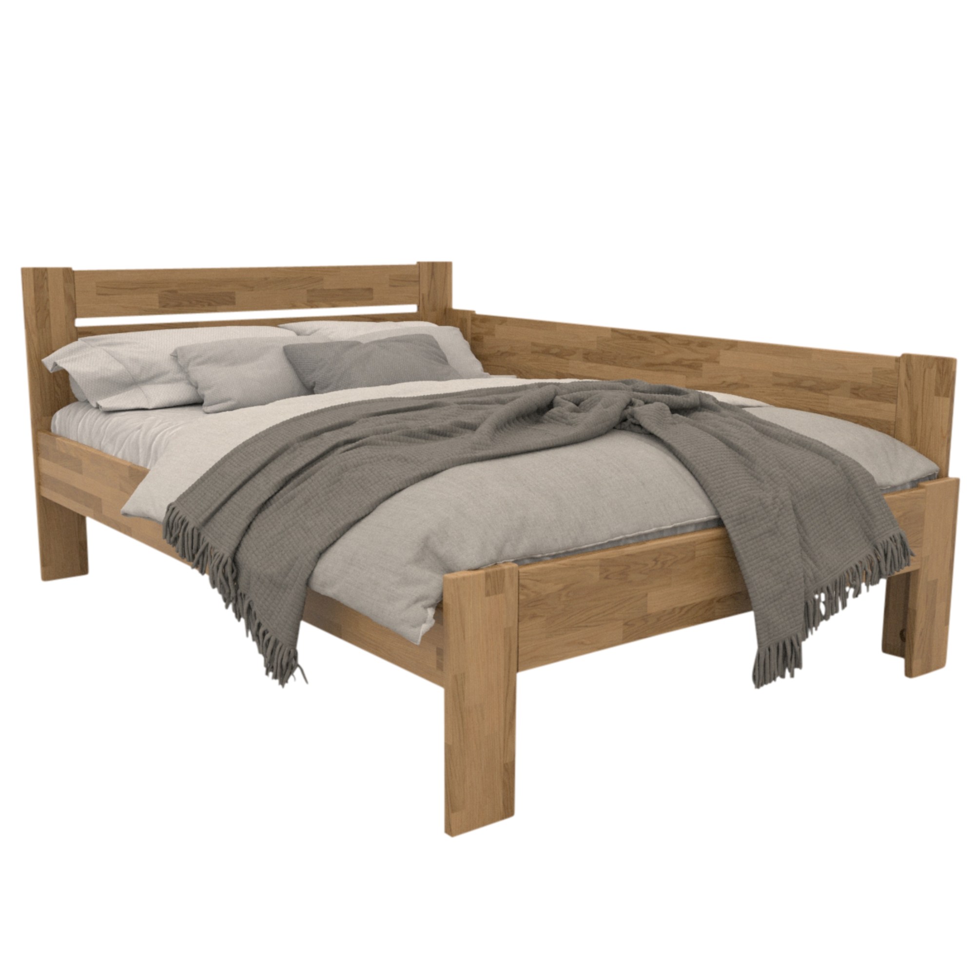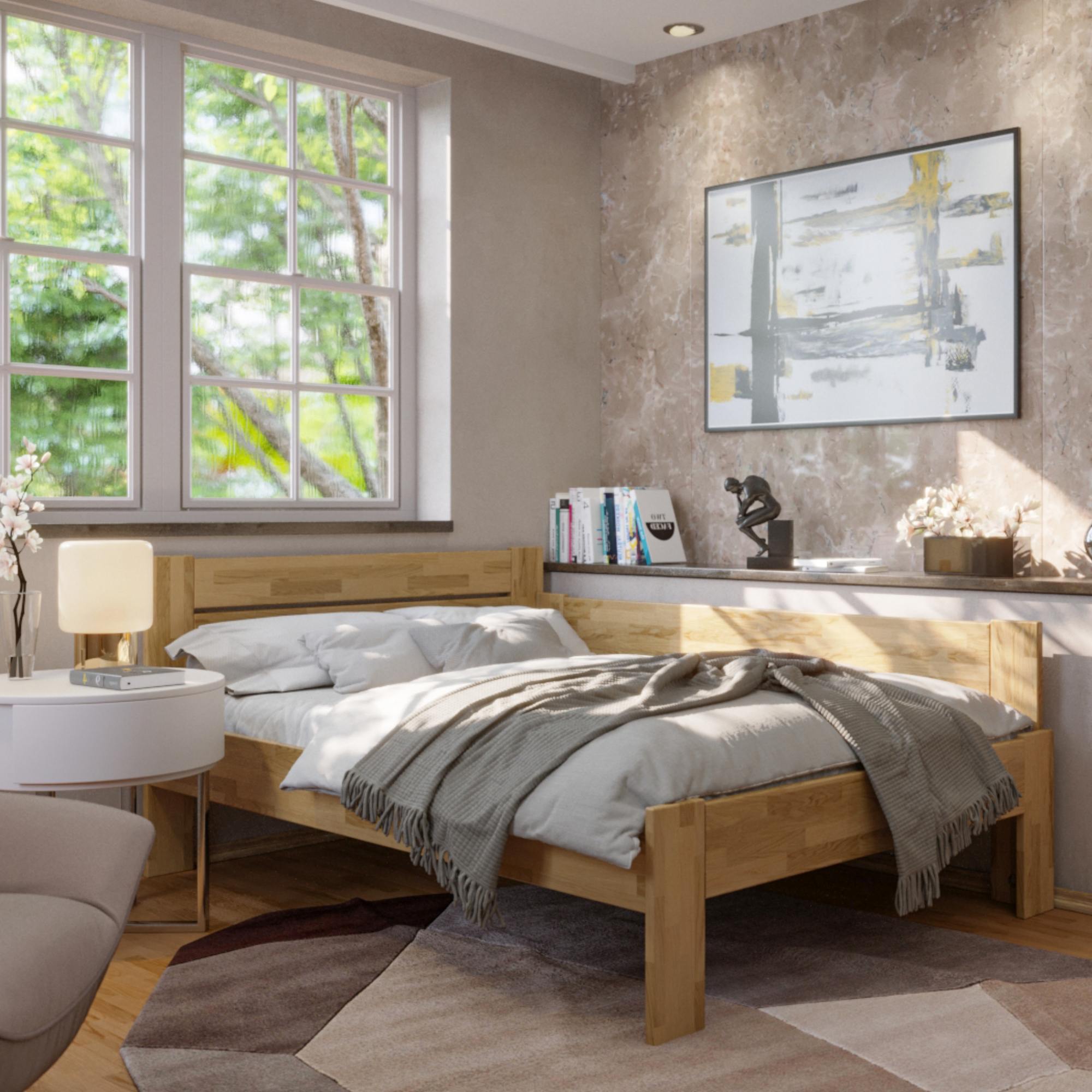Konstrukce je vyrobena z masivního dřeva, které je pevné, odolné a má dlouhou životnost. Povrchová olejovaná úprava dřevo napouští a zvyšuje odolnost proti oděru. Praktické rohové provedení vám umožňuje postel umístit kamkoliv, dle dispozic dané místnosti. Čelo i vysoká bočnice postele v kombinaci s polštáři jsou ideální pro pohodlné opření během odpočinku. Celou konstrukci podpírají pevné nohy zajišťující celkovou stabilitu a umožňující snadný úklid pod postelí. Dodávána je bez matrace a roštu, ale věříme, že si ty ideální vyberete z našeho širokého sortimentu.