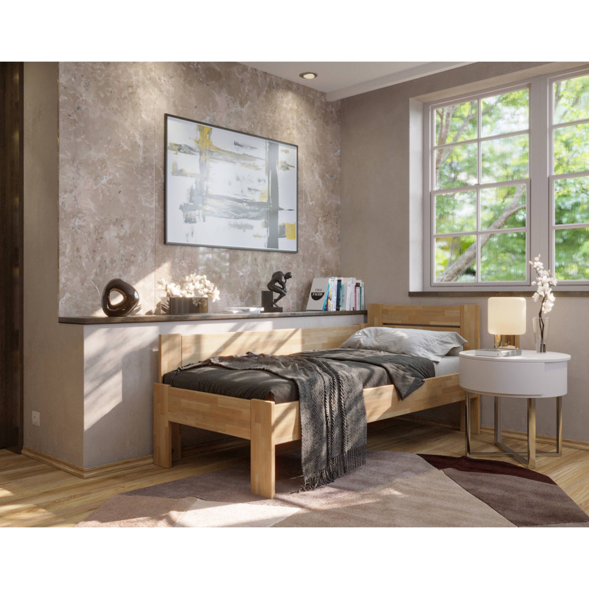 Konstrukce je vyrobena z masivního dřeva, které je pevné, odolné a má dlouhou životnost. Povrchová olejovaná úprava dřevo napouští a zvyšuje odolnost proti oděru. Praktické rohové provedení vám umožňuje postel umístit kamkoliv, dle dispozic dané místnosti. Čelo i vysoká bočnice postele v kombinaci s polštáři jsou ideální pro pohodlné opření během odpočinku. Celou konstrukci podpírají pevné nohy zajišťující celkovou stabilitu a umožňující snadný úklid pod postelí. Dodávána je bez matrace a roštu, ale věříme, že si ty ideální vyberete z našeho širokého sortimentu.
