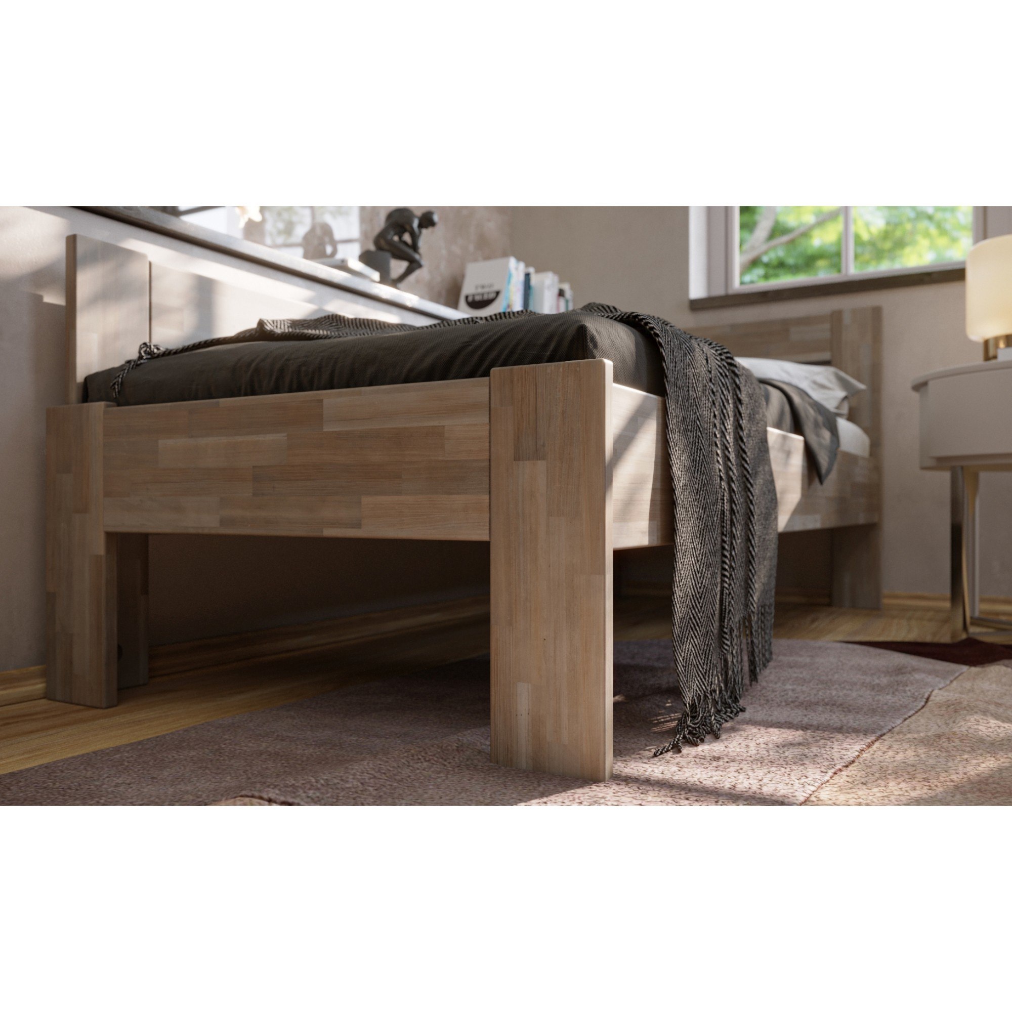 - Doplňující poznámka: Postel z bukového masivního dřeva je mořená do šedého odstínu. Maximální nosnost celé postele je 130 kg.
