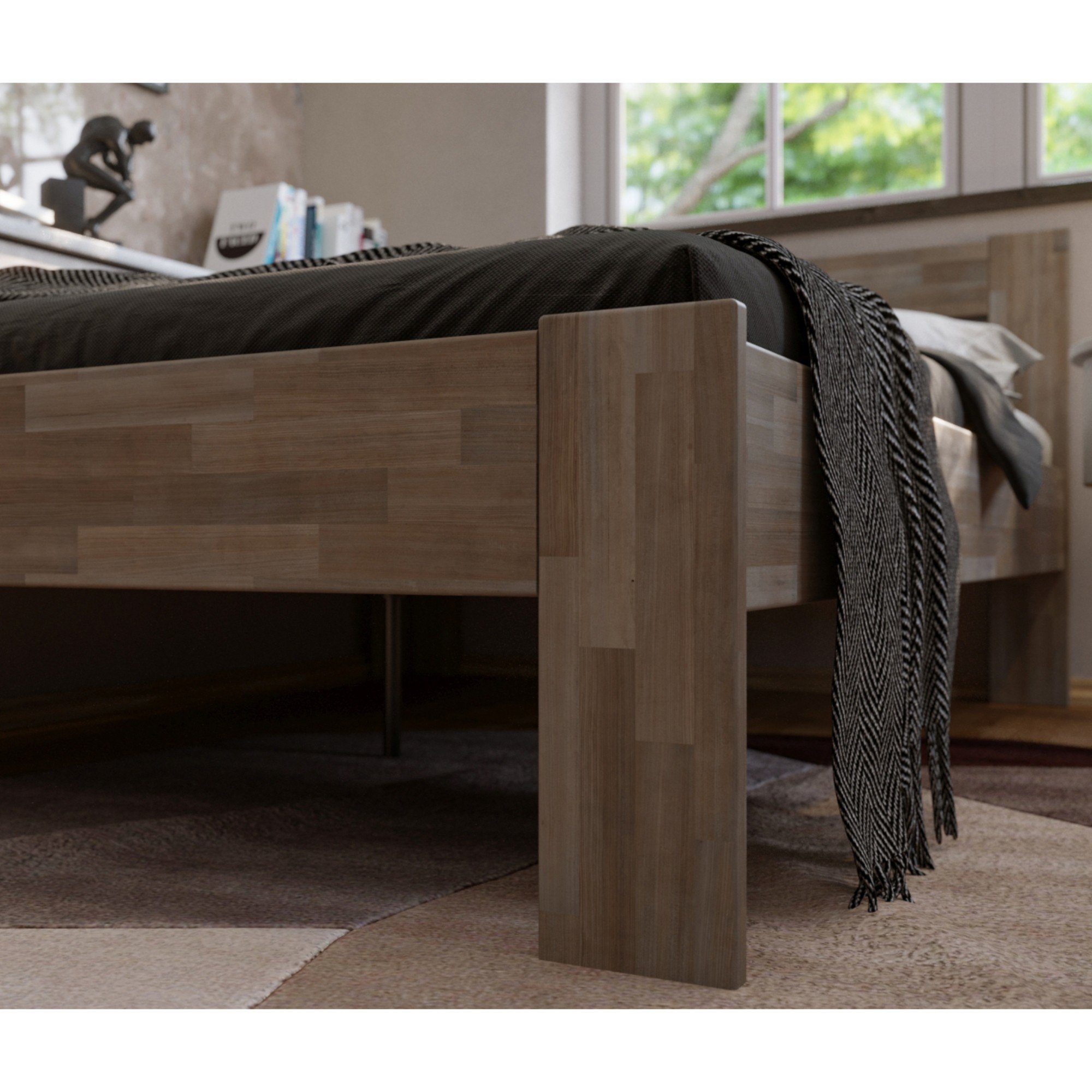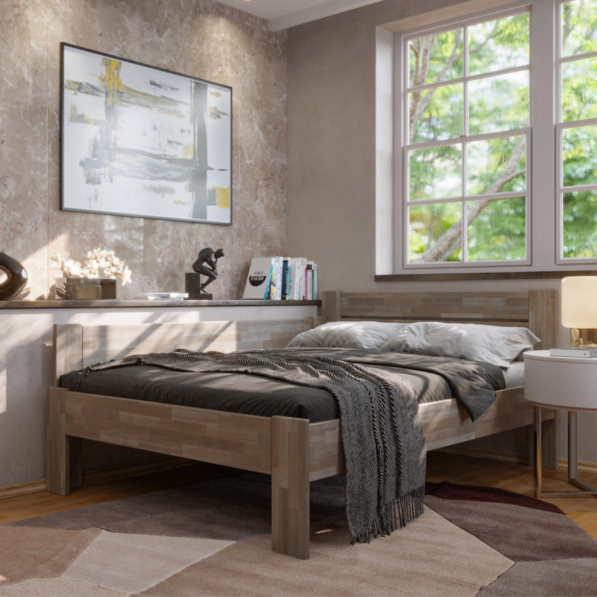 - Doplňující poznámka: Postel z bukového masivního dřeva je mořená do šedého odstínu. Maximální nosnost celé postele je 195 kg.