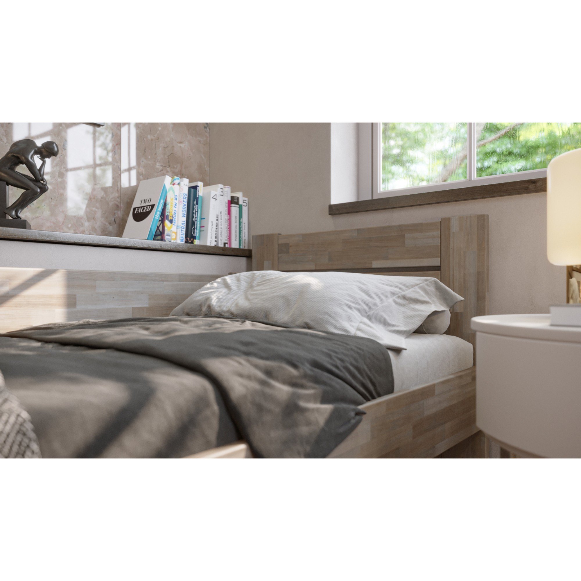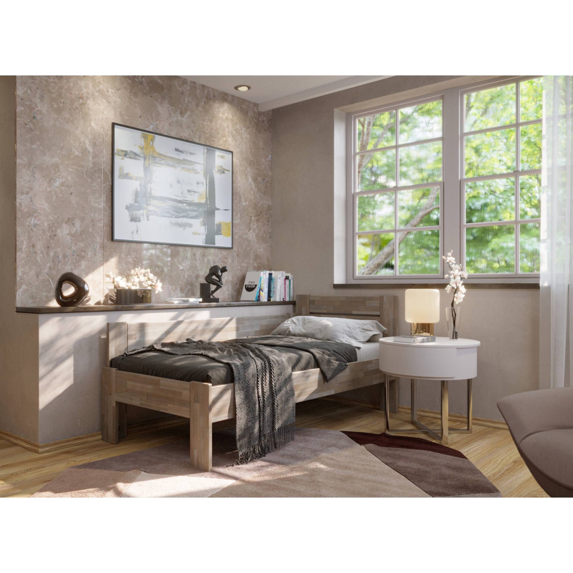- Doplňující poznámka: Postel z bukového masivního dřeva je mořená do šedého odstínu. Maximální nosnost celé postele je 130 kg.