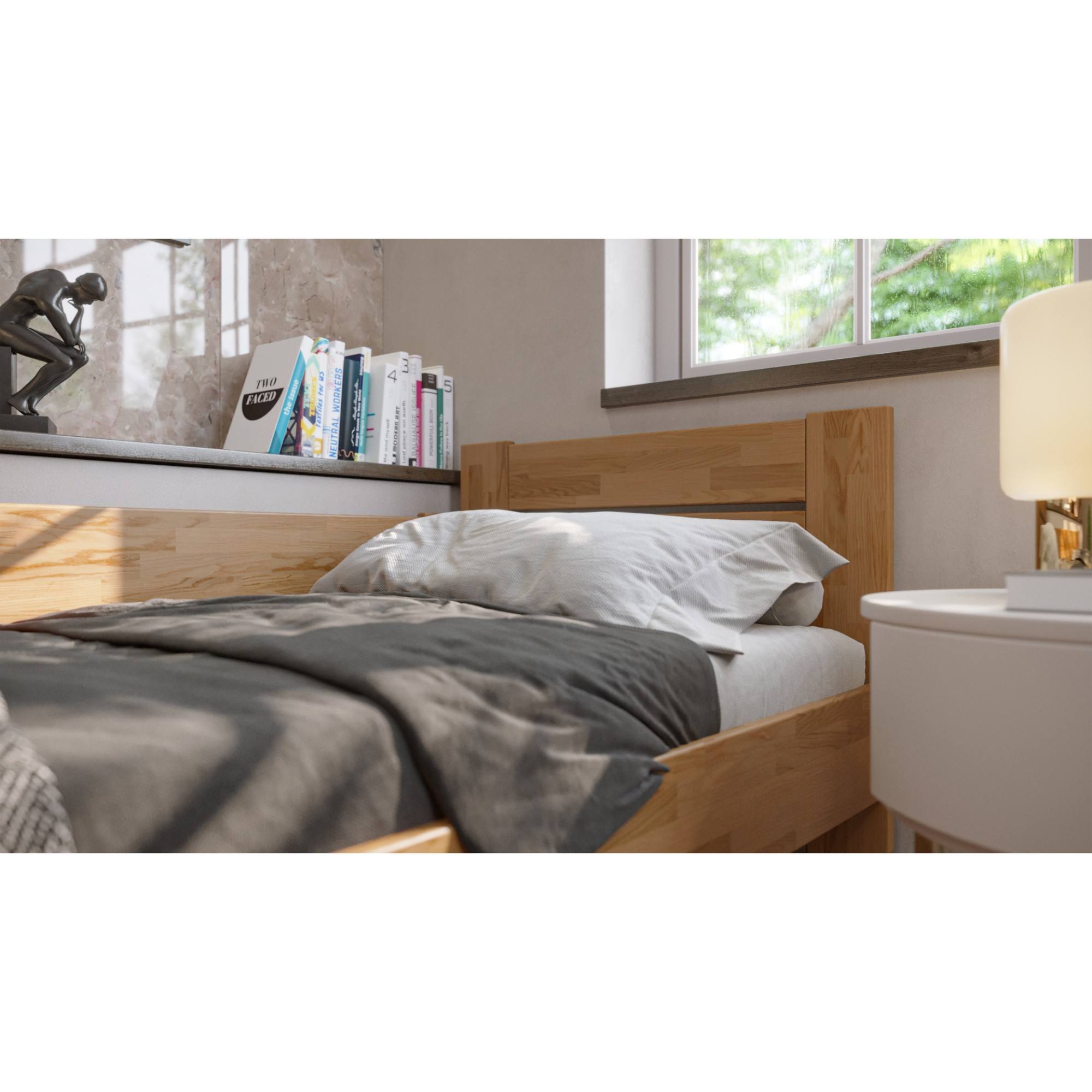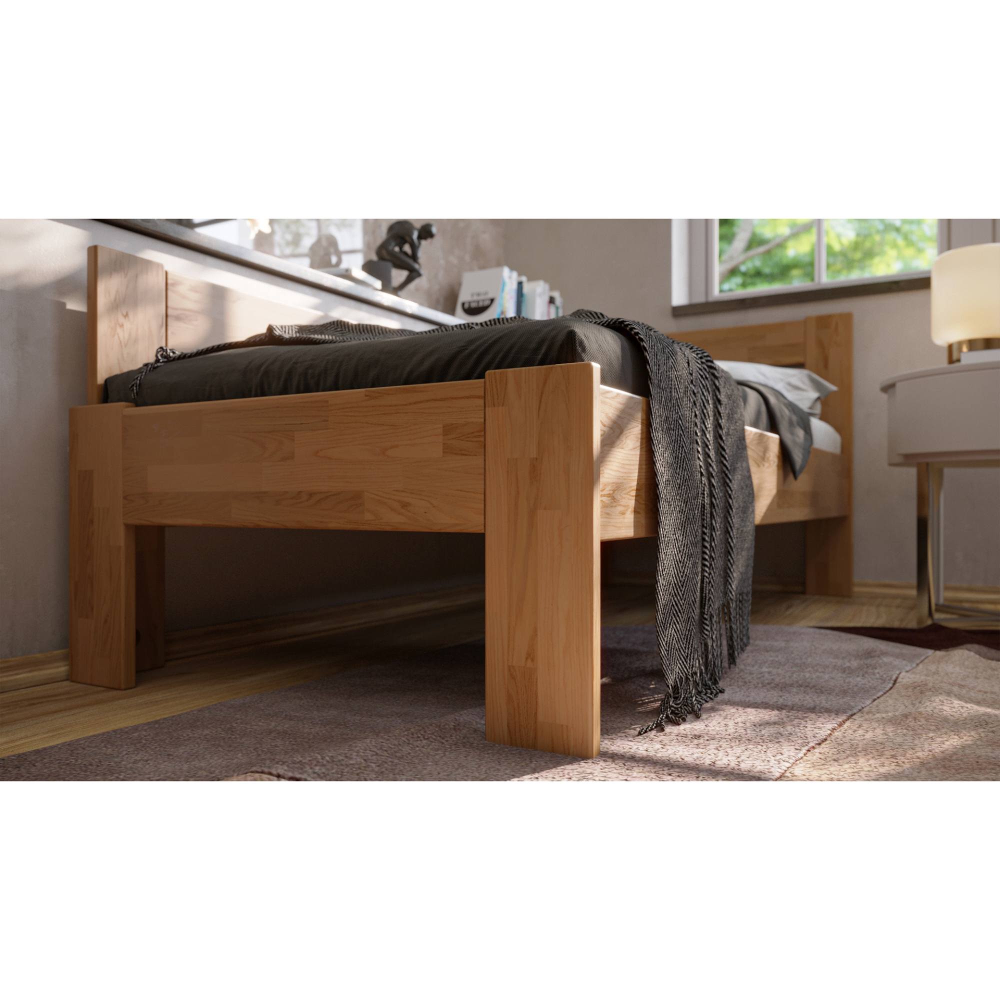 - Doplňující poznámka: Postel z dubového masivního dřeva je mořená do odstínu světlý ořech. Maximální nosnost celé postele je 130 kg.