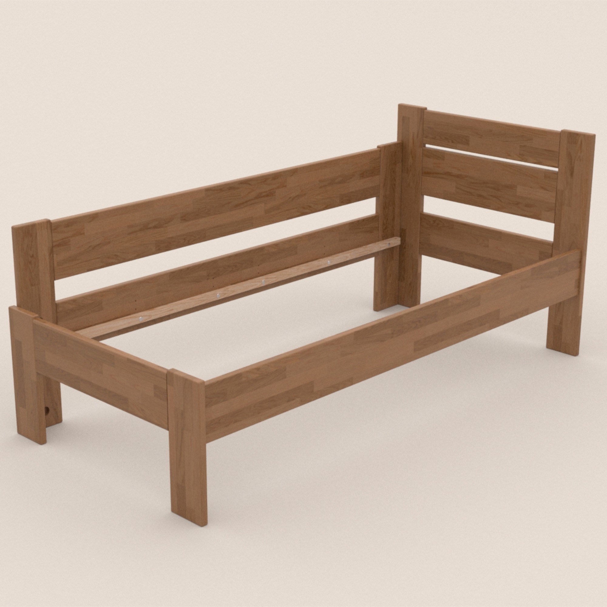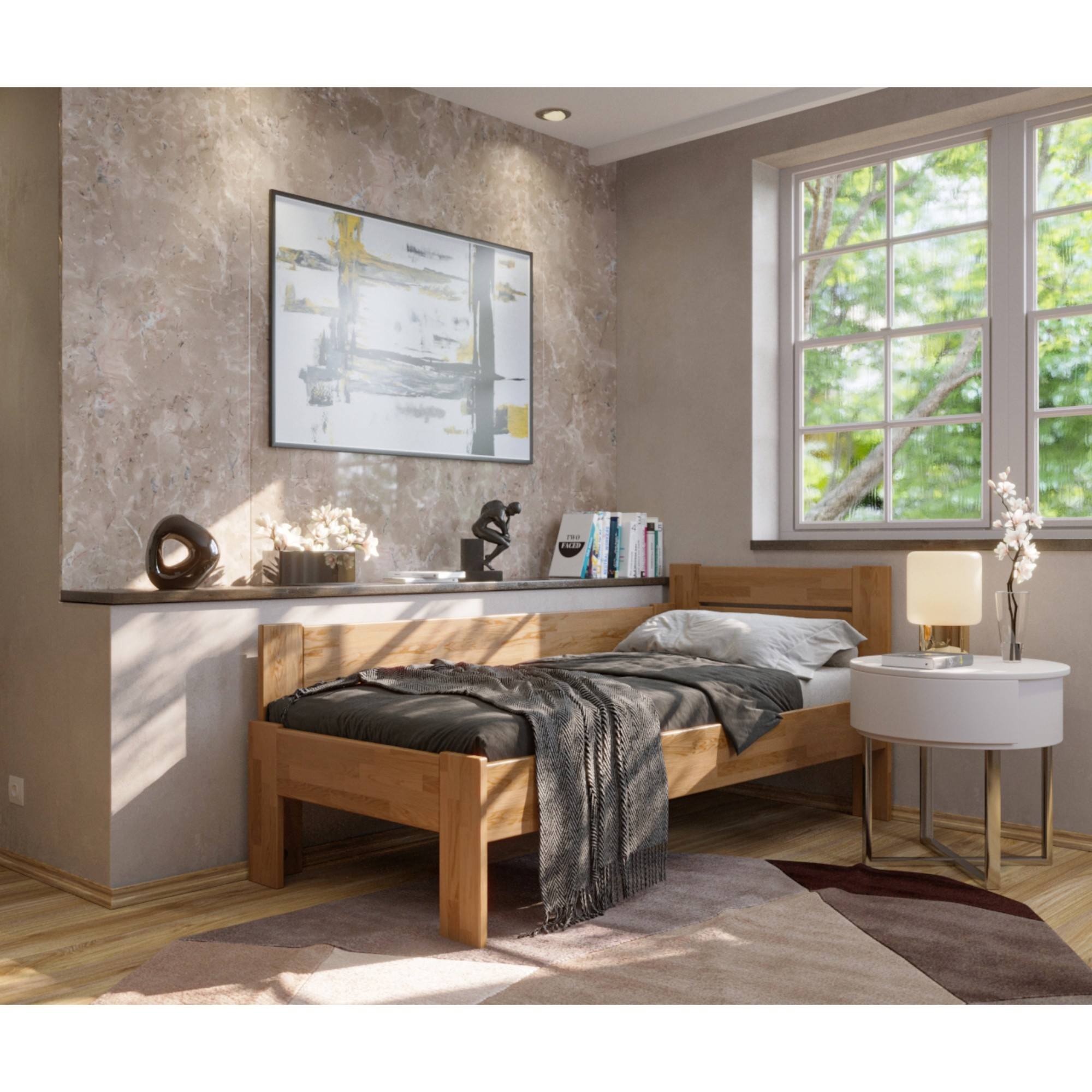 Konstrukce je vyrobena z masivního dřeva, které je pevné, odolné a má dlouhou životnost. Povrchová olejovaná úprava dřevo napouští a zvyšuje odolnost proti oděru. Praktické rohové provedení vám umožňuje postel umístit kamkoliv, dle dispozic dané místnosti. Čelo i vysoká bočnice postele v kombinaci s polštáři jsou ideální pro pohodlné opření během odpočinku. Celou konstrukci podpírají pevné nohy zajišťující celkovou stabilitu a umožňující snadný úklid pod postelí. Dodávána je bez matrace a roštu, ale věříme, že si ty ideální vyberete z našeho širokého sortimentu.