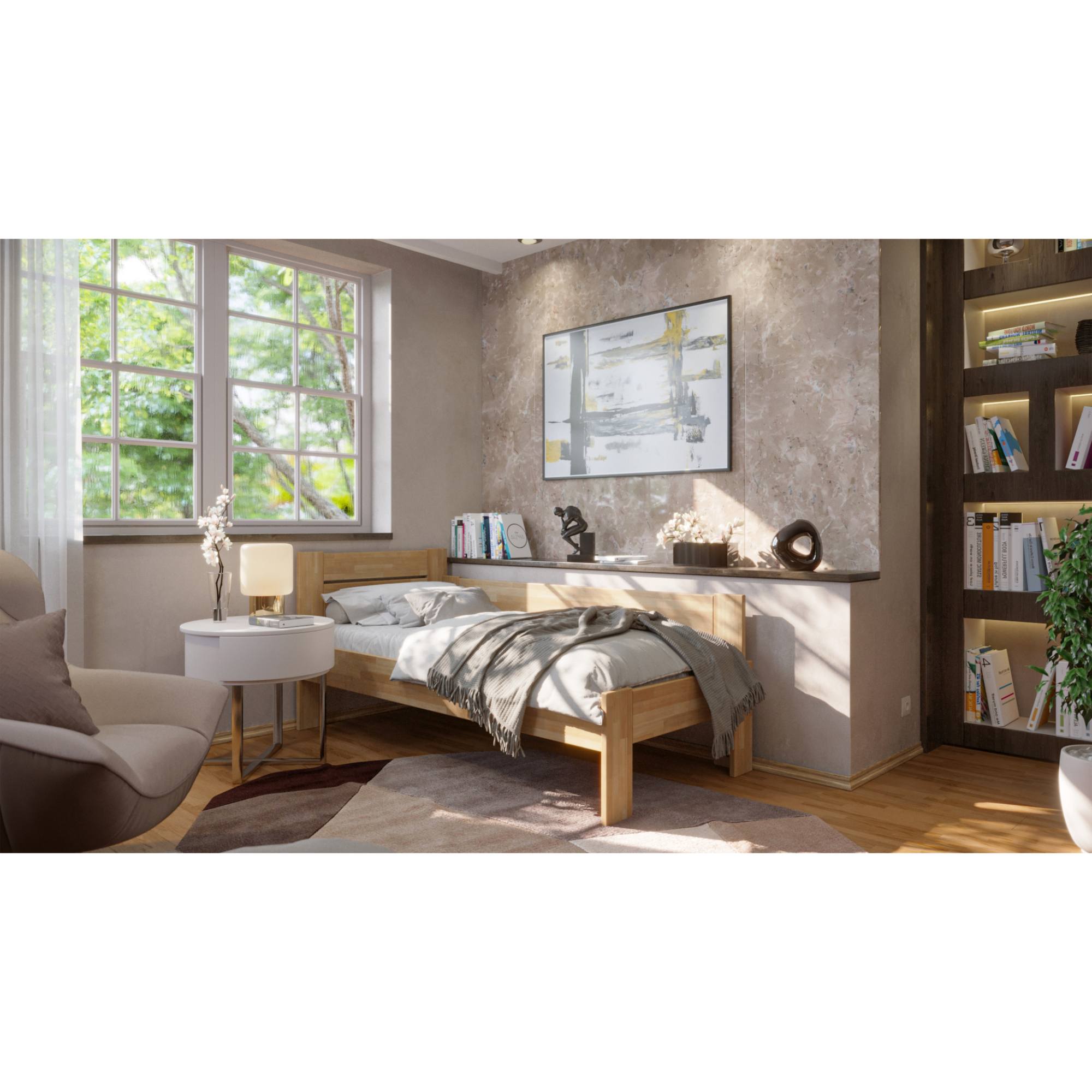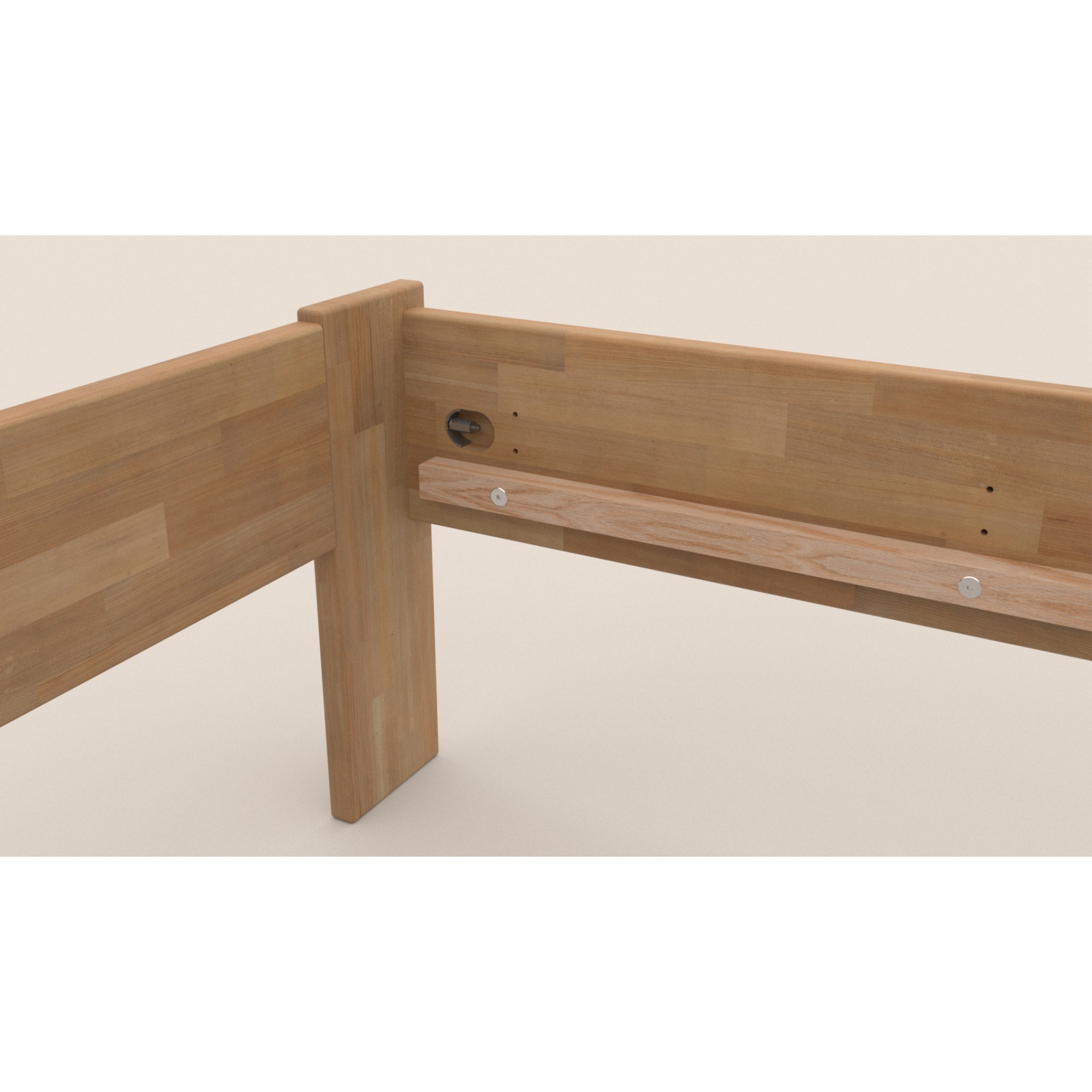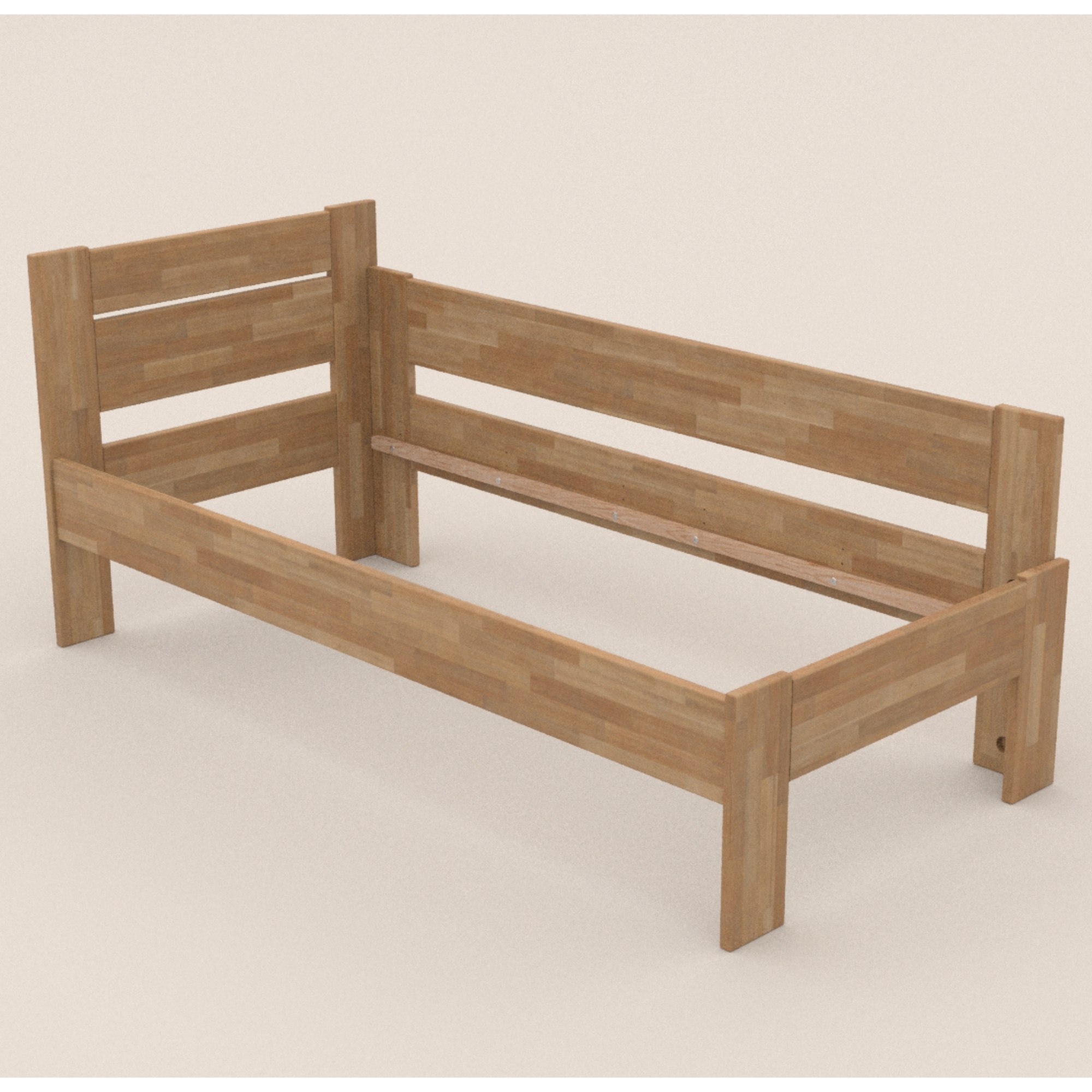 Konstrukce je vyrobena z masivního dřeva, které je pevné, odolné a má dlouhou životnost. Povrchová olejovaná úprava dřevo napouští a zvyšuje odolnost proti oděru. Praktické rohové provedení vám umožňuje postel umístit kamkoliv, dle dispozic dané místnosti. Čelo i vysoká bočnice postele v kombinaci s polštáři jsou ideální pro pohodlné opření během odpočinku. Celou konstrukci podpírají pevné nohy zajišťující celkovou stabilitu a umožňující snadný úklid pod postelí. Dodávána je bez matrace a roštu, ale věříme, že si ty ideální vyberete z našeho širokého sortimentu.