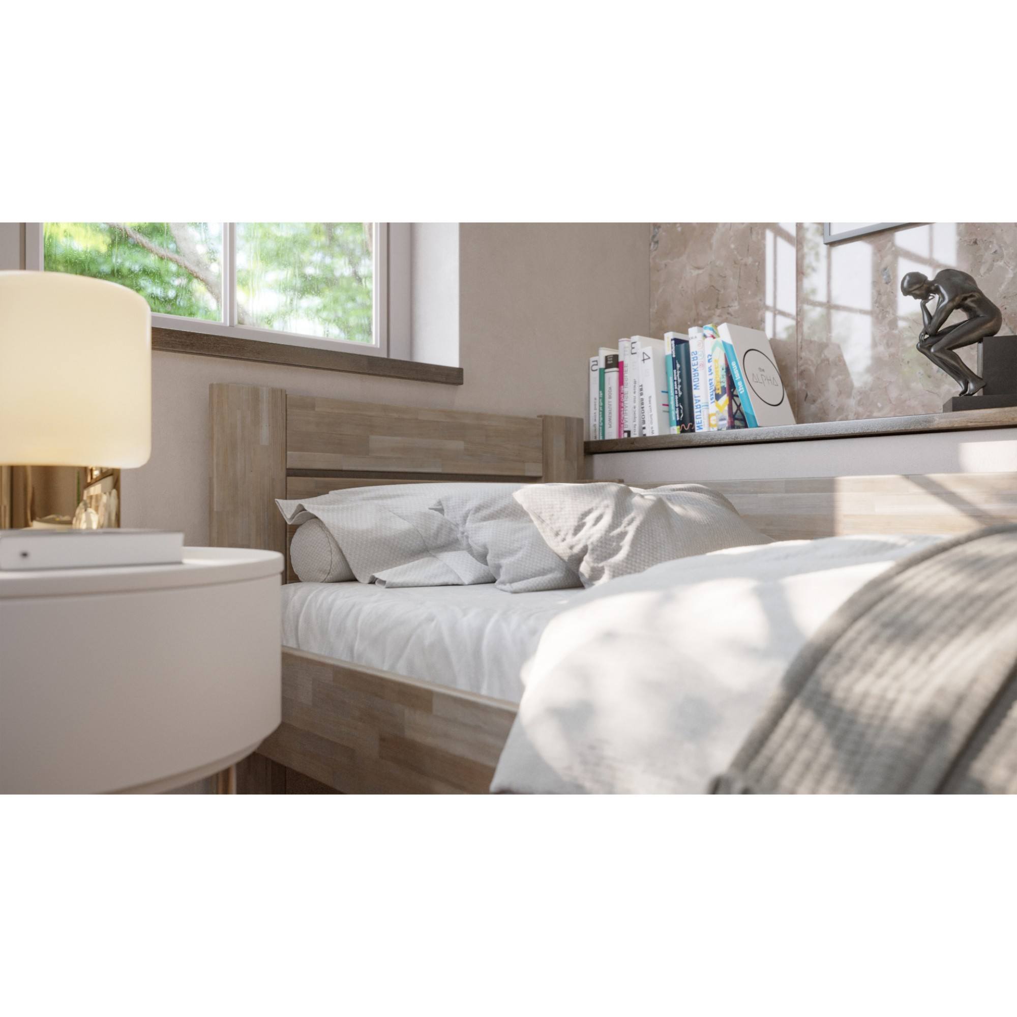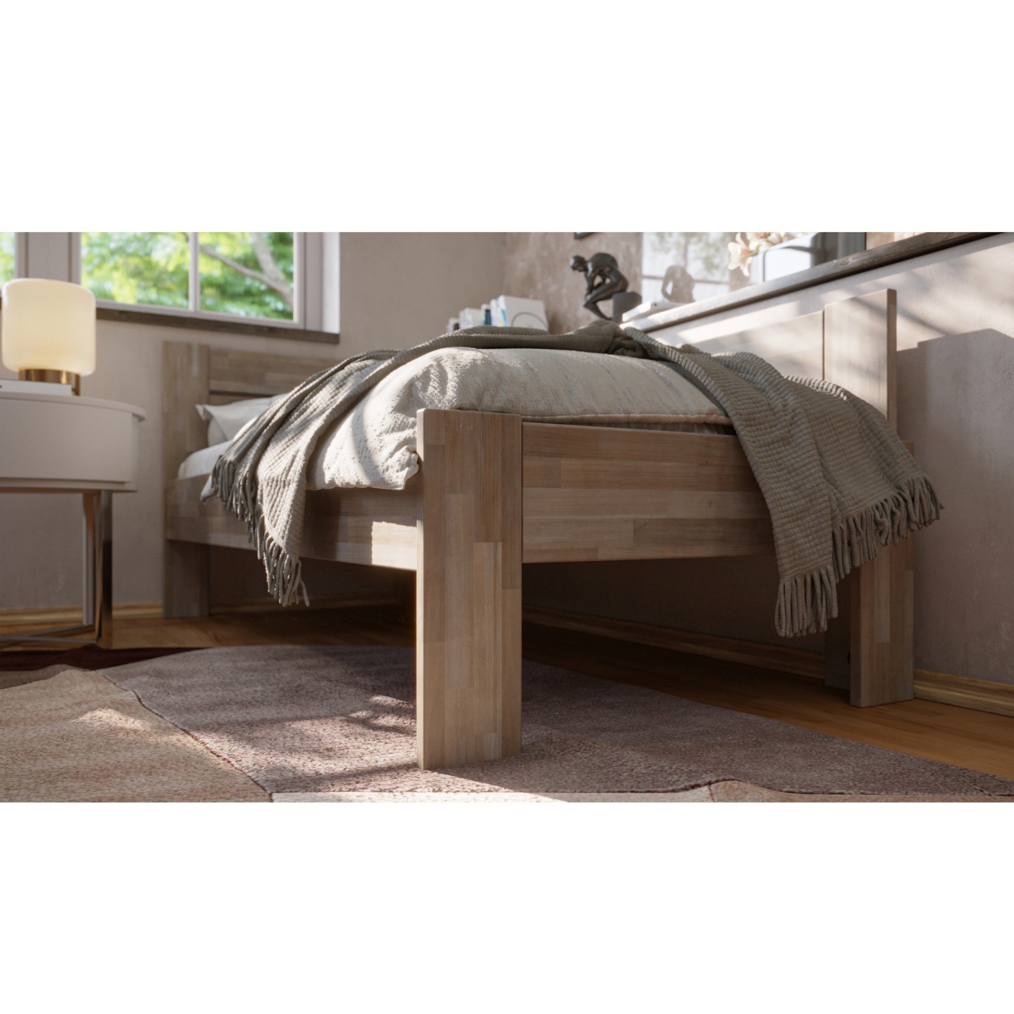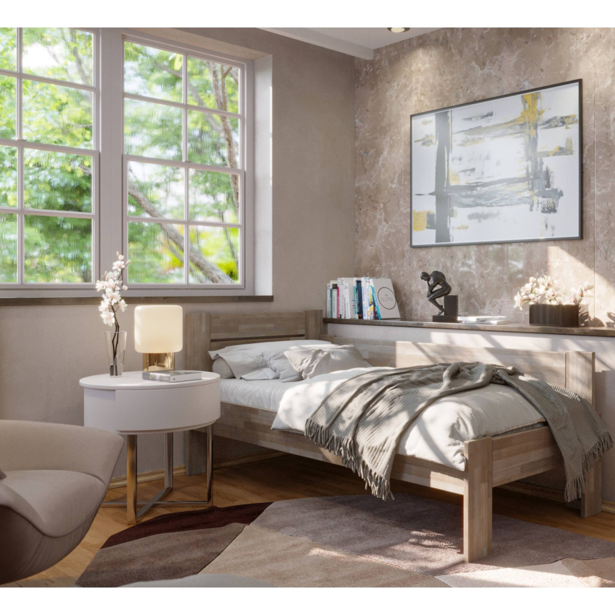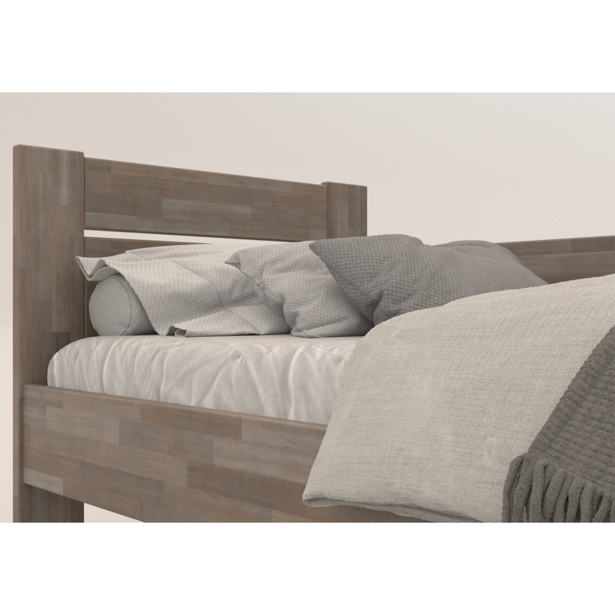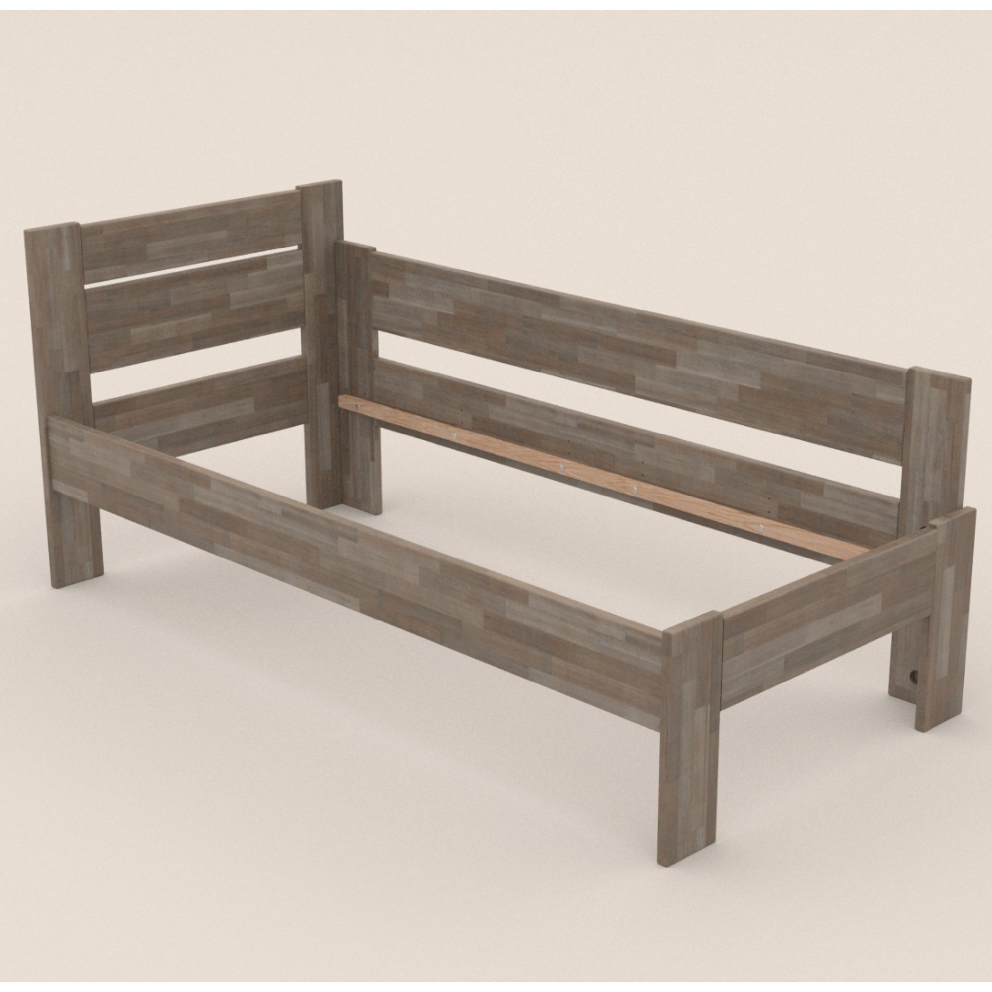 - Doplňující poznámka: Postel z bukového masivního dřeva je mořená do šedého odstínu. Maximální nosnost celé postele je 130 kg.