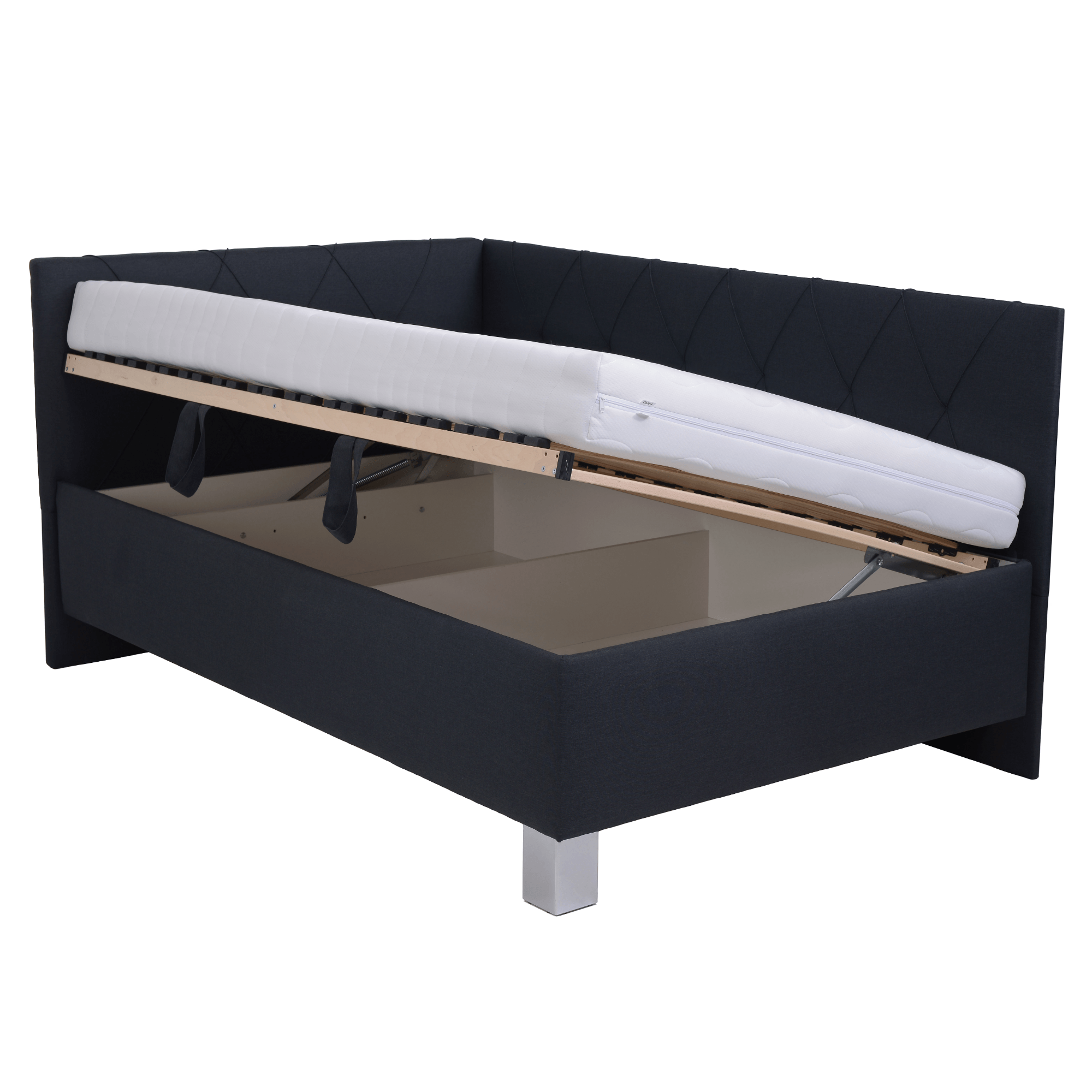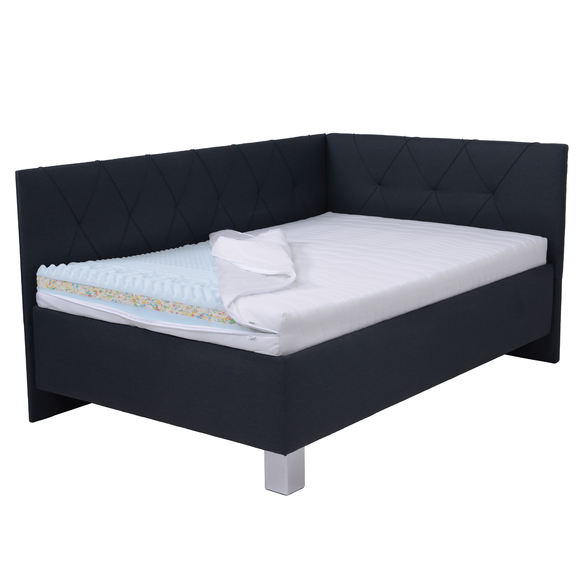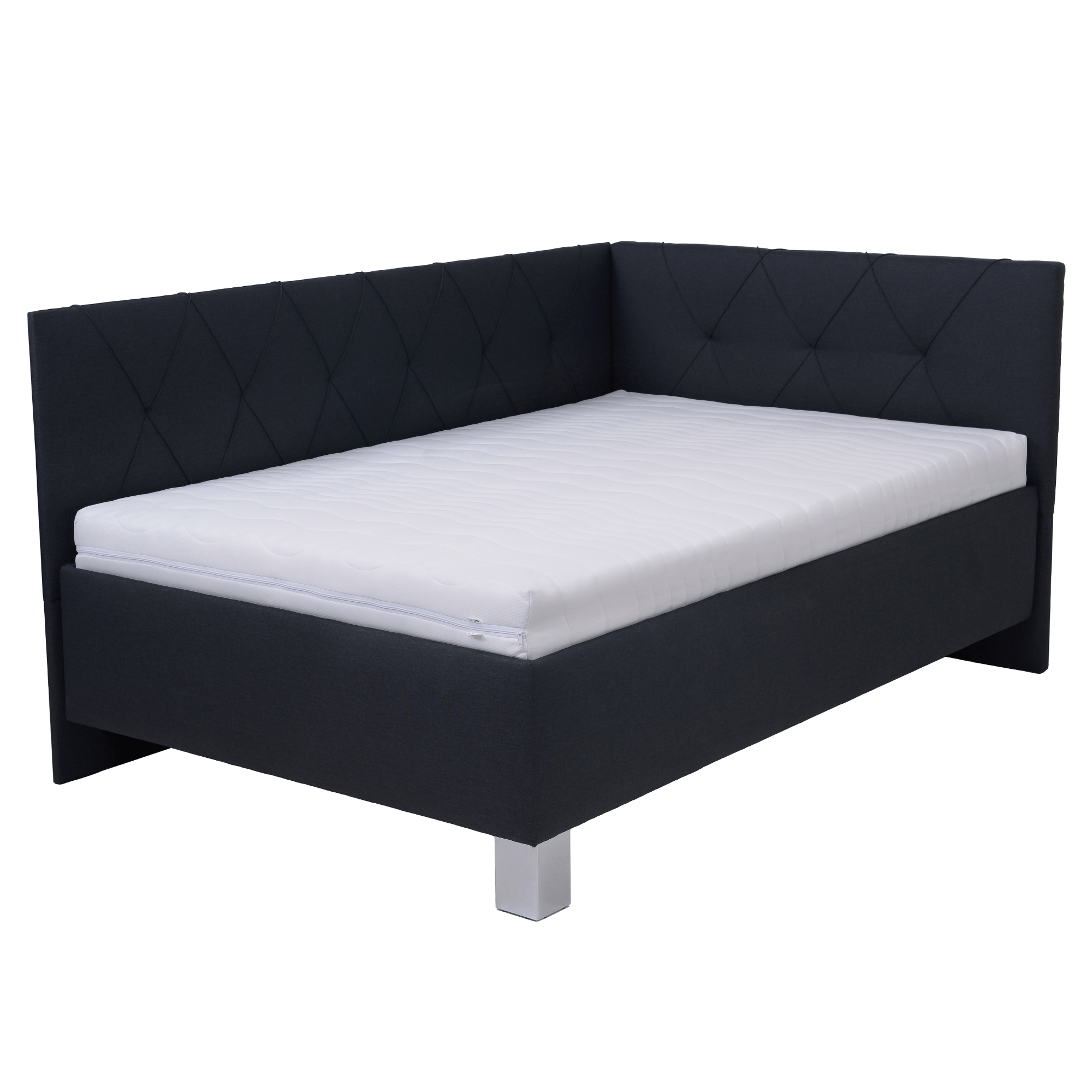 Rohová postel s matrací AFRODITE - černá, 140x200 cm