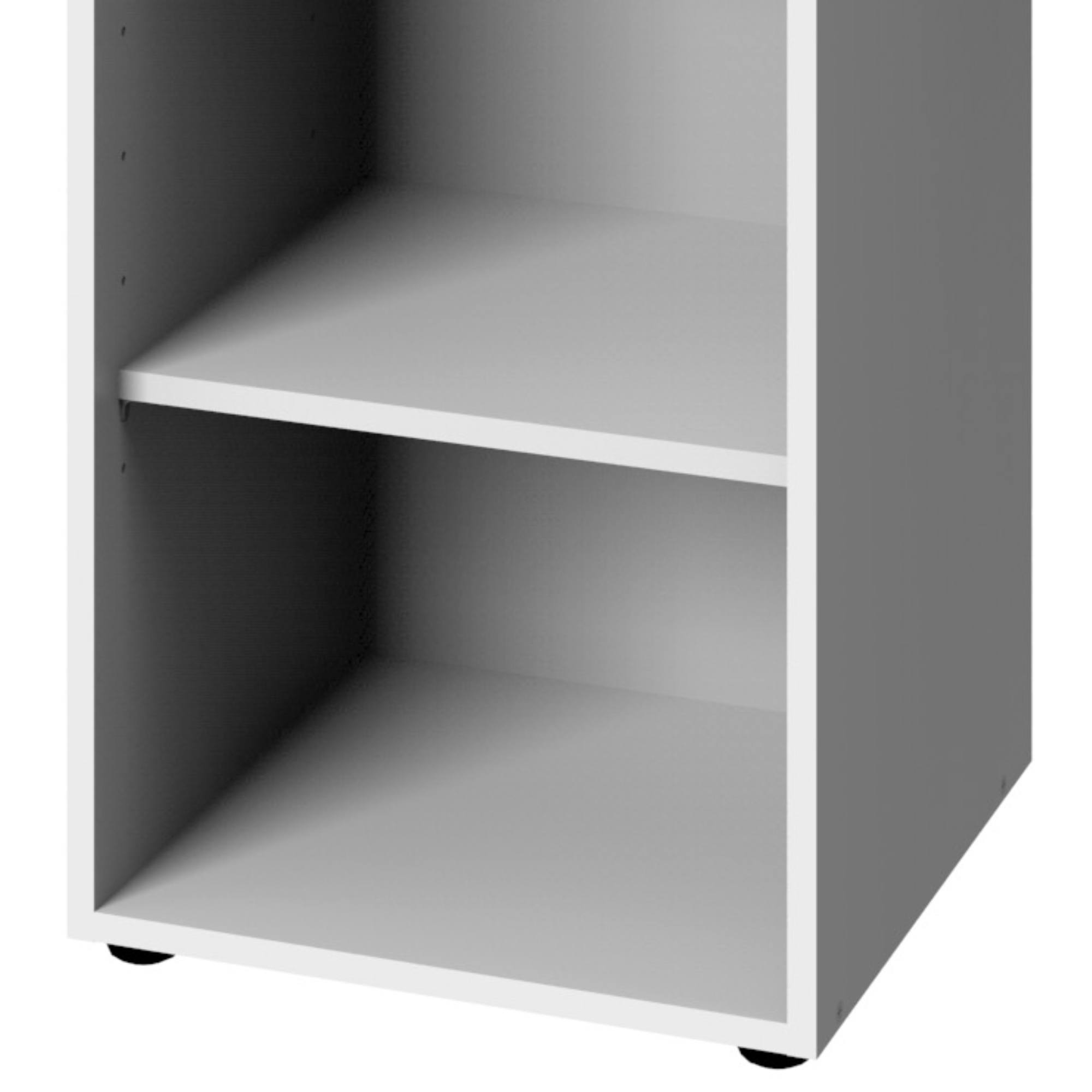 Regál disponuje 3 vloženými policemi a praktickou horní deskou. Regál má korpus vyrobený z laminovaného dřevěného materiálu a police vyrobené z fóliovaného dřevěného materiálu. Tyto materiály jsou nenáročné na údržbu. Chcete mít interiér sjednocený do jednoho stylu? Podívejte se na další nábytek ze stejnojmenného nábytkového programu MULTIRAUMKONZEPT.