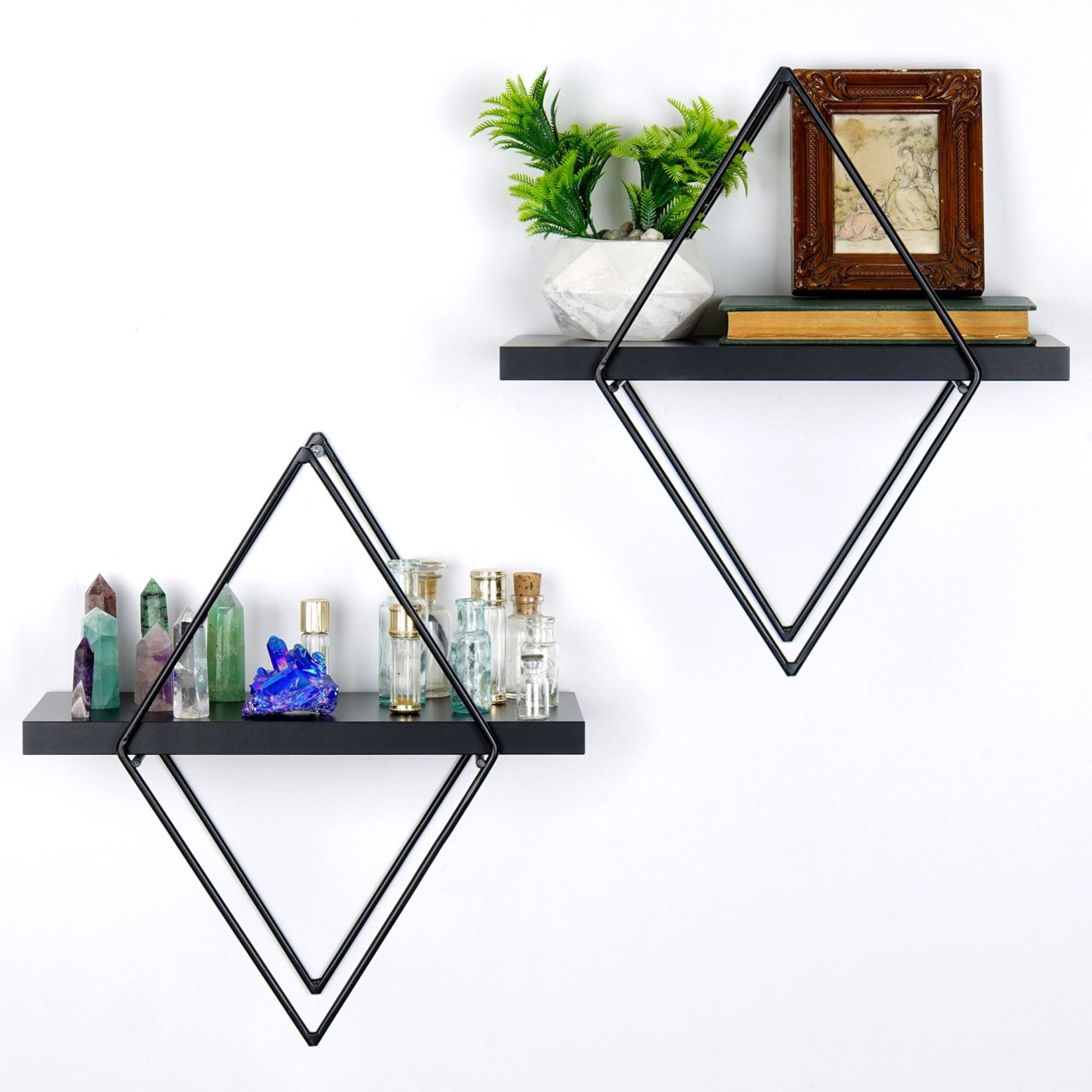 Sada polic PRISMA II vás zaujme na první pohled svým atypickým vzhledem. Lakovaná kovová konstrukce geometrického tvaru v kombinaci s policemi v černé barvě poskytne místo dekoracím, květinám, knihám nebo fotografiím, které budou odrážet vaši jedinečnost. Police PRISMA II doladí jedinečný styl vašemu interiéru a zároveň mu poskytne tolik žádaný odkládací prostor.