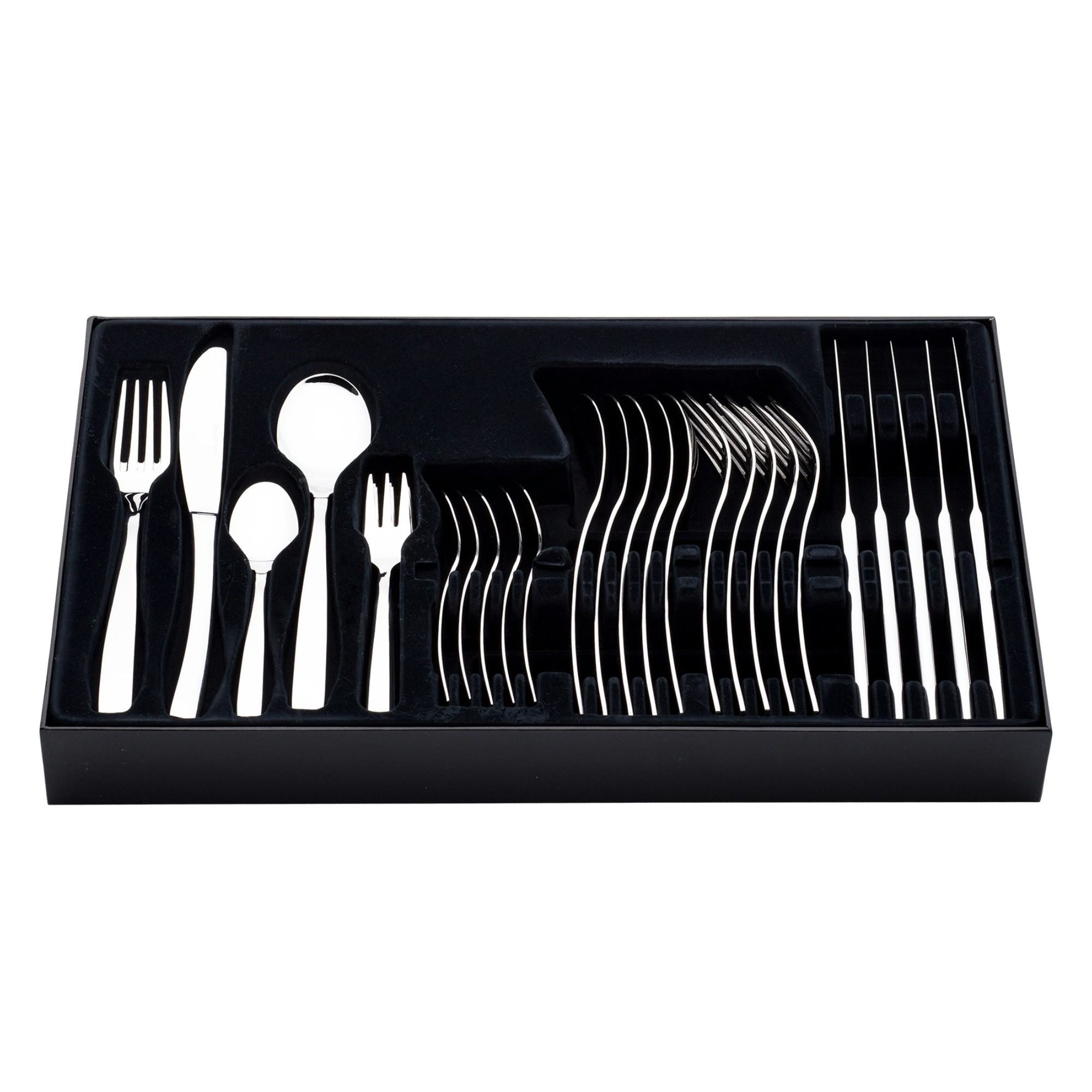 Jednoduchost bez příkras. Taková je 30-ti dílná sada příborů NELA. Vyvážené proporce a půvabné tvary propůjčují příboru nadčasovou eleganci. Do ruky padne stejně perfektně jako vypadá. Vyroben je z kvalitní ušlechtilé nerezové oceli. Lze umývat v myčce na nádobí. Sadu příborů oceníte jak při rodinném obědě, tak u slavnostně prostřeného stolu.