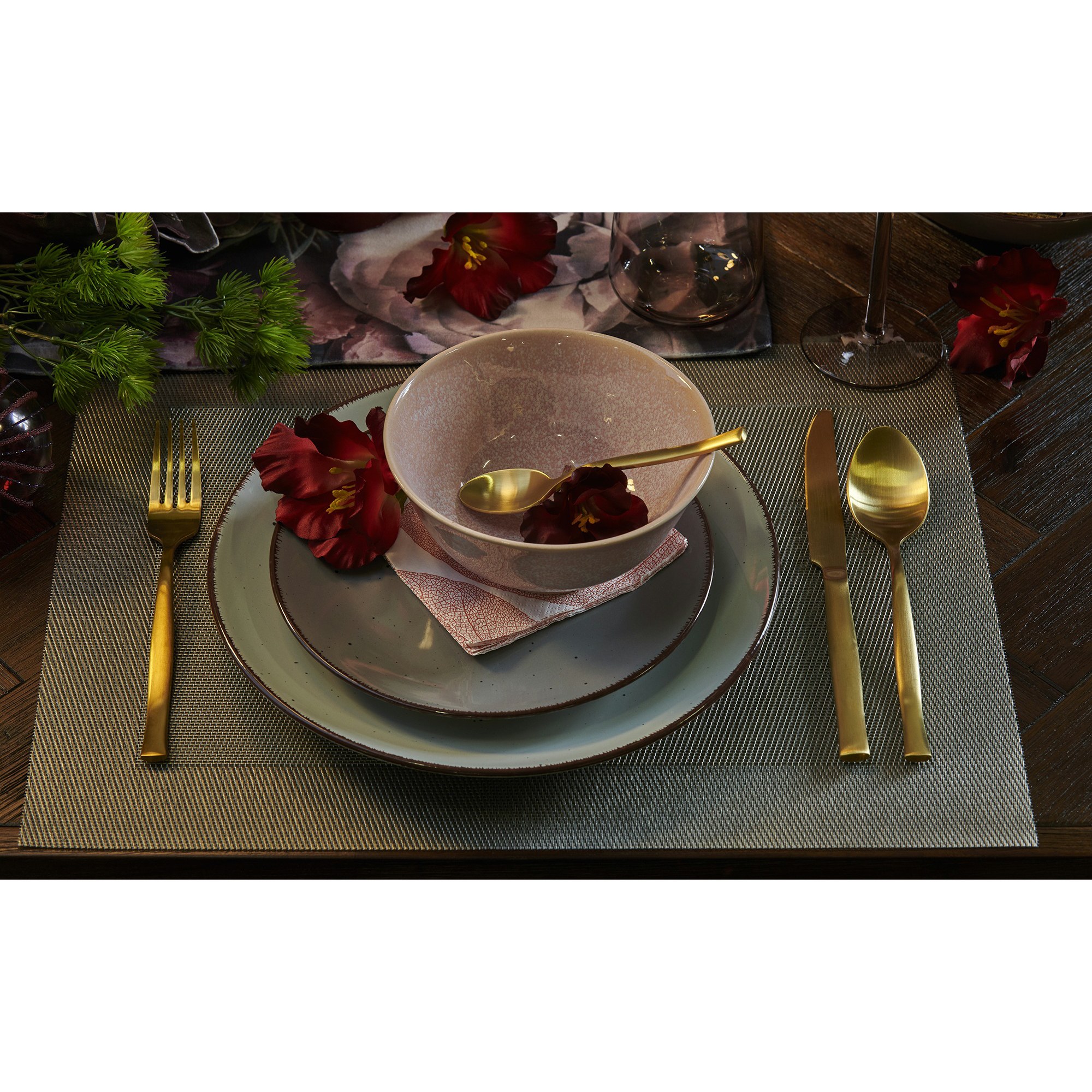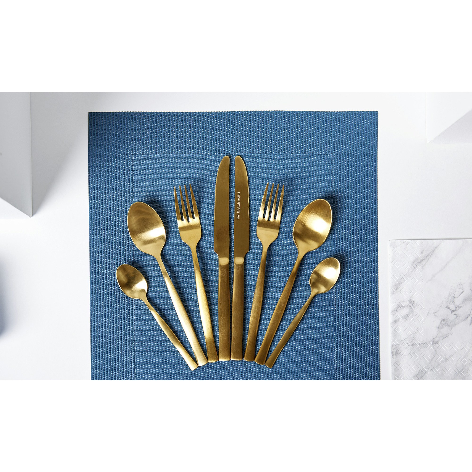 Se sadou příborů ORO bude každý váš pokrm zážitkem jako v luxusní restauraci. Na první pohled vás uchvátí odstín zlaté barvy s precizním matným povrchem. Díky půvabným tvarům se vám příbory budou příjemně držet. Tato kombinace elegantně ozdobí každý slavnostně prostřený stůl. Vyroben je z kvalitní ušlechtilé nerezové oceli. Lze umývat v myčce na nádobí.