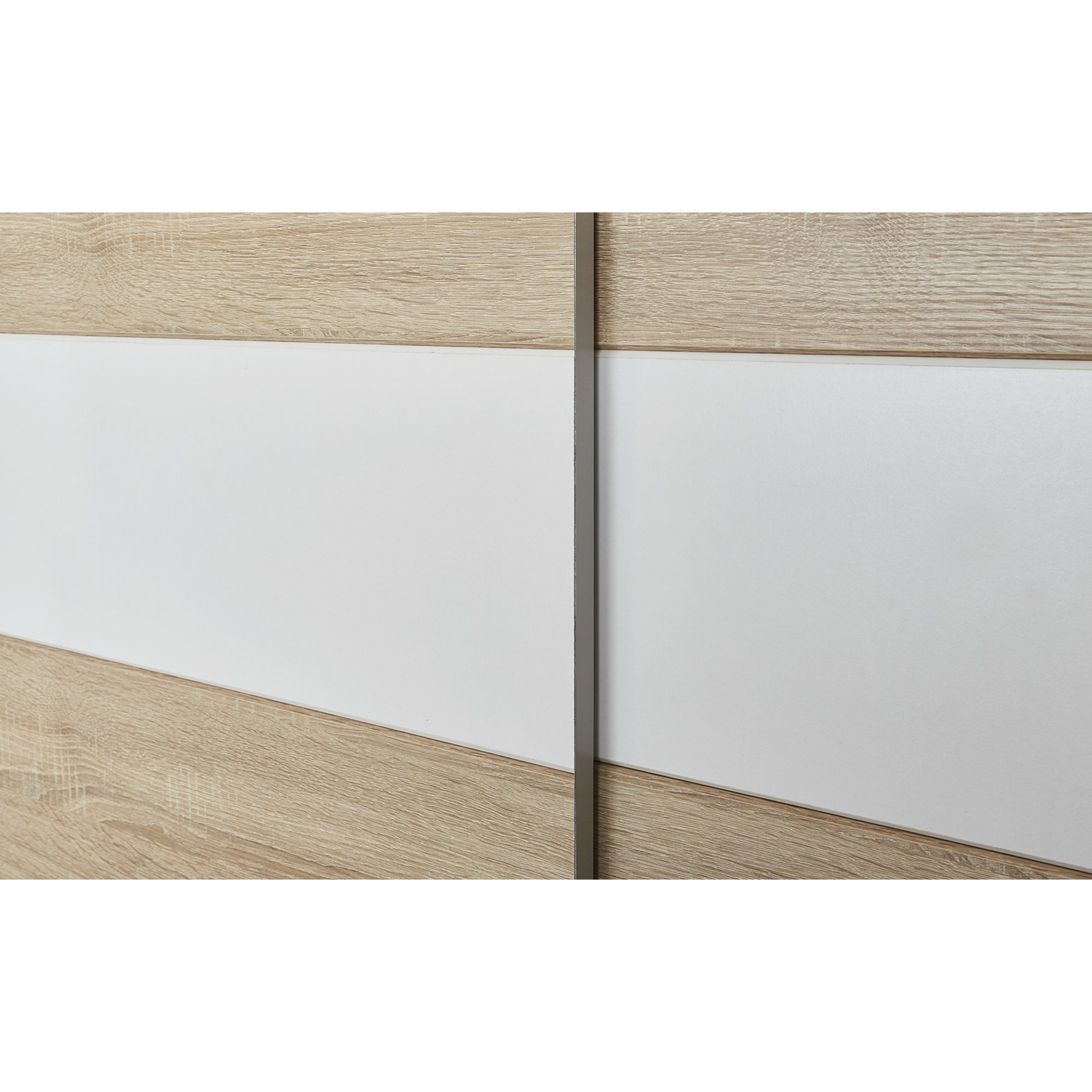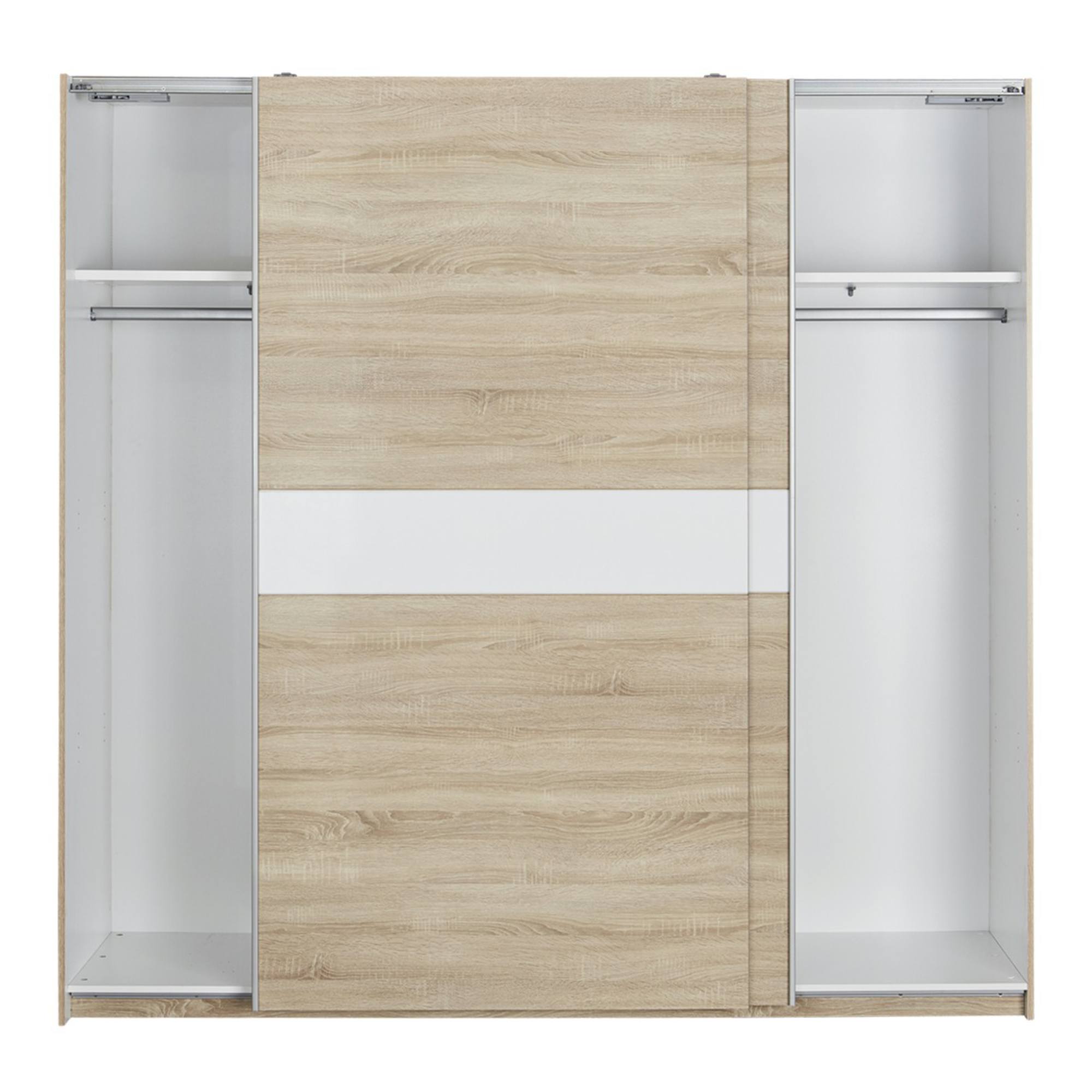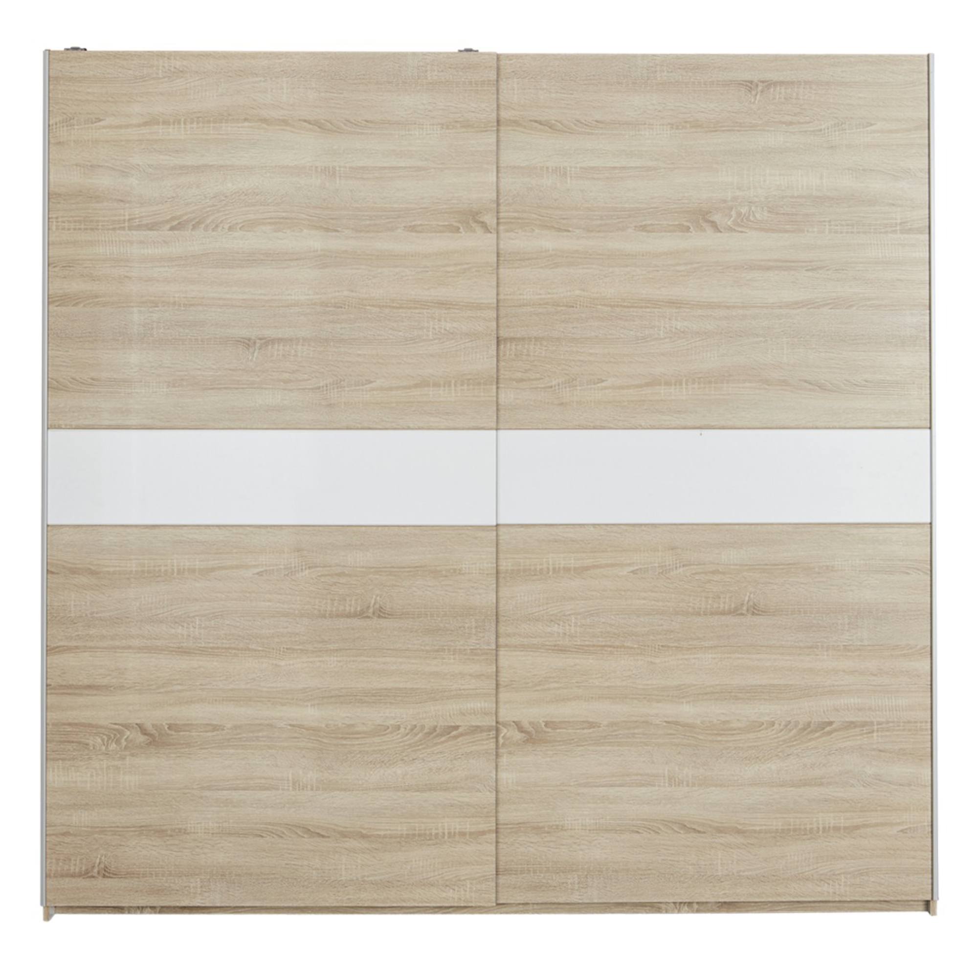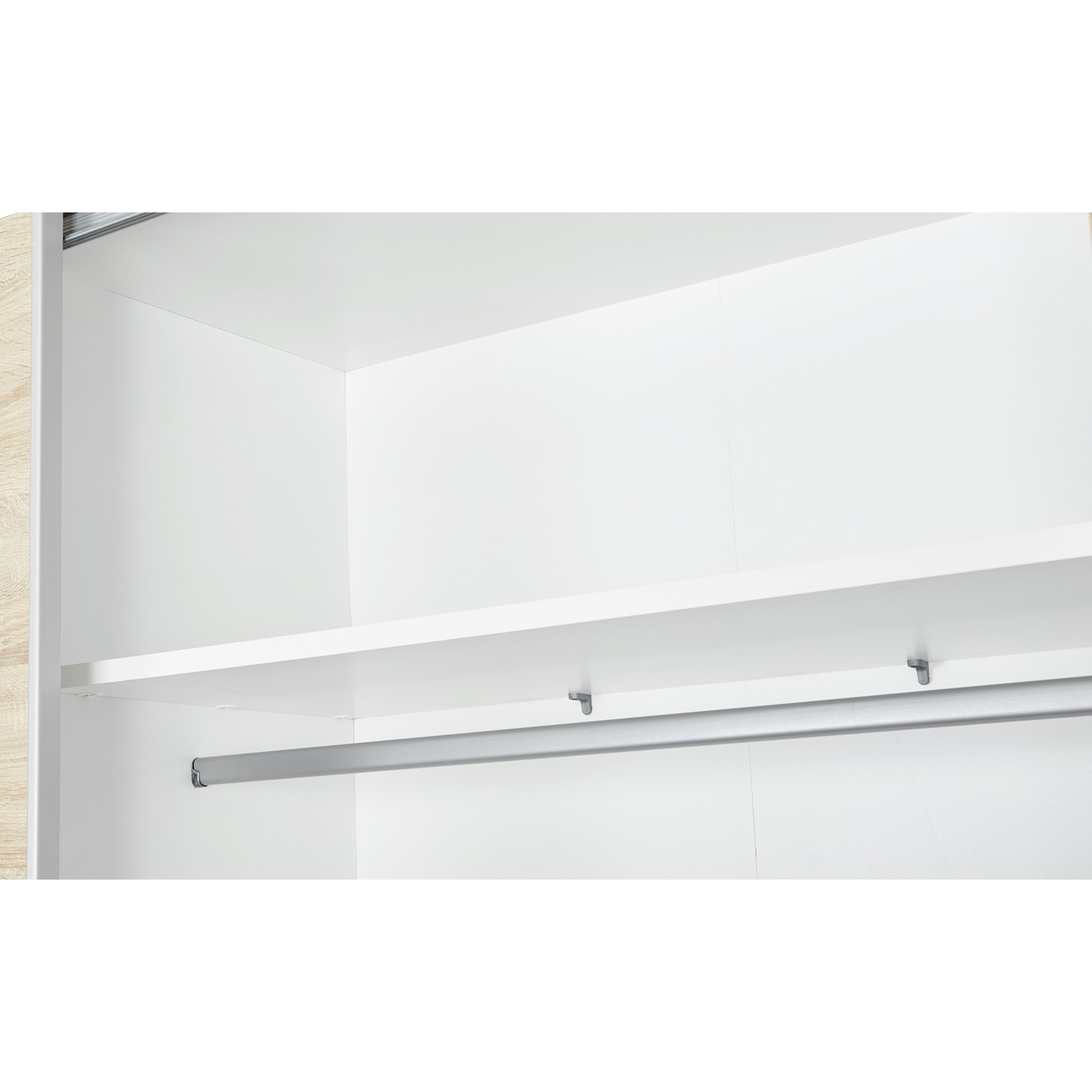 Šatní skříň ACTORI v jemném dekoru dubu sonoma v kombinaci s bílou barvou působí příjemným a útulným dojmem. Dostatek úložného prostoru s hloubkou skříně až 62 cm. Jednoduché vnitřní členění se postará o přehledné uspořádání vašeho oblečení i doplňků. Celá skříň je rozdělena na dvě stejně velké části, kde se v každé z nich nachází šatní tyč a nad ní vložená police. Praktické posuvné dveře šetří místo a umožňují snadný přístup k vnitřnímu prostoru. Skříň je vyrobena z laminovaného dřevěného materiálu, který je odolný a snadný na údržbu.