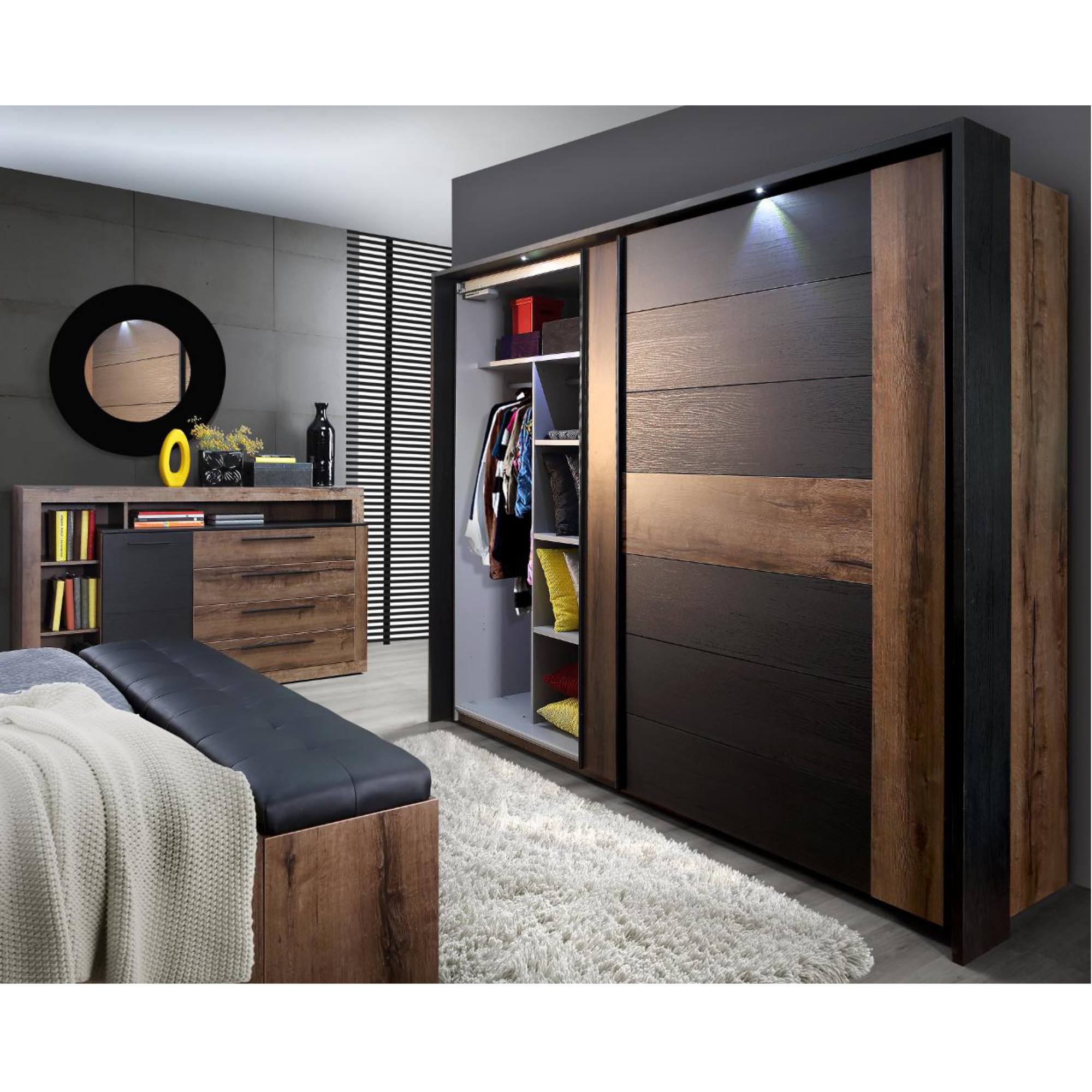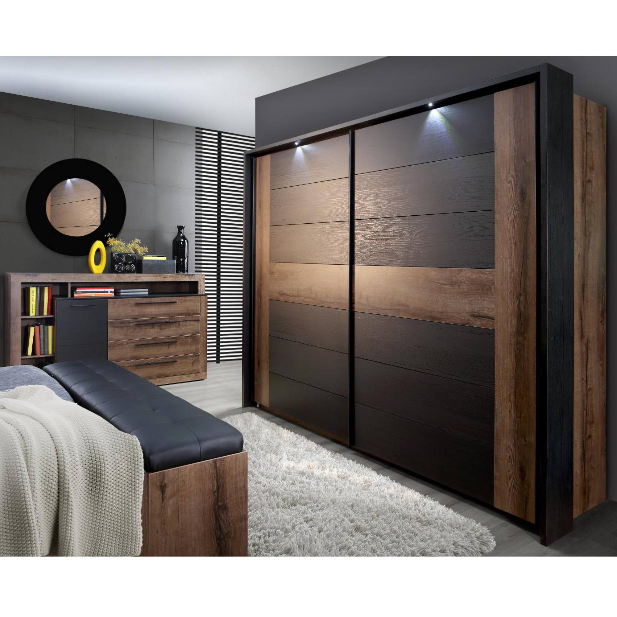 Šatní skříň BELLEVUE - ušlechtilý dub/dub černý