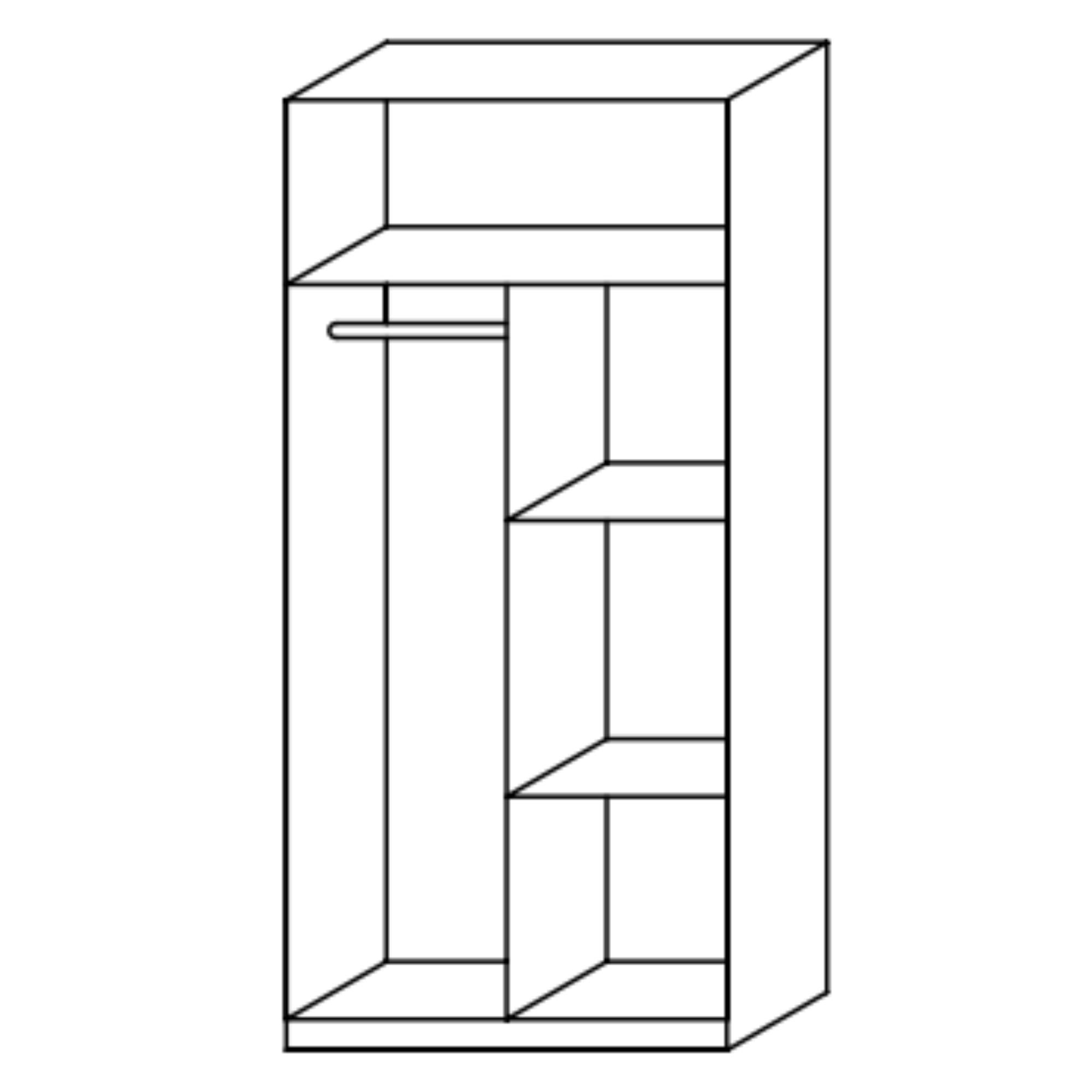 Za 2 otočnými dveřmi najdete 3 vložené police pro uskladnění oblečení, lůžkovin, nebo jiných předmětů, které nepotřebujete mít zrovna na očích. Úložné prostory doplňuje ještě 1 šatní tyč pro zavěšení oblečení.
