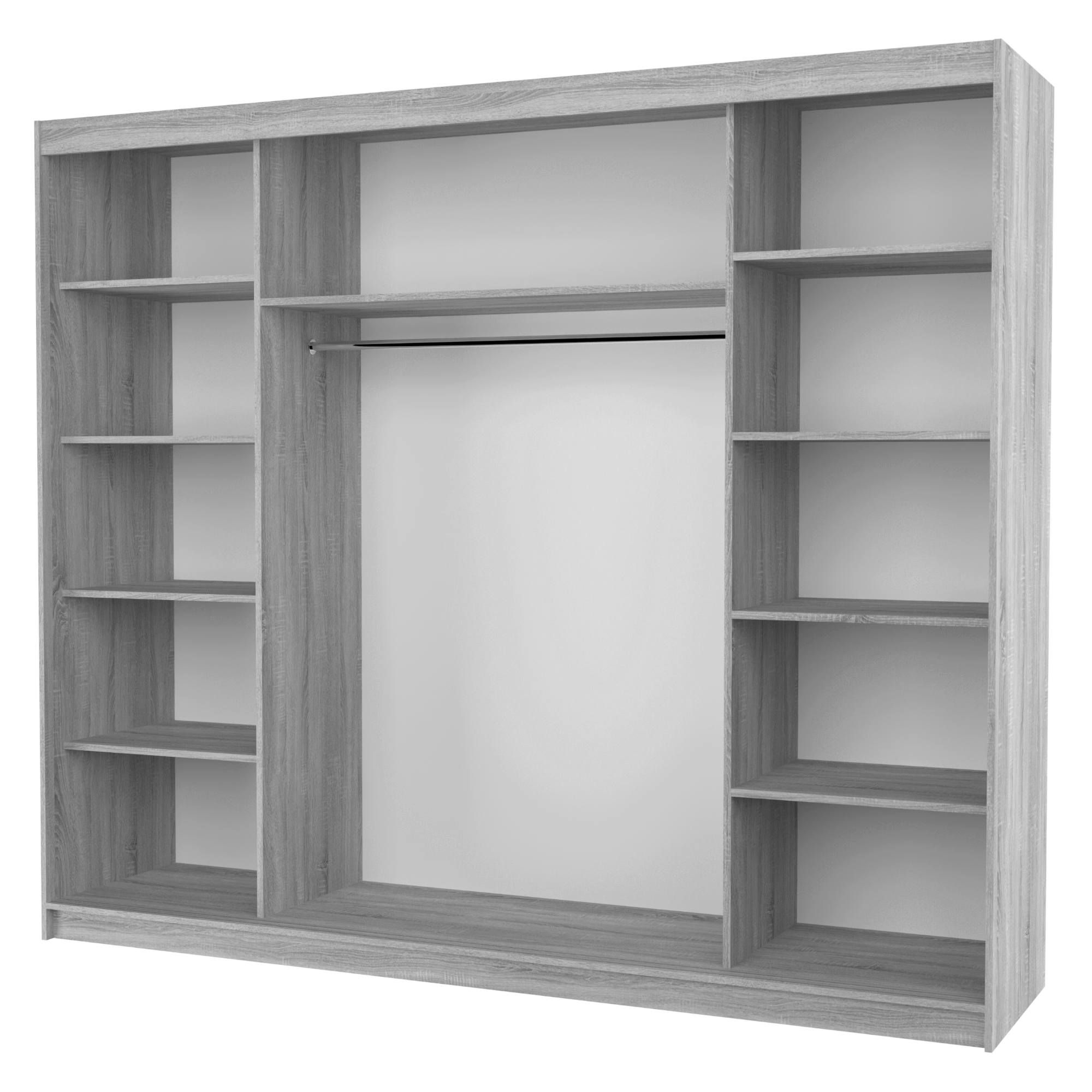 Disponuje posuvnými dveřmi s hliníkovými vodicími lištami pro hladké a pohodlné otevírání. Dveře skříně jsou doplněny velkou zrcadlovou plochou, která usnadní vaše přípravy při ranním shonu a zároveň opticky zvětší prostor. Také odráží více světla do místnosti, a tím působí interiér světleji.