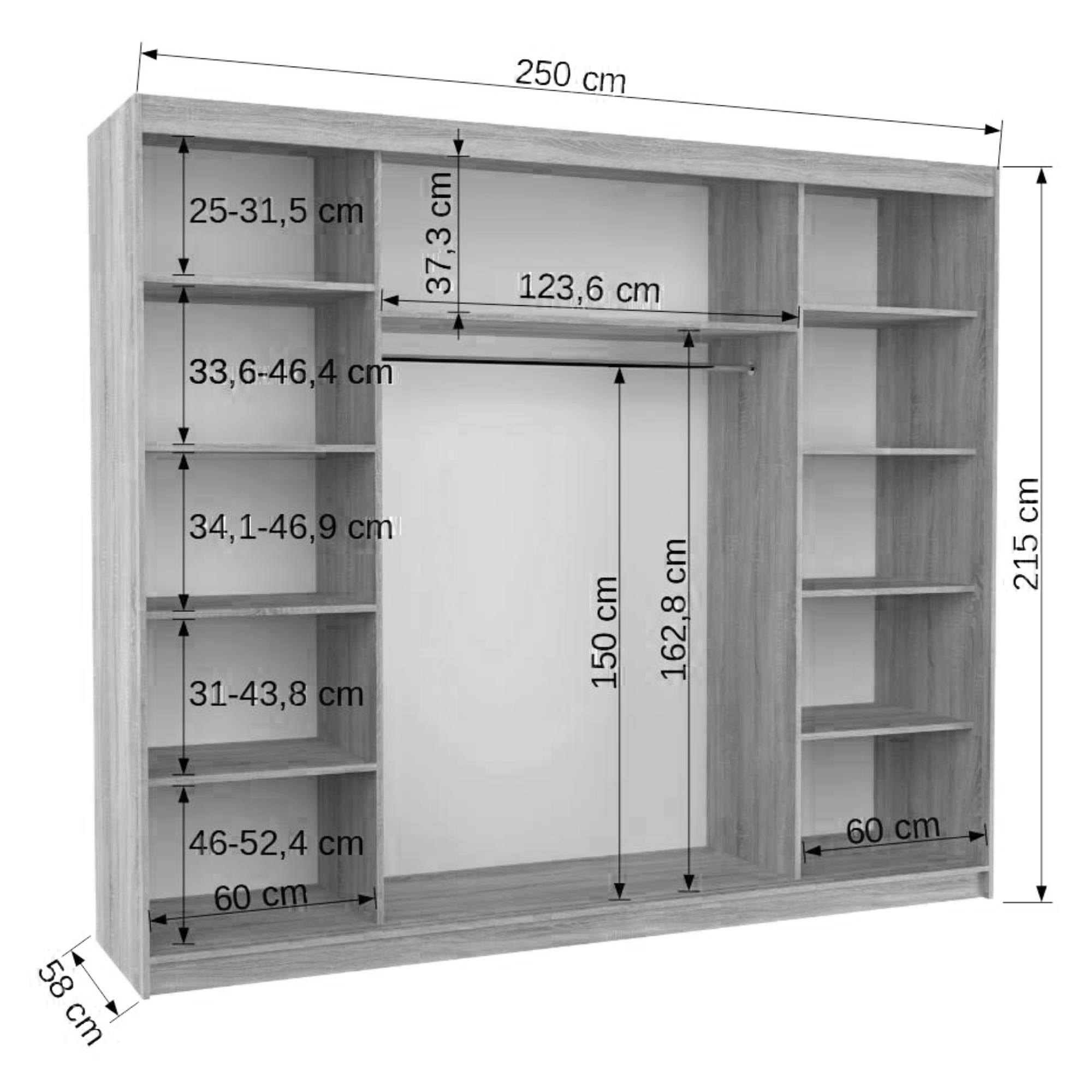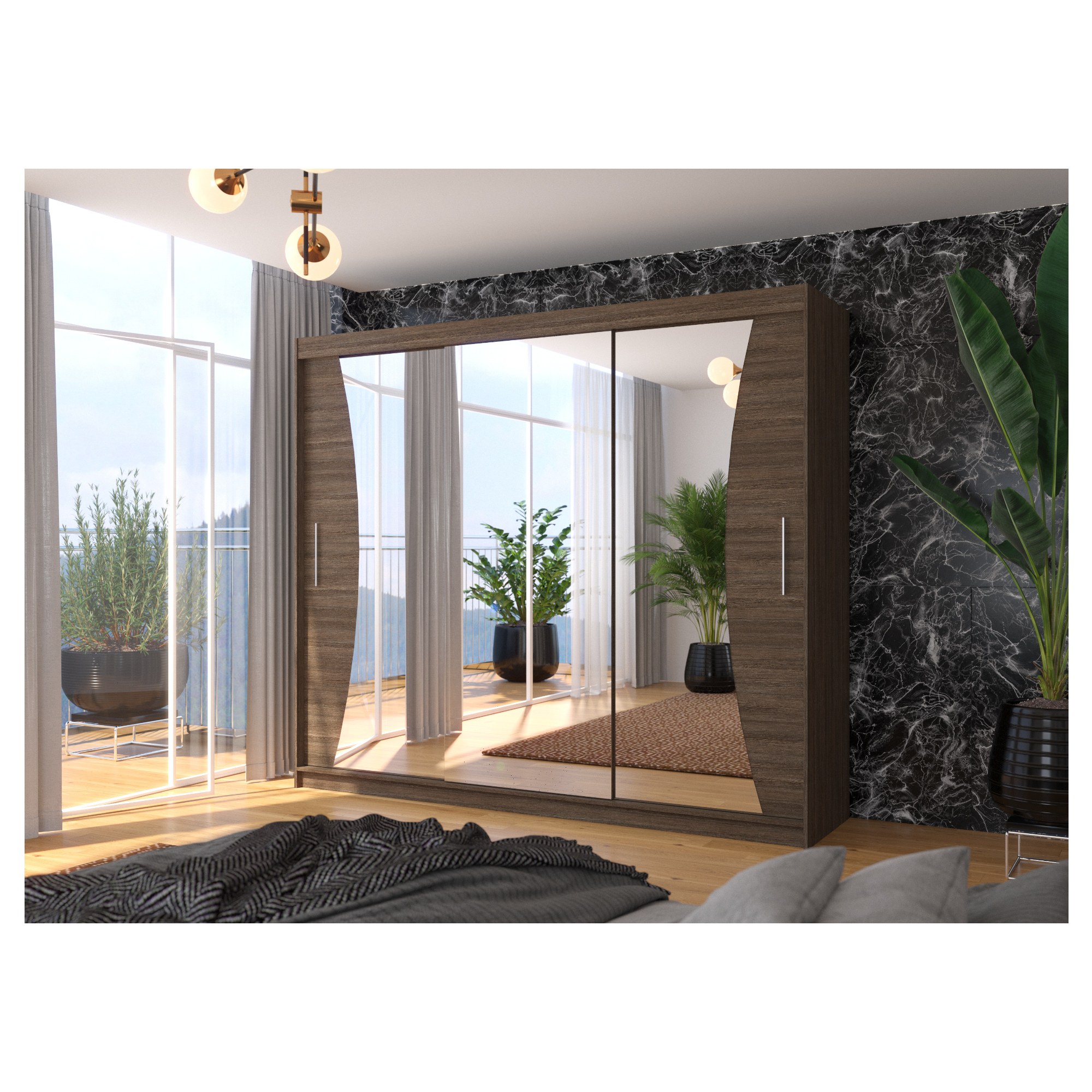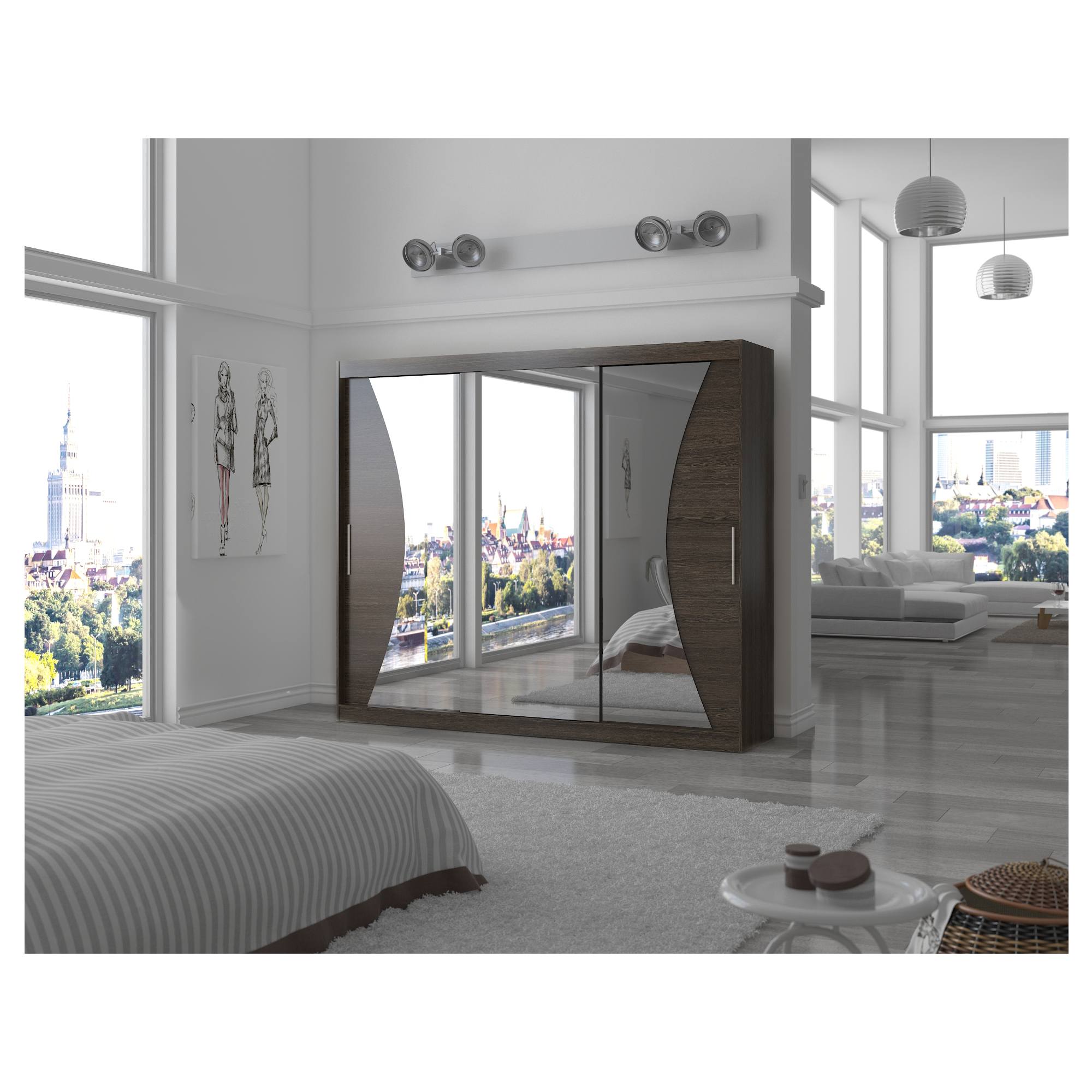 Disponuje posuvnými dveřmi s hliníkovými vodicími lištami pro hladké a pohodlné otevírání. Dveře skříně jsou doplněny velkou zrcadlovou plochou, která usnadní vaše přípravy při ranním shonu a zároveň opticky zvětší prostor. Také odráží více světla do místnosti, a tím působí interiér světleji.