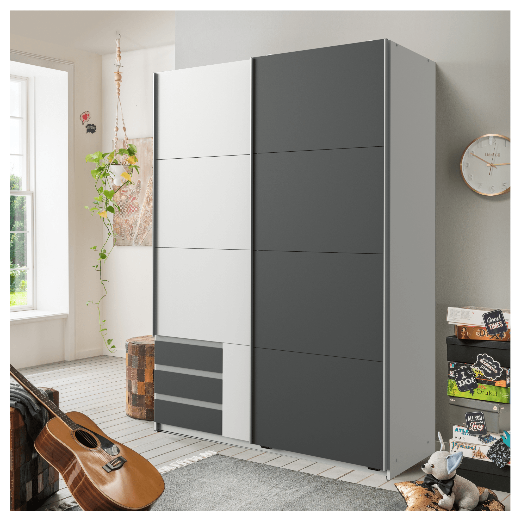 Šatní skříň ERICA - grafitová/bílá, šířka 135 cm