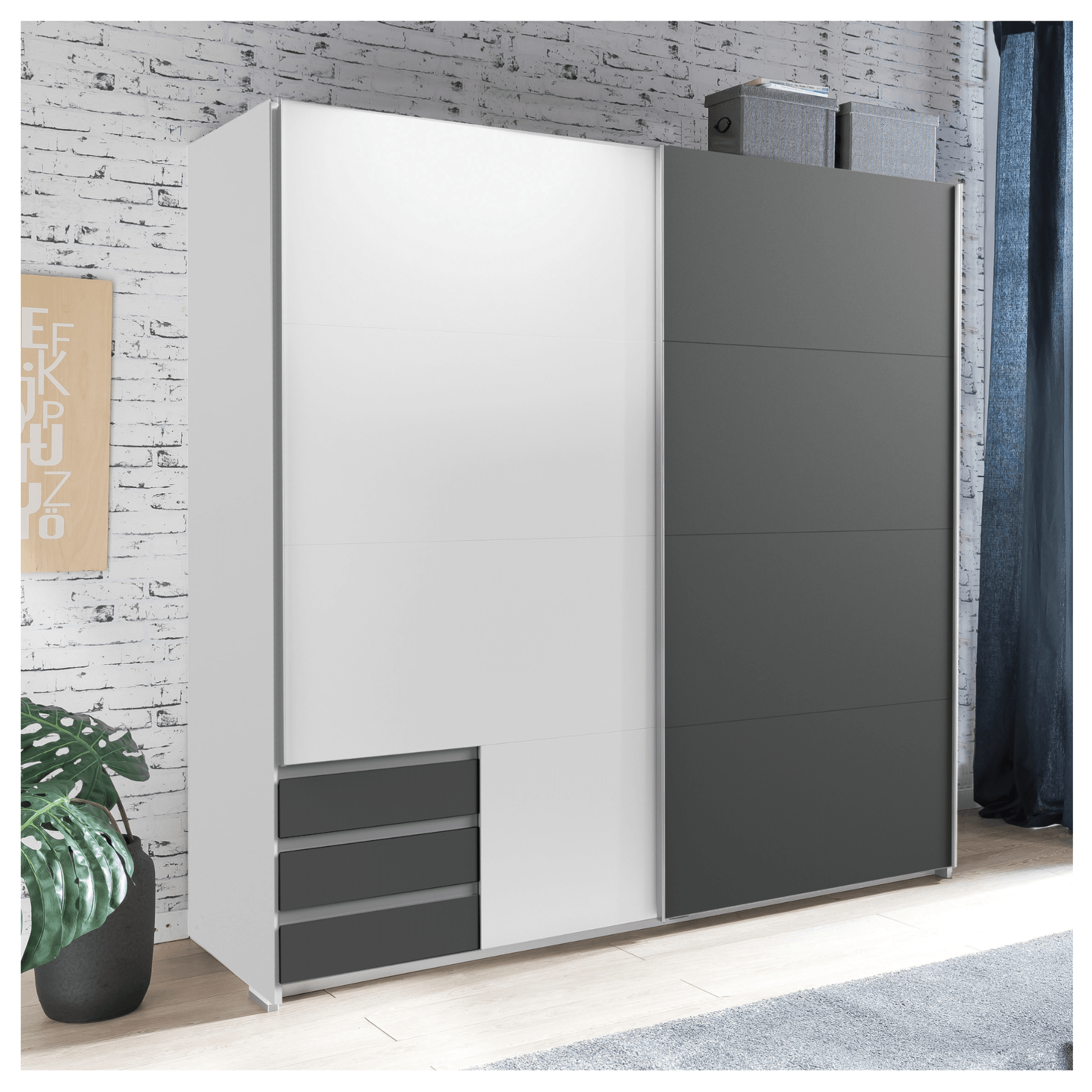 Šatní skříň ERICA - grafitová/bílá, šířka 179 cm