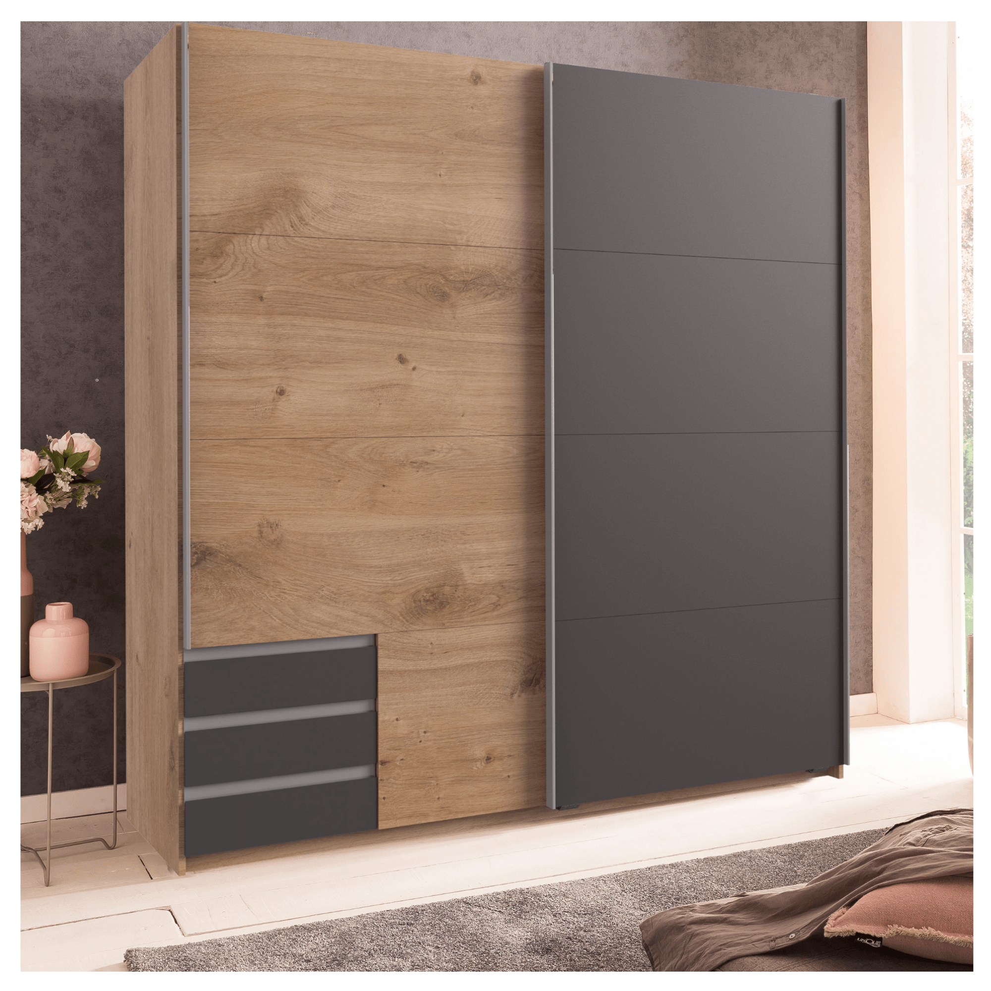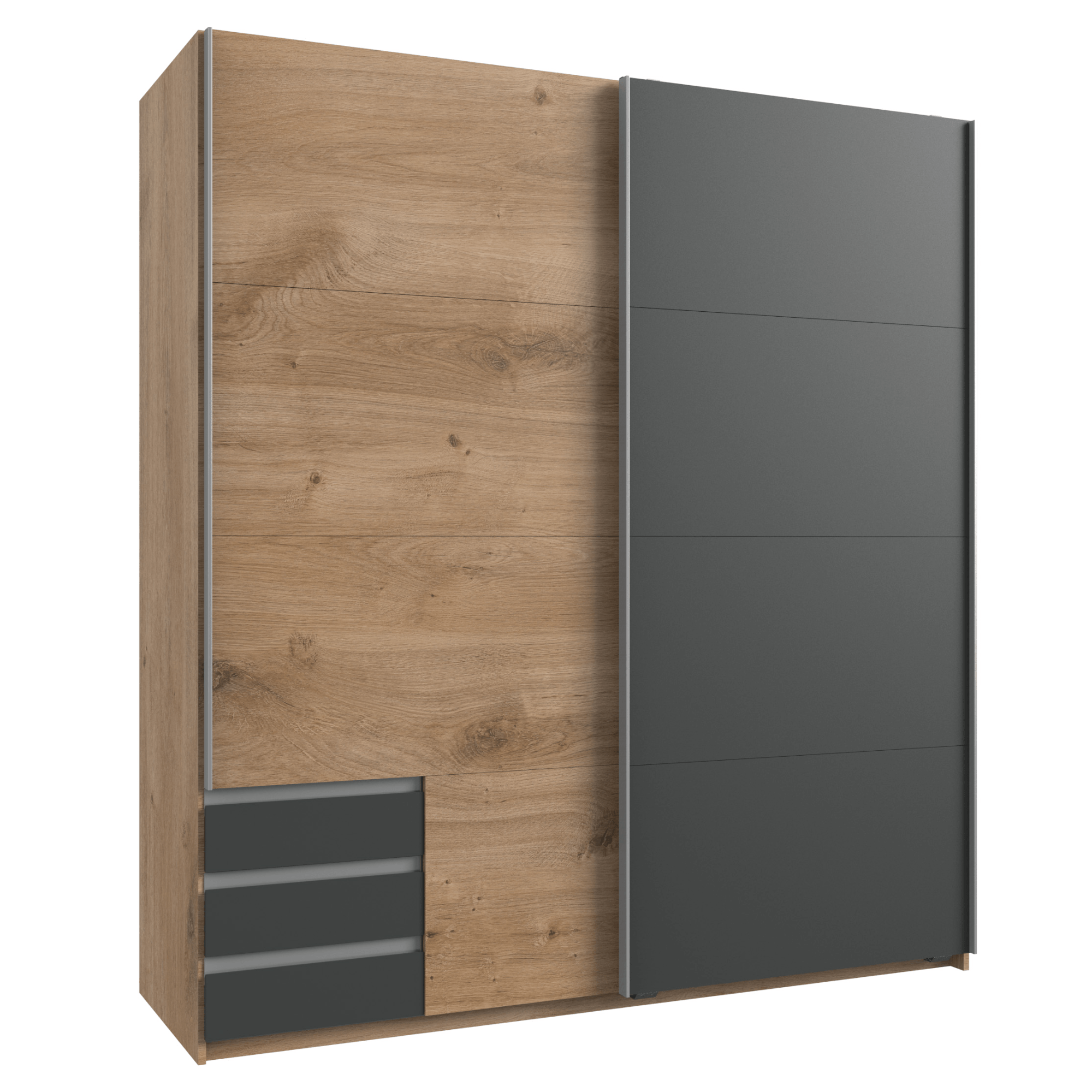 Šatní skříň ERICA - grafitová/přírodní, šířka 179 cm