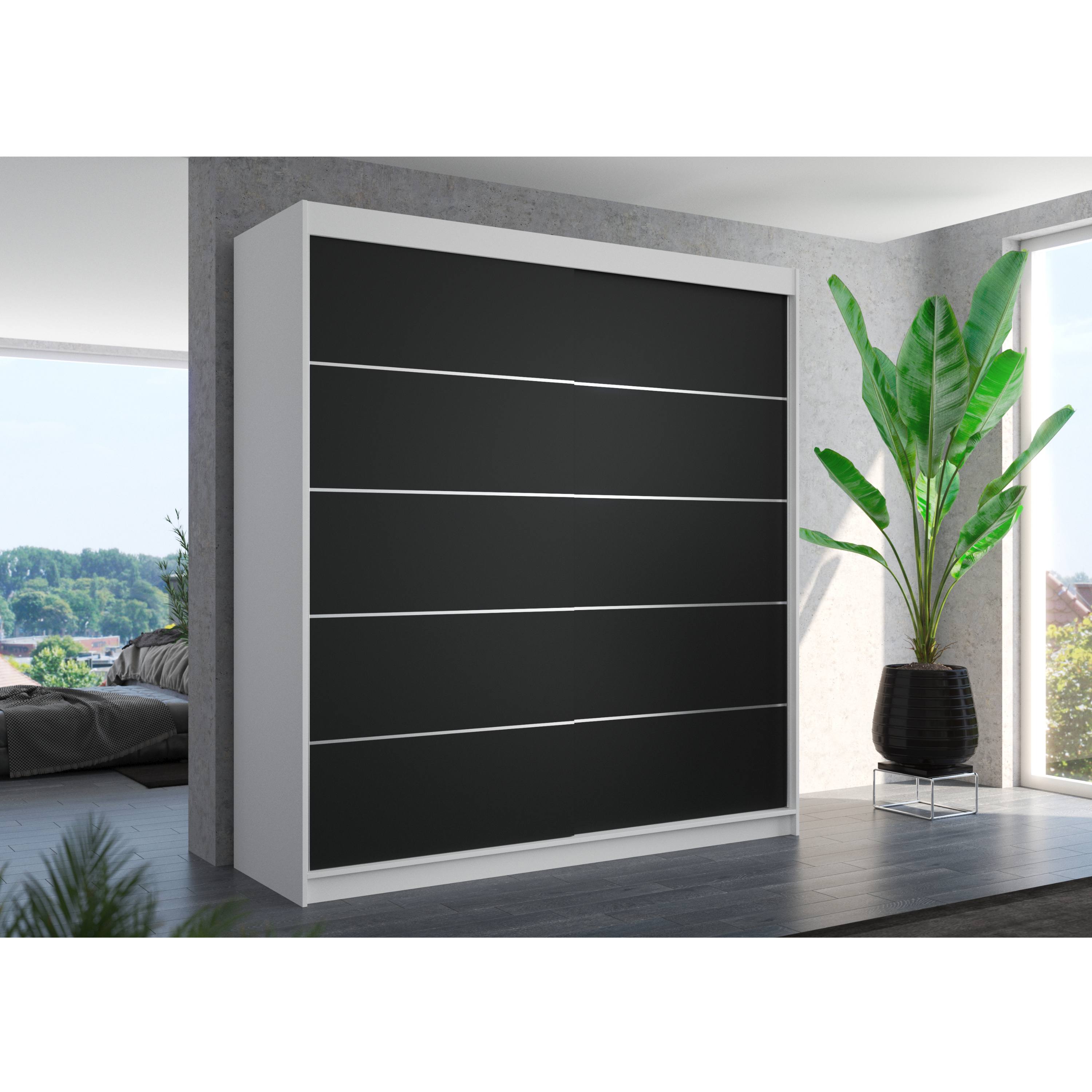 Skříň je uzavíratelná praktickými posuvnými dveřmi, které šetří cenné místo vně skříně. Vnitřní vybavení potom sestává ze 4 polic na každé straně pro uložení složeného oblečení, doplňků nebo úložných boxů, zatímco prostřední část je vybavena šatní tyčí a širokou policí nad ní. Skříň tak nabízí i místo pro zavěšení kabátů, košil nebo šatů a také prostor pro skladování sezonních věcí. Konstrukce skříně je vyrobena z laminovaného dřevěného materiálu doplněného o ABS hrany chránící před mechanickým poškozením.