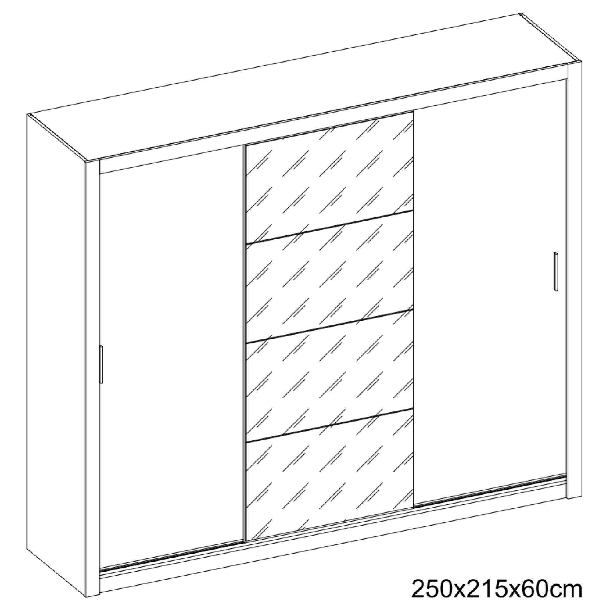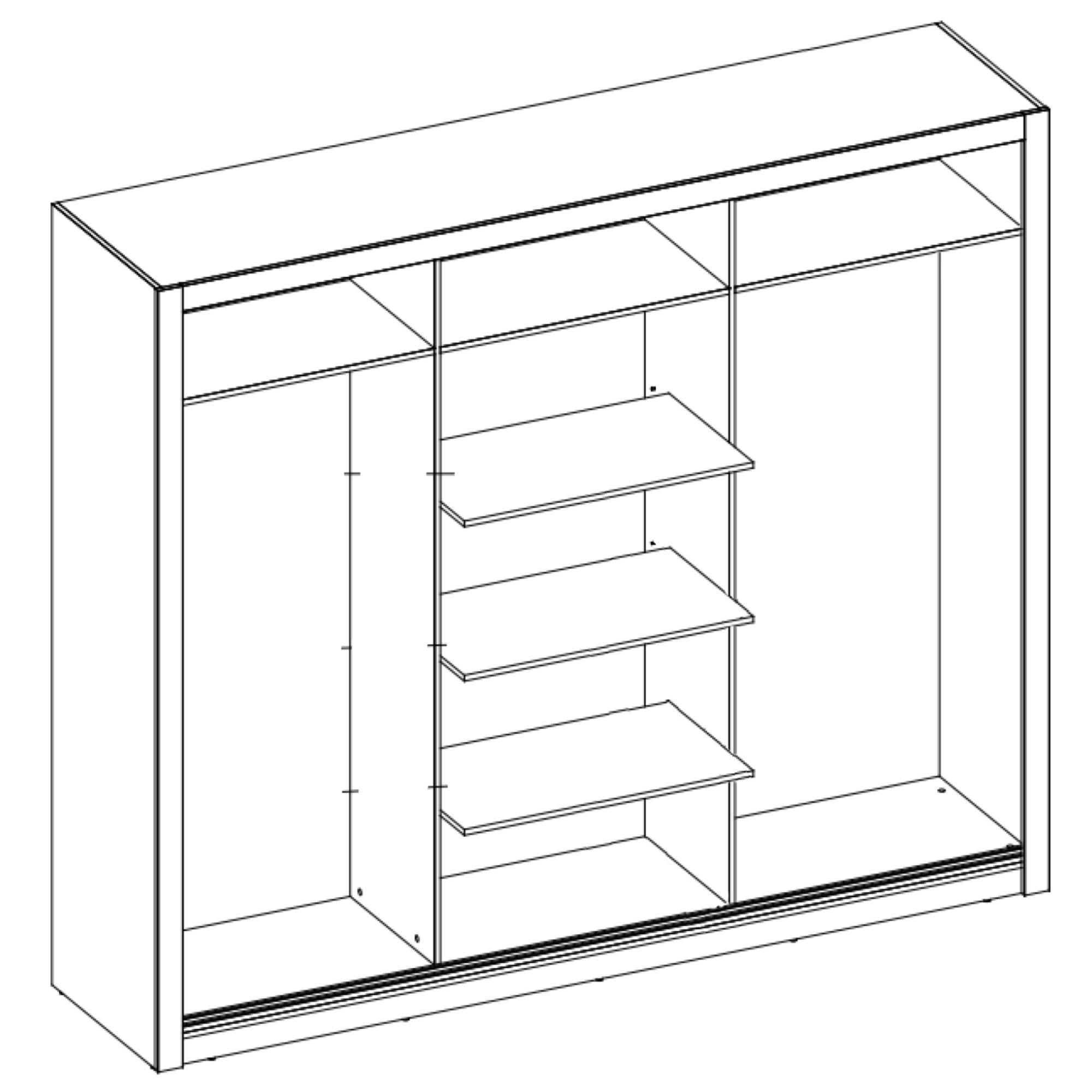 Šatní skříň má 3 posuvné dveře, které se neotvírají do prostoru a ušetří tak spoustu místa. Jedny dveře jsou vybaveny praktickým zrcadlem. Za dveřmi se nachází prostorné členěné vnitřní vybavení sestavené ze 6 vložených polic a 2 šatní tyčí. Decentní úchytky usnadňují otevírání jednotlivých částí. Skříň je vyrobena z laminovaného dřevěného materiálu, který je odolný a nenáročný na údržbu. Chcete mít interiér sjednocený do jednoho stylu? Podívejte se na další nábytek ze stejnojmenného nábytkového programu IDEA.