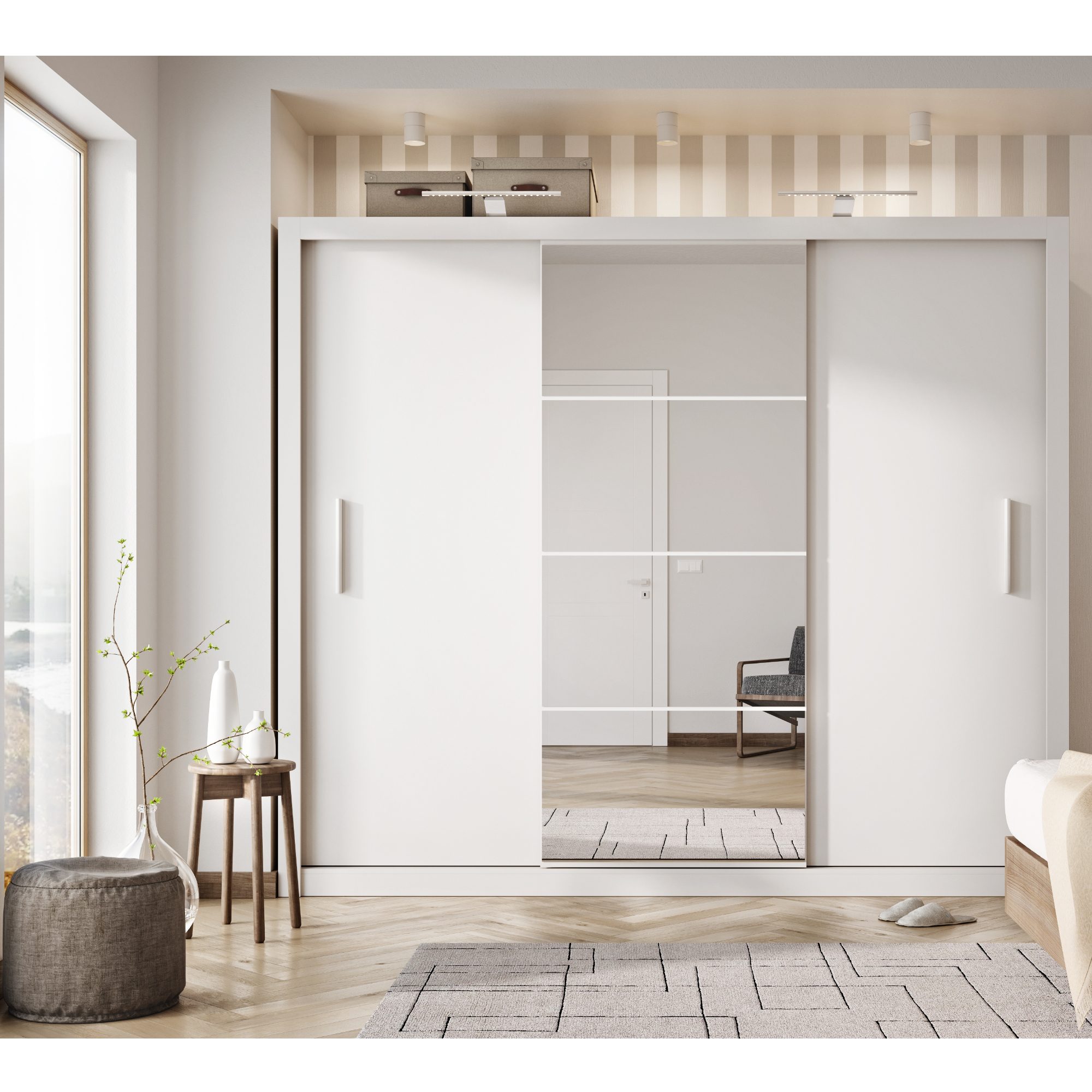 - Praktické posuvné dveře se zrcadlem