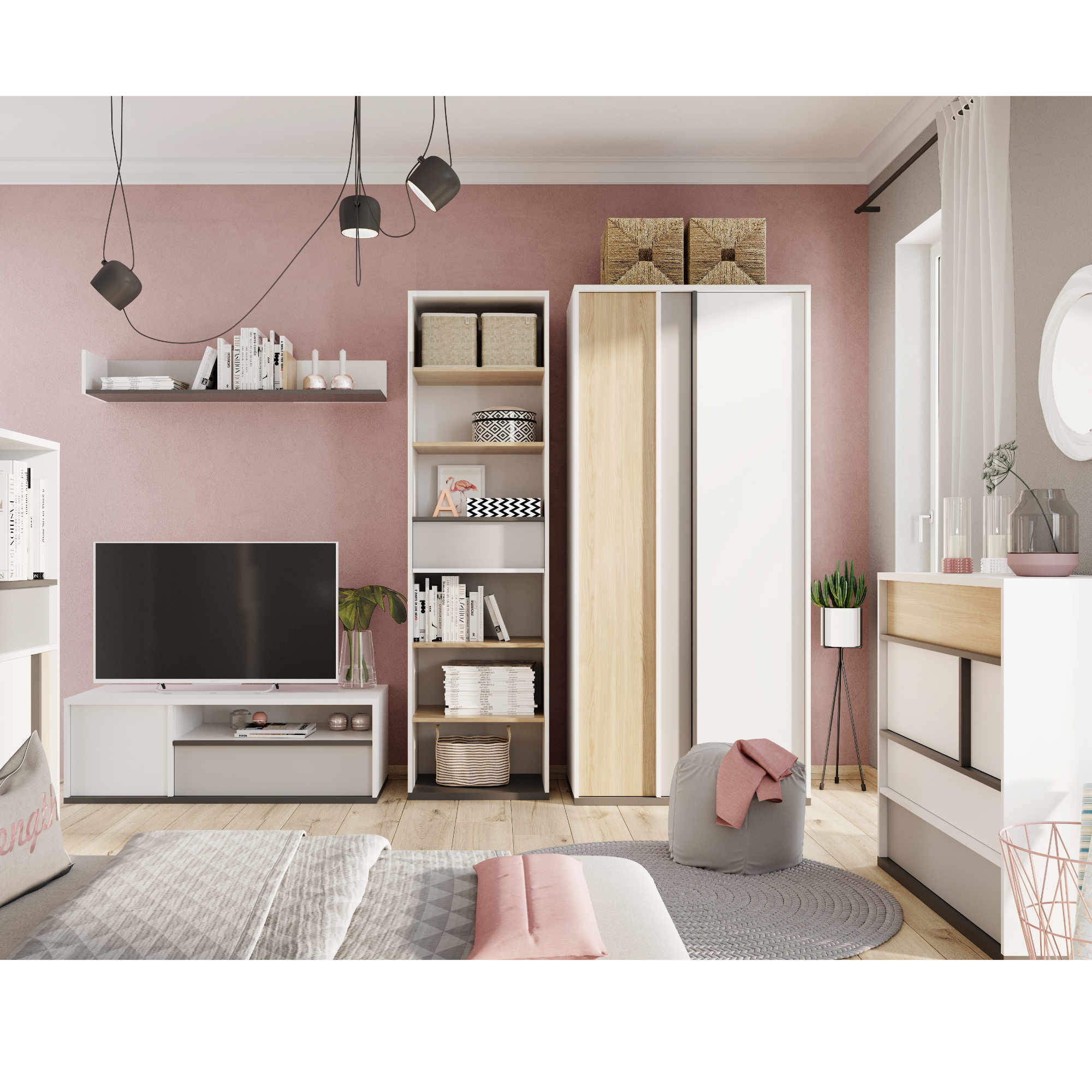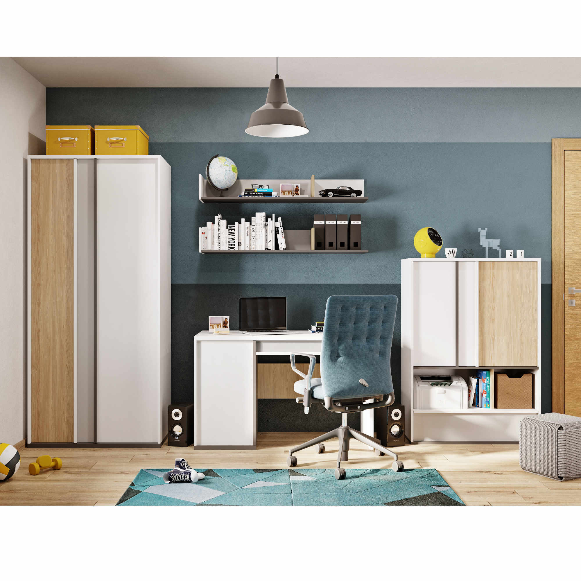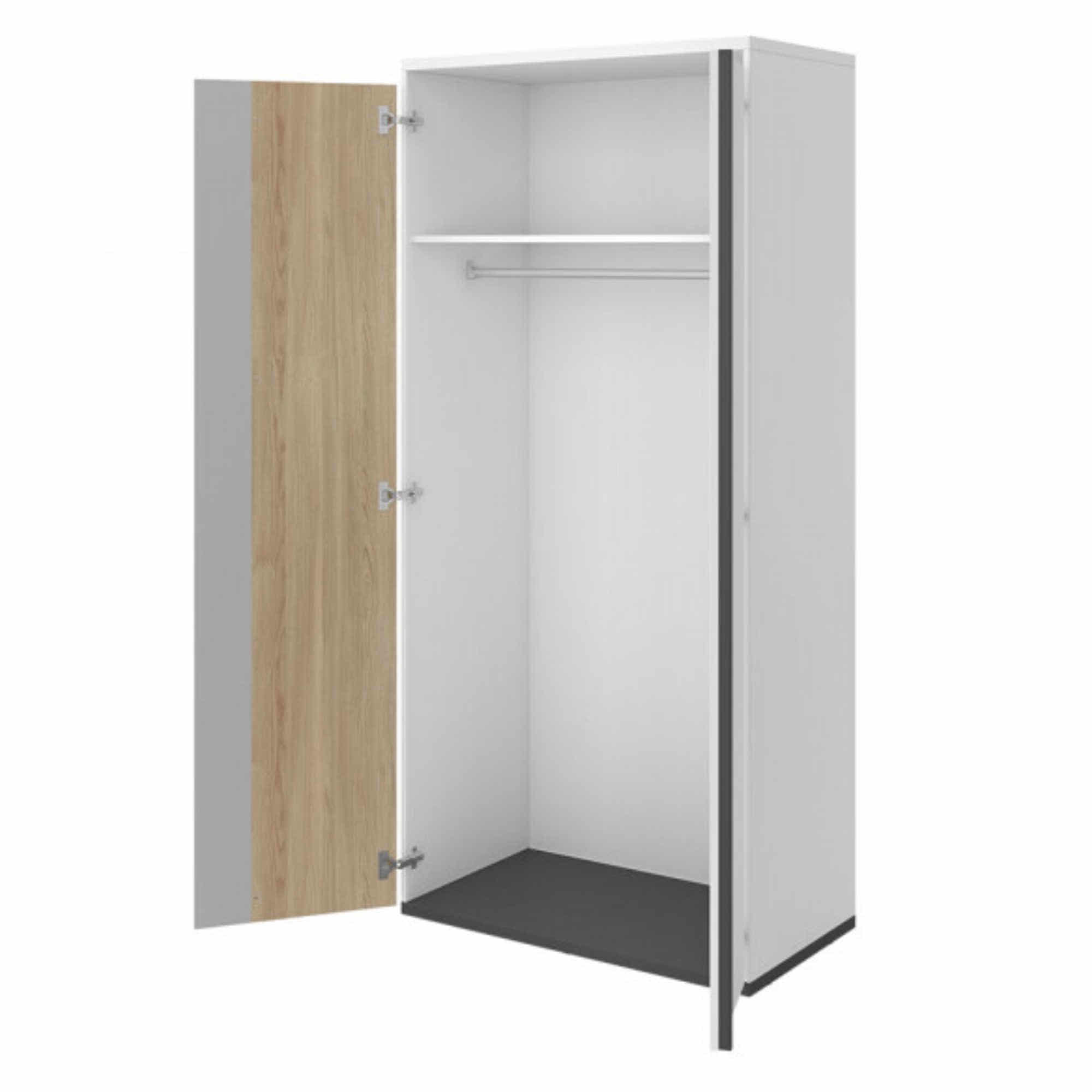 Moderní design a sofistikované rozdělení vnitřního prostoru osloví i ty nejnáročnější teenagery. Za dvířky najdete šatní tyč, kde zavěsíte své oblíbené kousky, šaty, kabáty i zimní bundy. Horní police je dostatečně velká na ukládání sezónního oblečení. Nábytek je vyroben ze snadno udržovatelného laminovaného materiálu opatřeného ABS hranami.