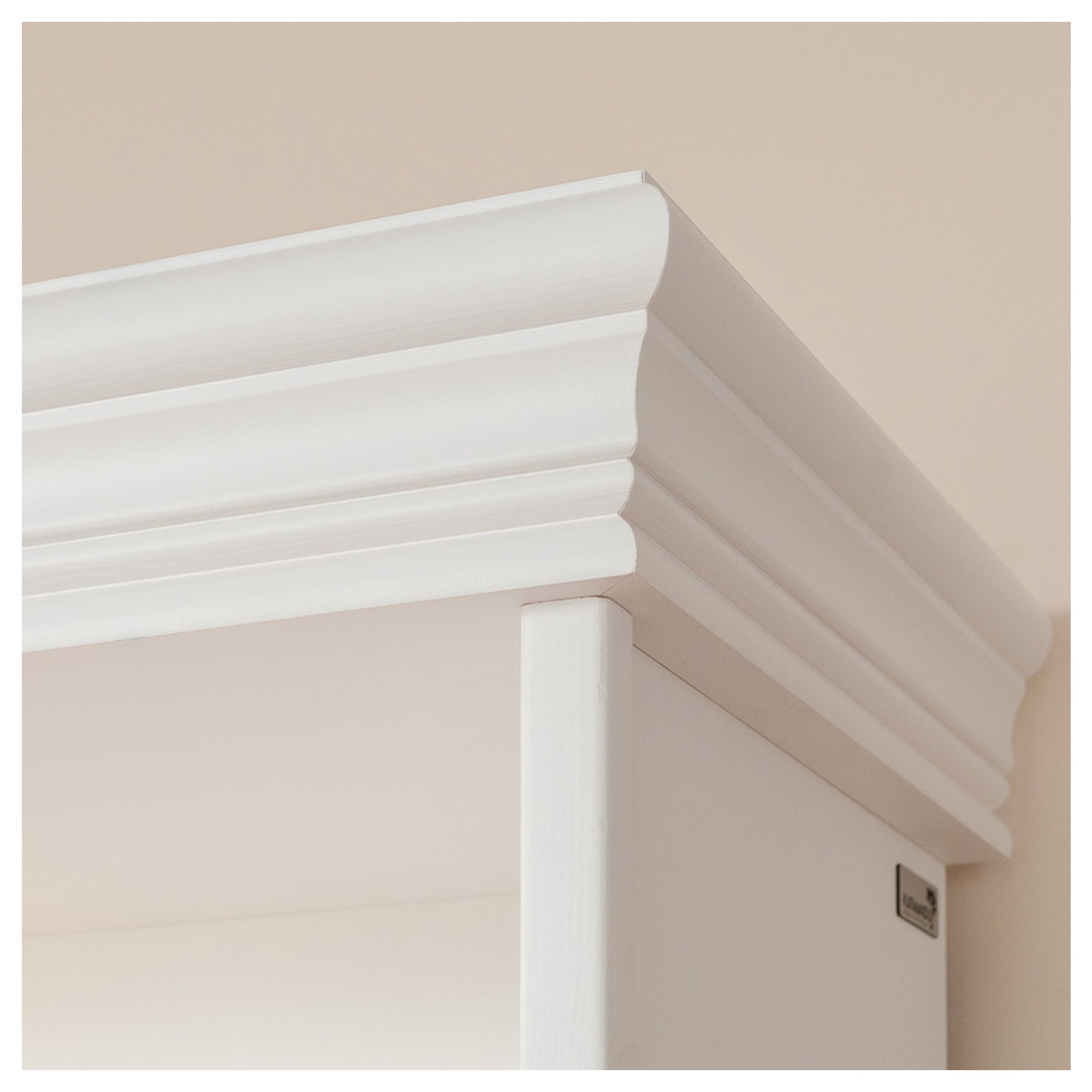 Vyrobena je z masivního dřeva finské borovice, které konstrukci dodává pevnost, odolnost a dlouhou životnost. Zdobena je množstvím dekorativních prvků jako je frézování předních ploch, pilastr, zajímavě řešená podstava nebo kovové úchyty.