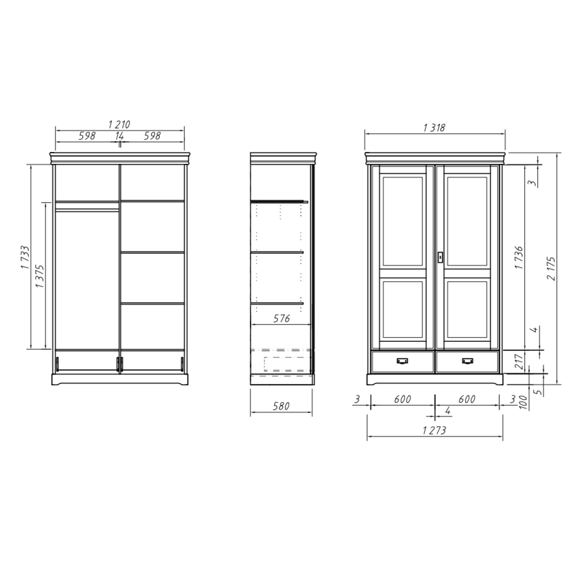 Skříň je vybavena 2 otočnými dveřmi umožňujícími maximální využití vnitřního prostoru. Za levými dveřmi se nachází šatní tyč pro zavěšení větších nebo mačkavých kousků oblečení a 1 vložená police nad ní. Pravá strana obsahuje 3 vložené police ideální pro poskládané oblečení a další textil. Využít můžete také 2 zásuvky ve spodní části pro oddělení spodního prádla, doplňků a dalších drobností.