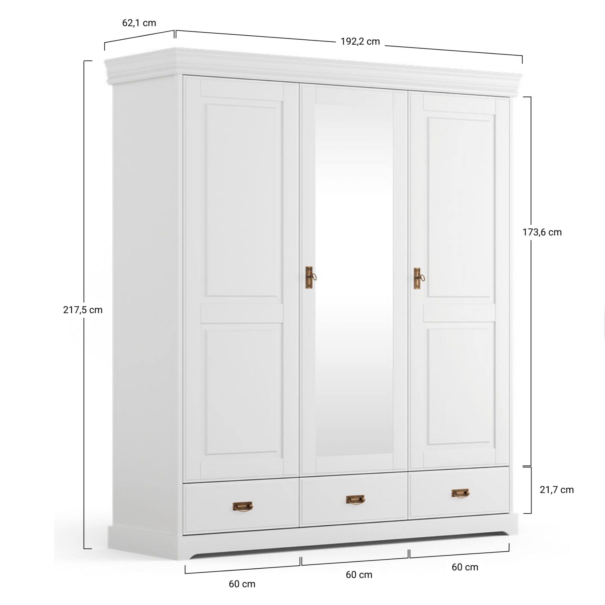 Šatní skříň KANIA 3D vyvedená v kvalitním, nadčasovém zpracování je ideální volbou pro ložnice a šatny inspirované venkovským stylem.