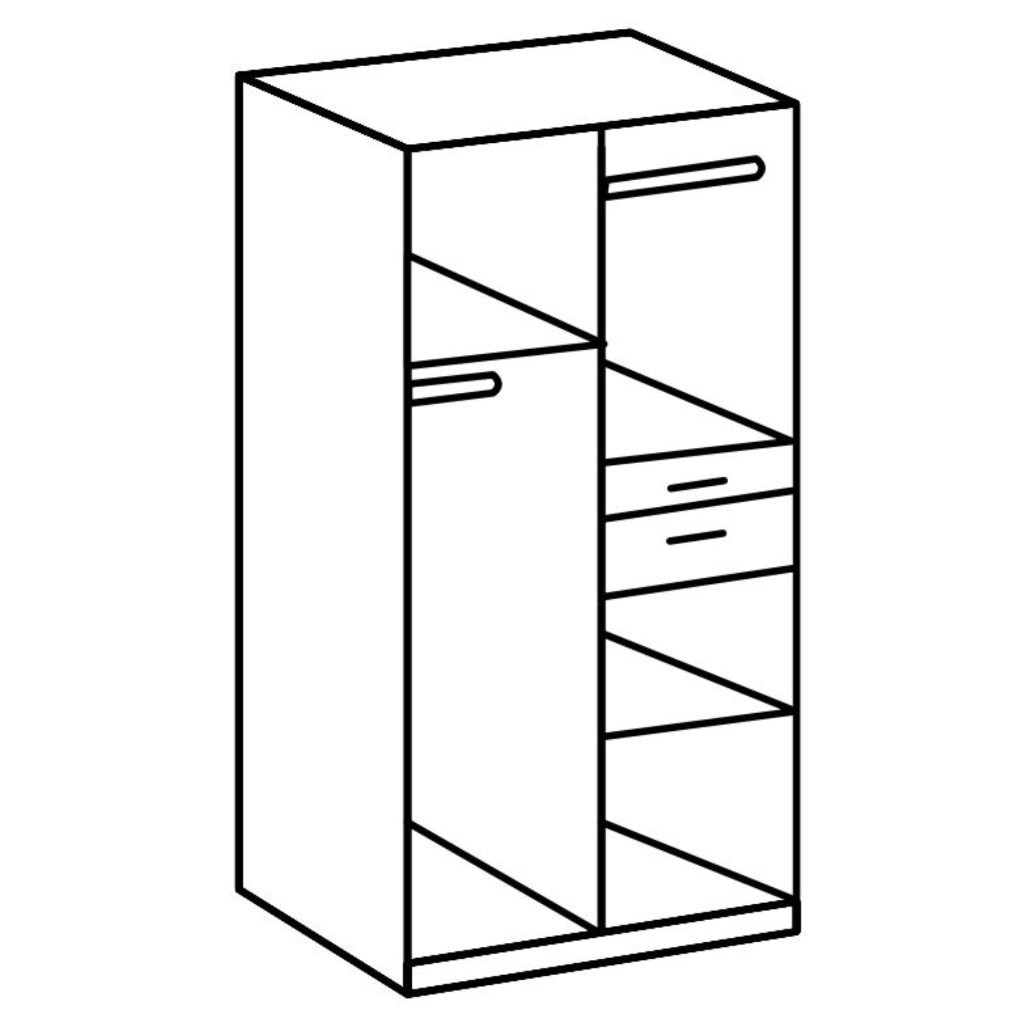 - 2 vložené police, 2 šatní tyče, 2 zásuvky