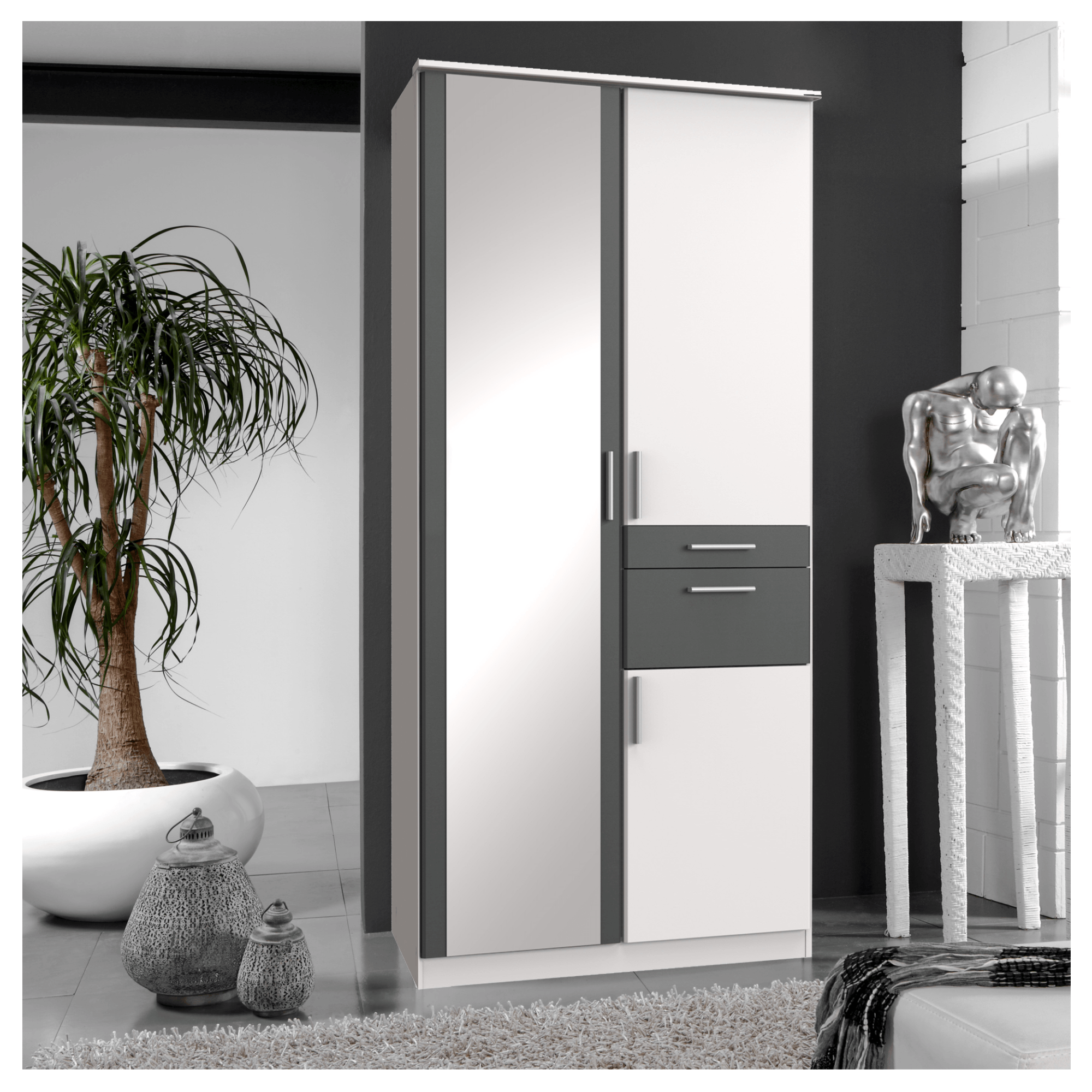 Šatní skříň KESTER I - bílá/grafit