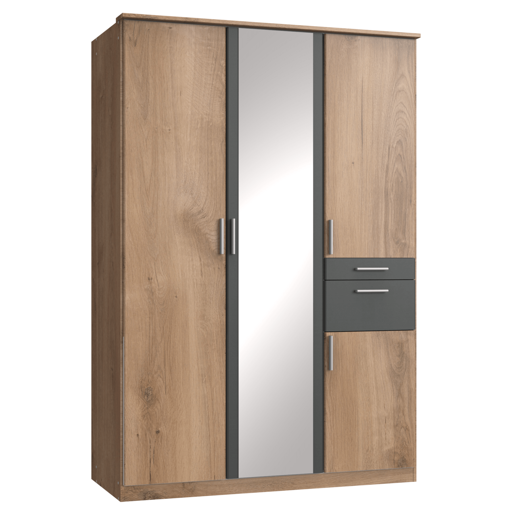 Moderní šatní skříň KESTER II s bohatým vnitřním vybavením je ideální volbou pro přehledné uskladnění vašeho šatstva a doplňků.
